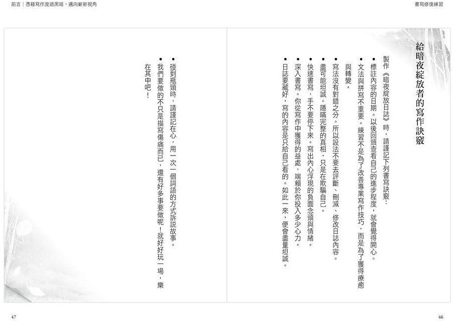 與一般的日記不同,這些練習旨在幫助思考困境的涵義,