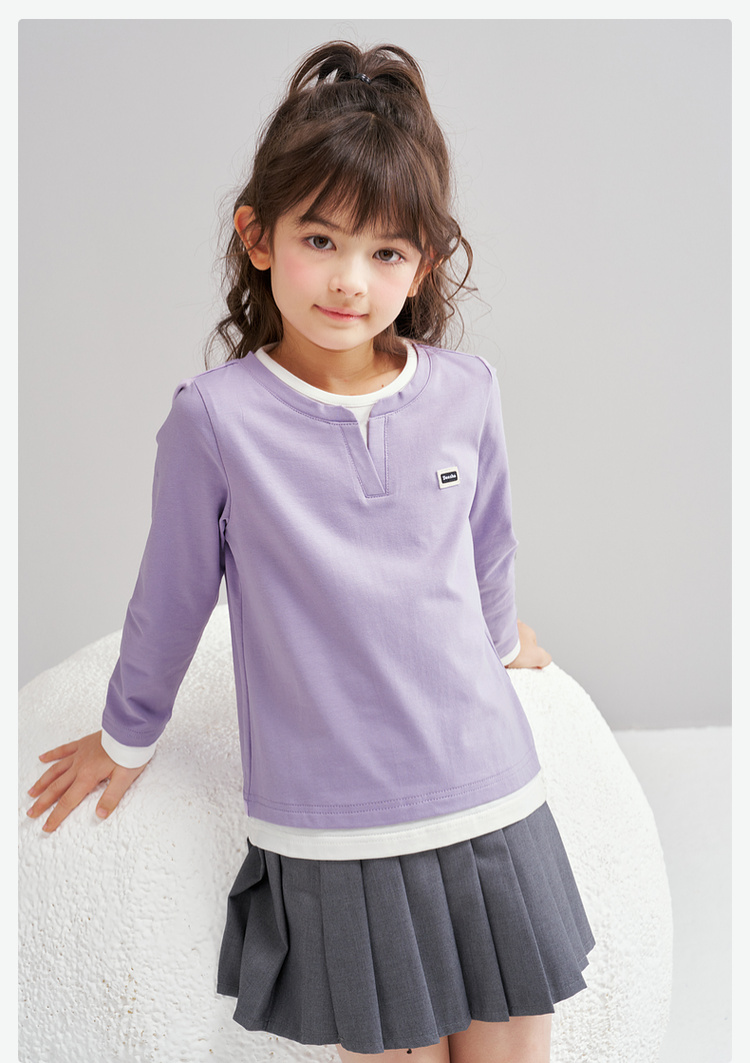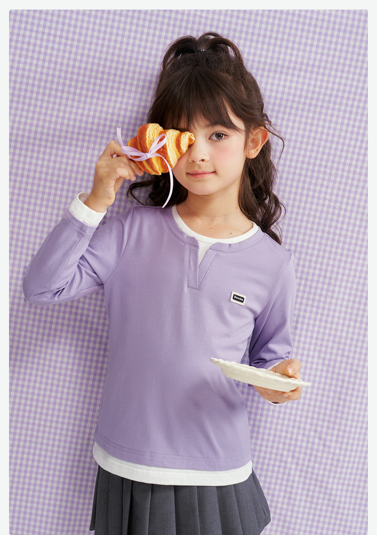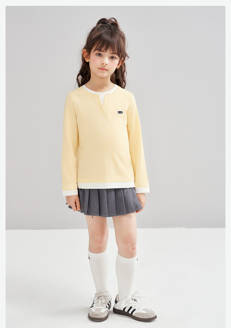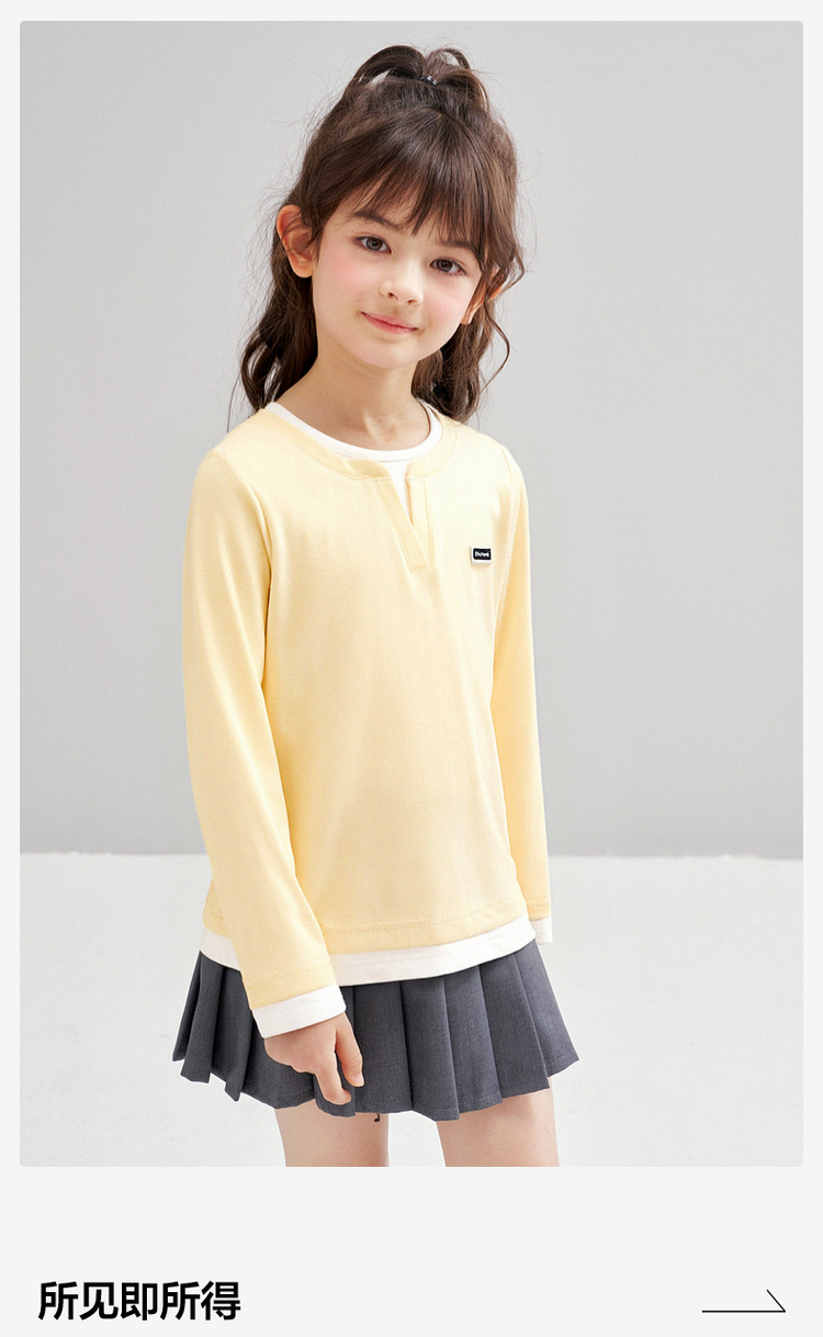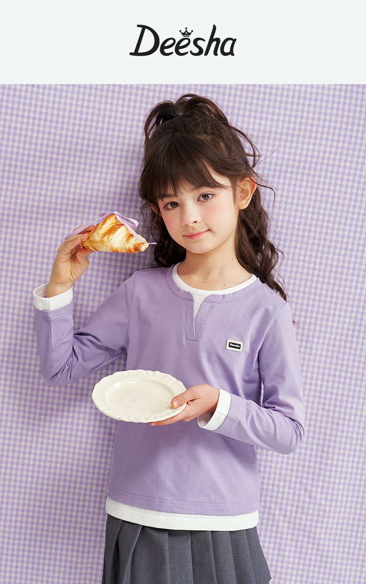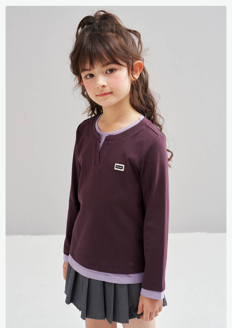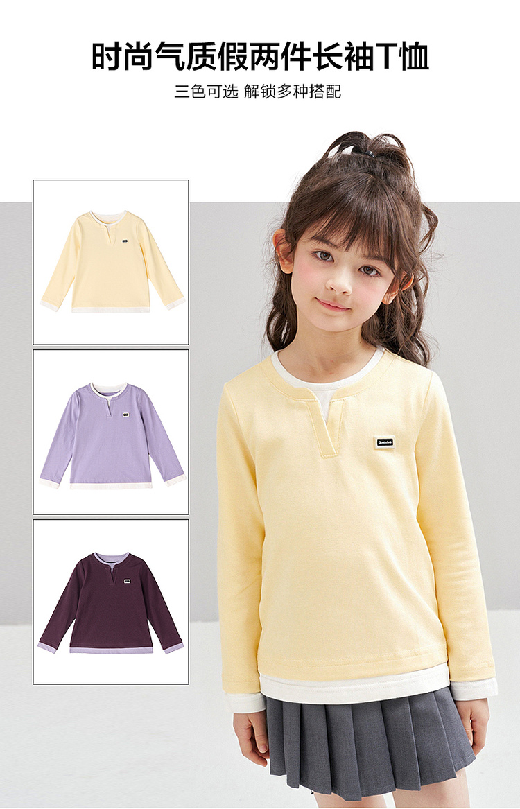 笛莎Deesha 2026春季女童时尚气质假两件长袖工恤