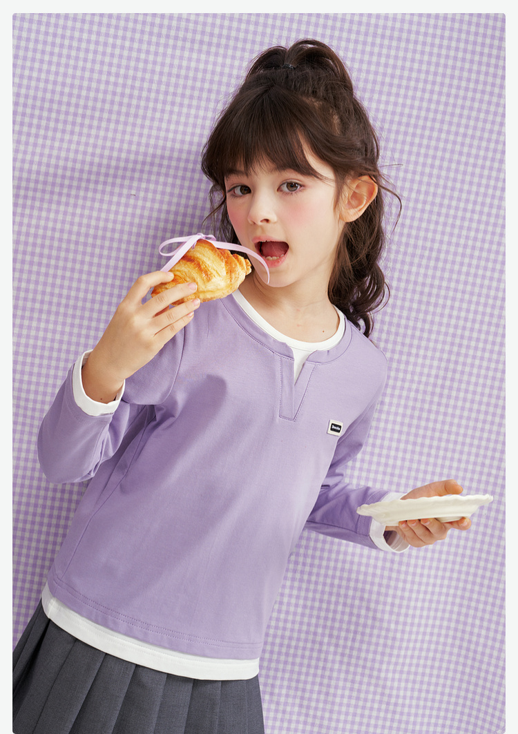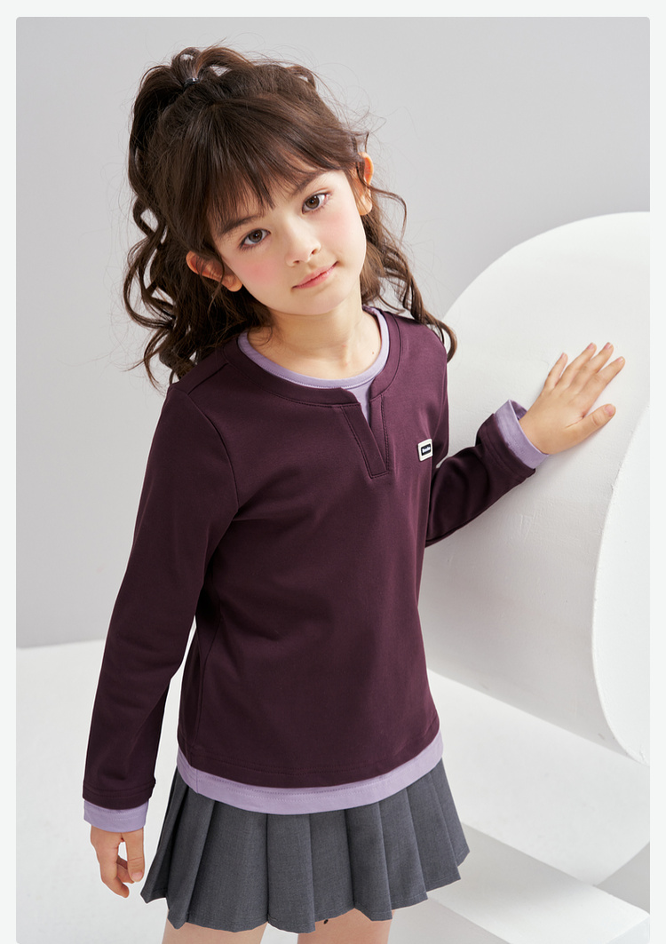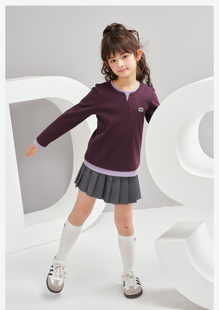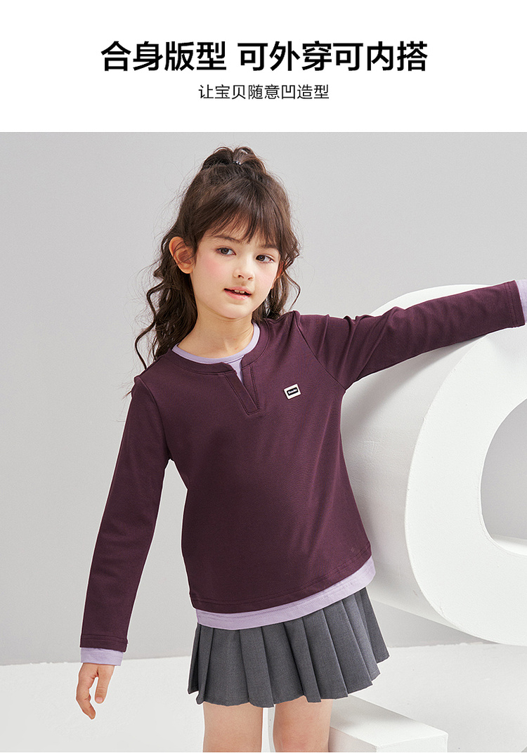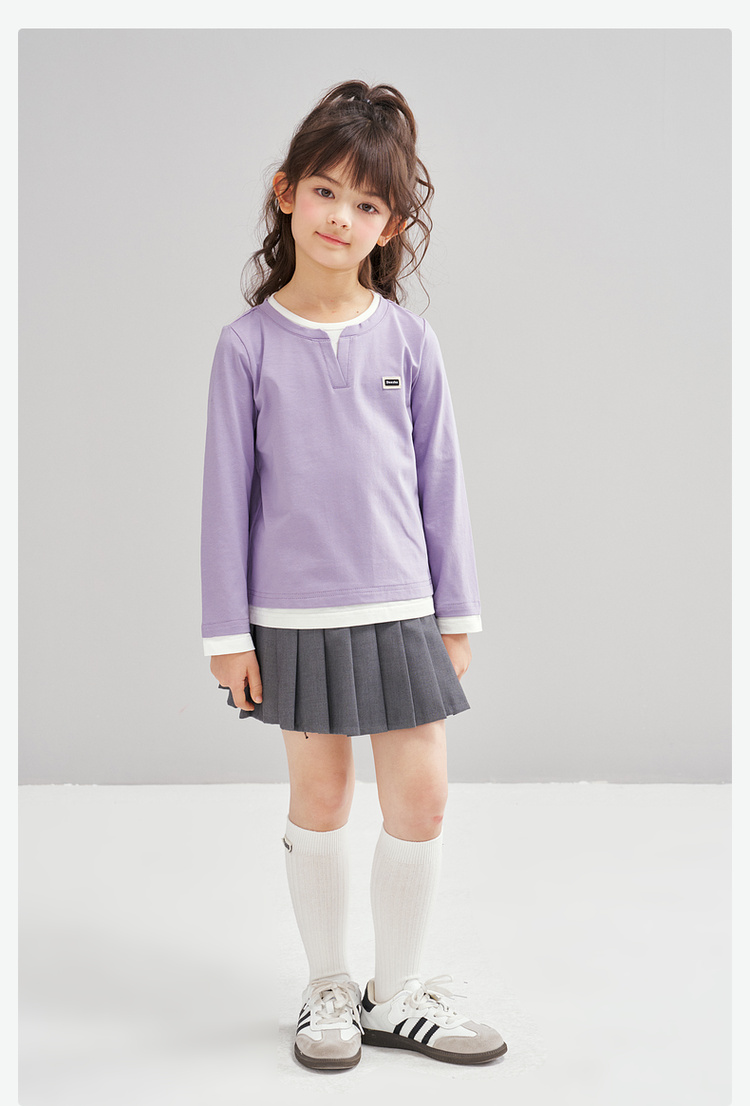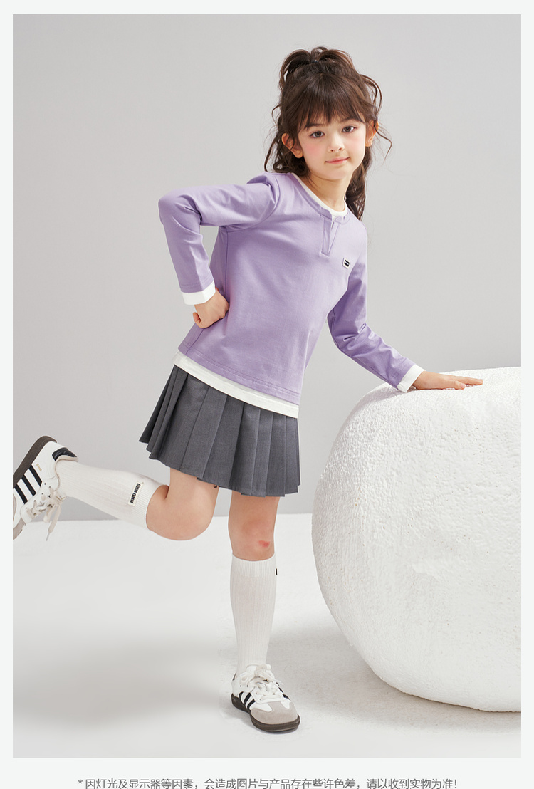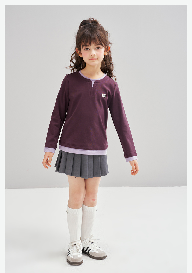 笛莎Deesha 2026春季女童时尚气质假两件长袖工恤