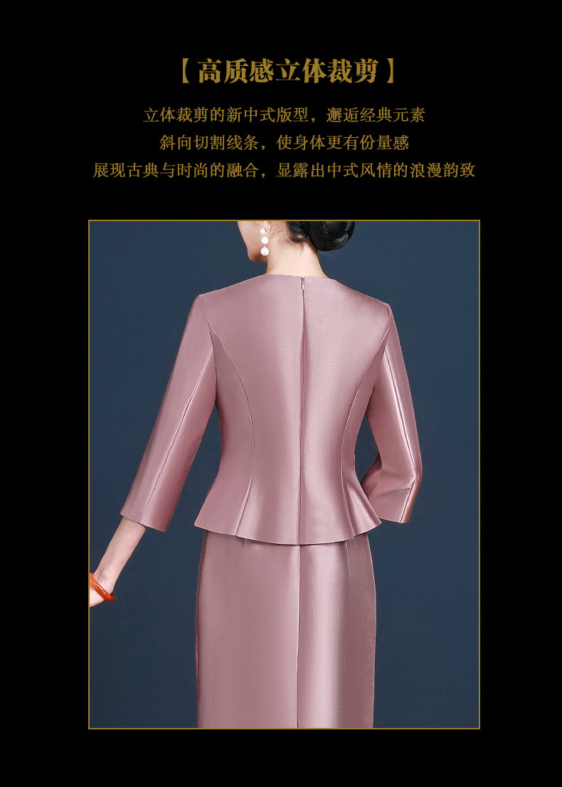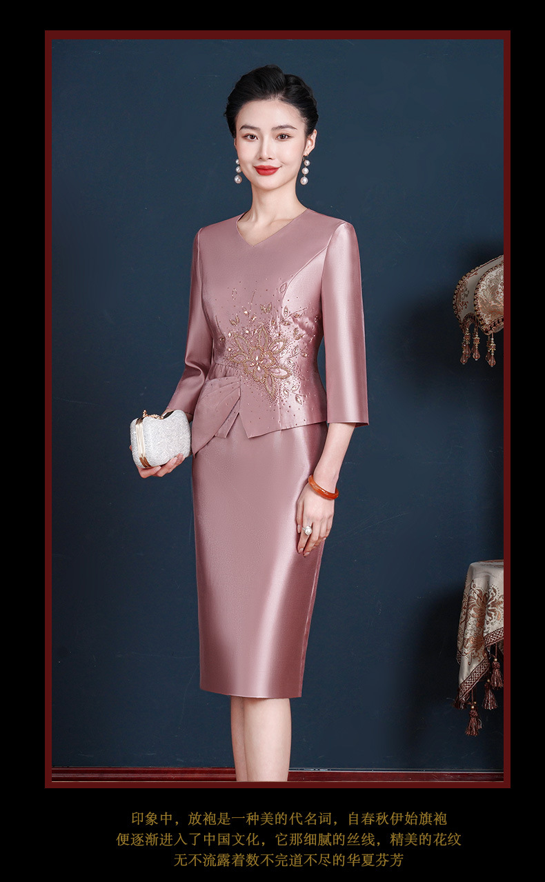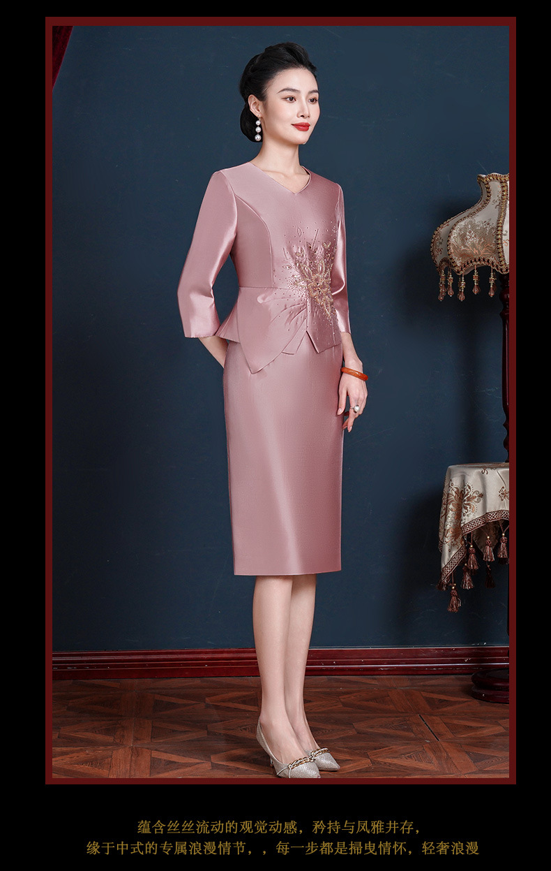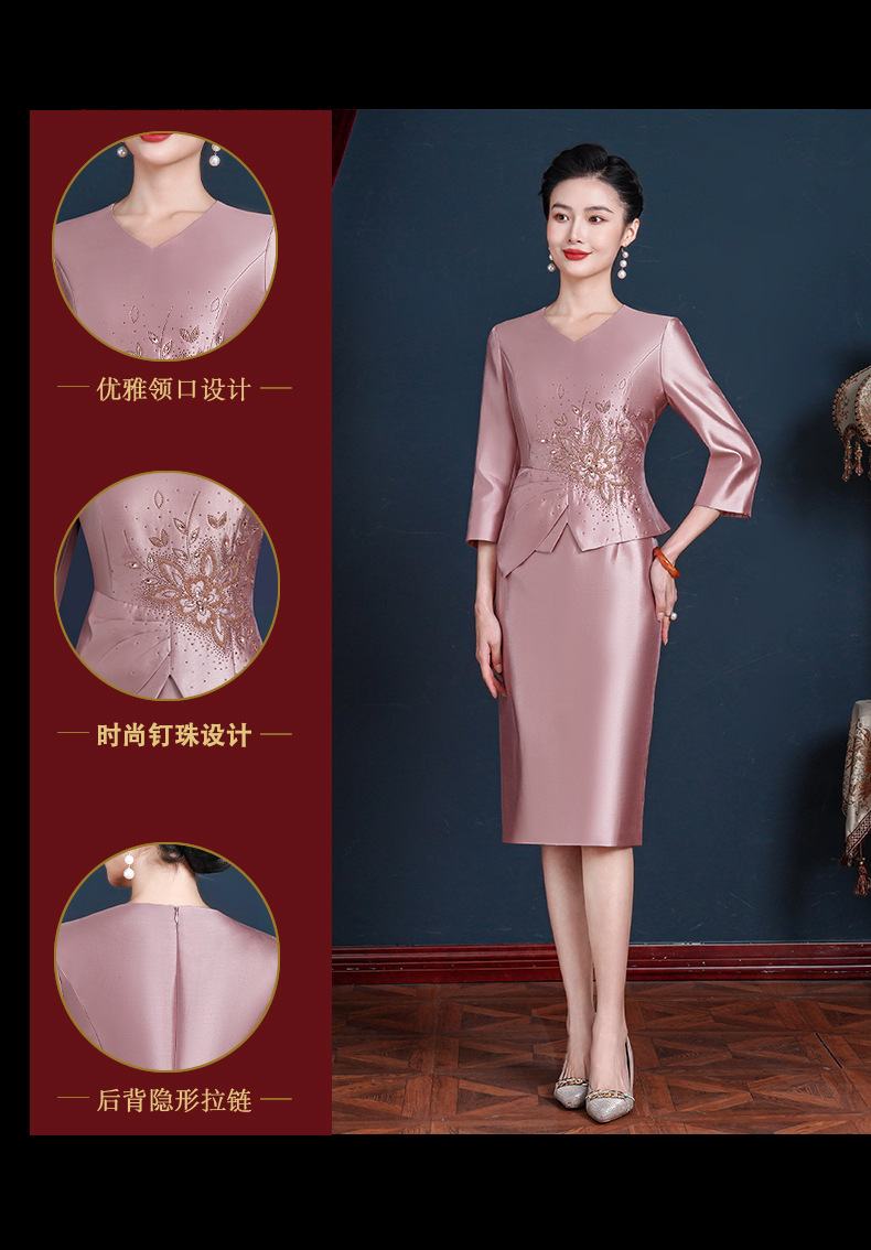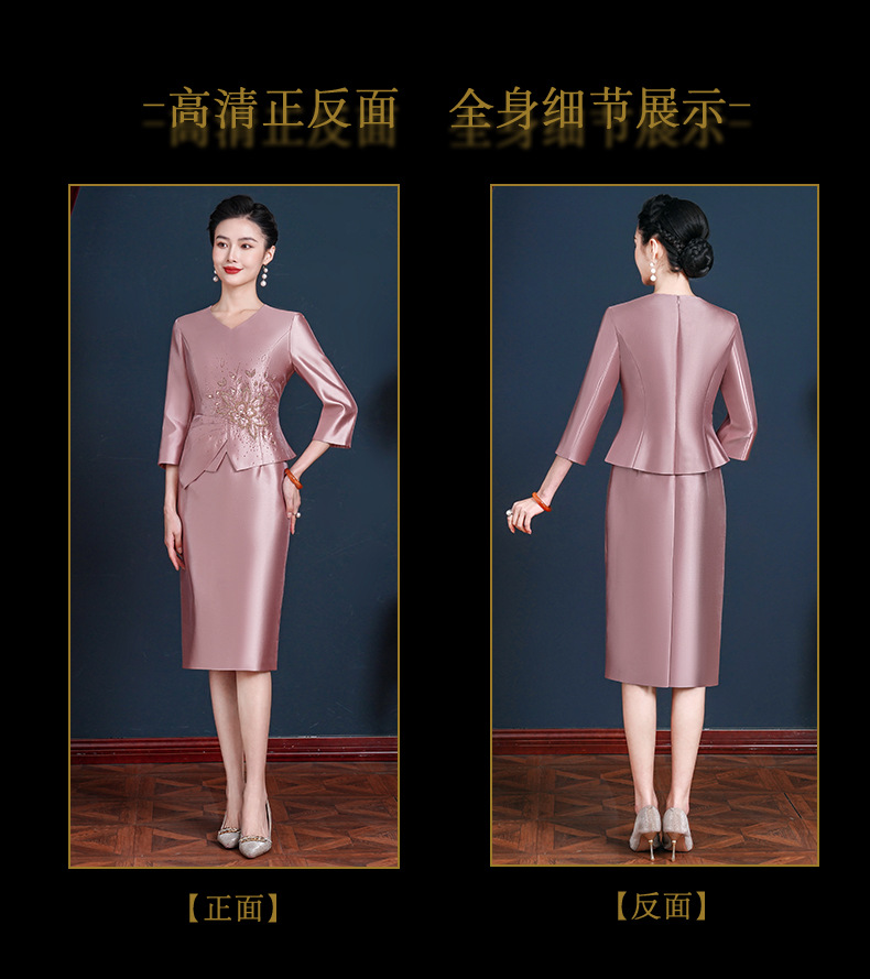 婚宴妈妈装礼服裙,高贵喜婆婆假两件连衣裙HH-9978