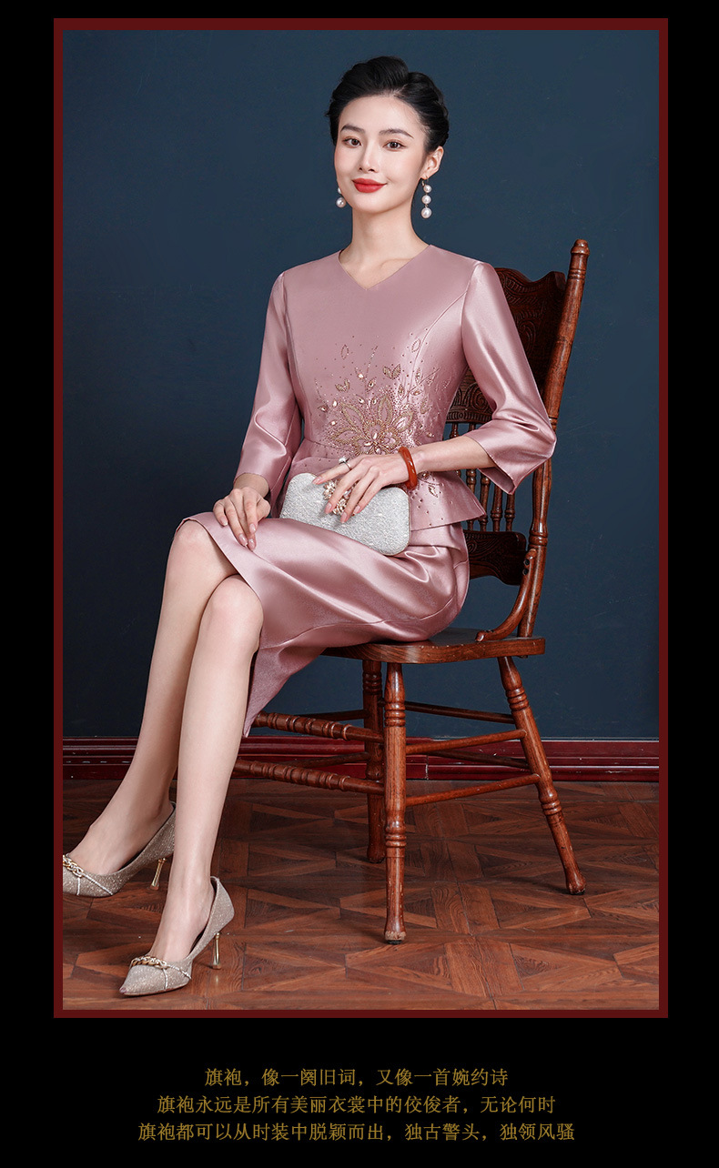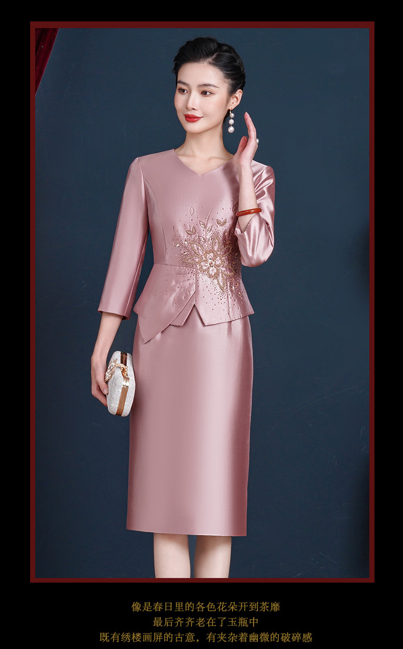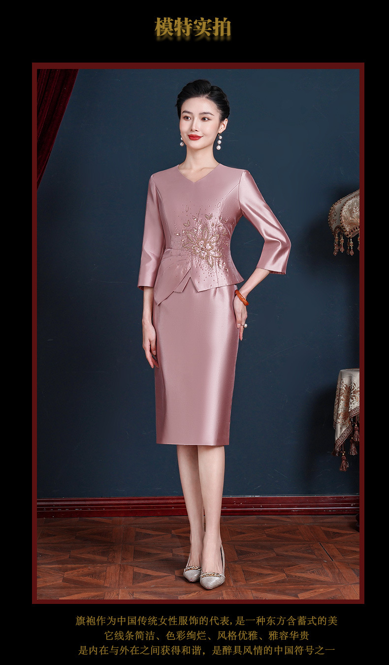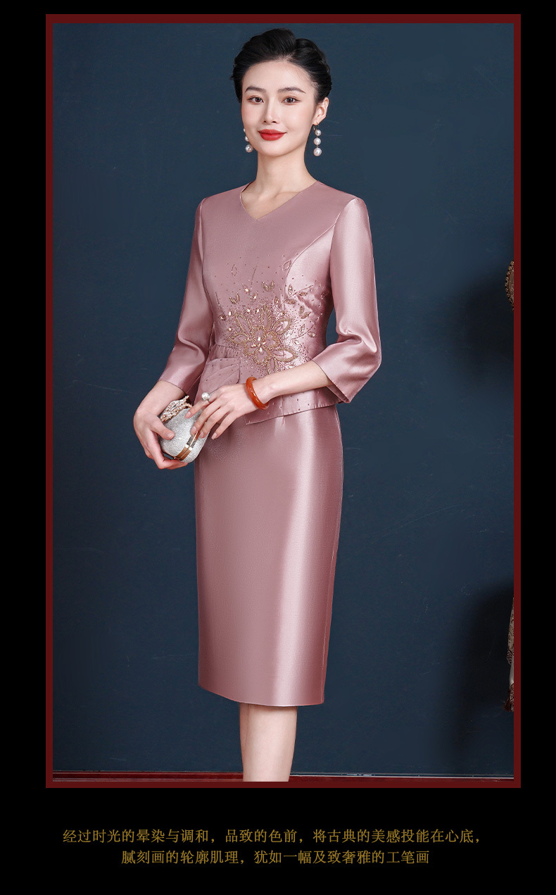 婚宴妈妈装礼服裙,高贵喜婆婆假两件连衣裙HH-9978