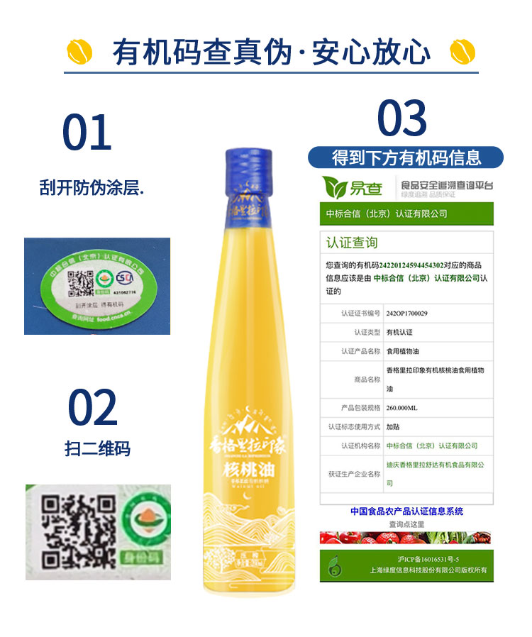 香格里拉印象有机核桃油260mL*2 (礼盒装)