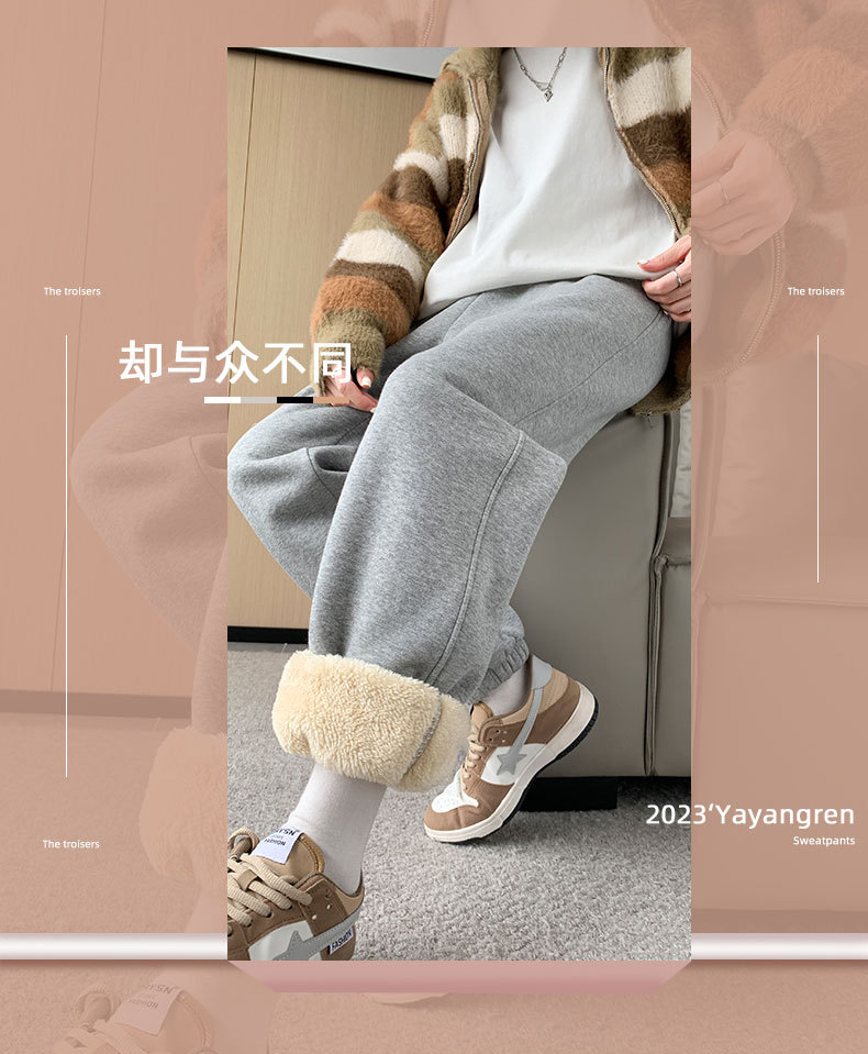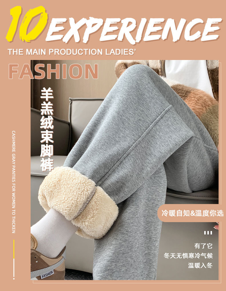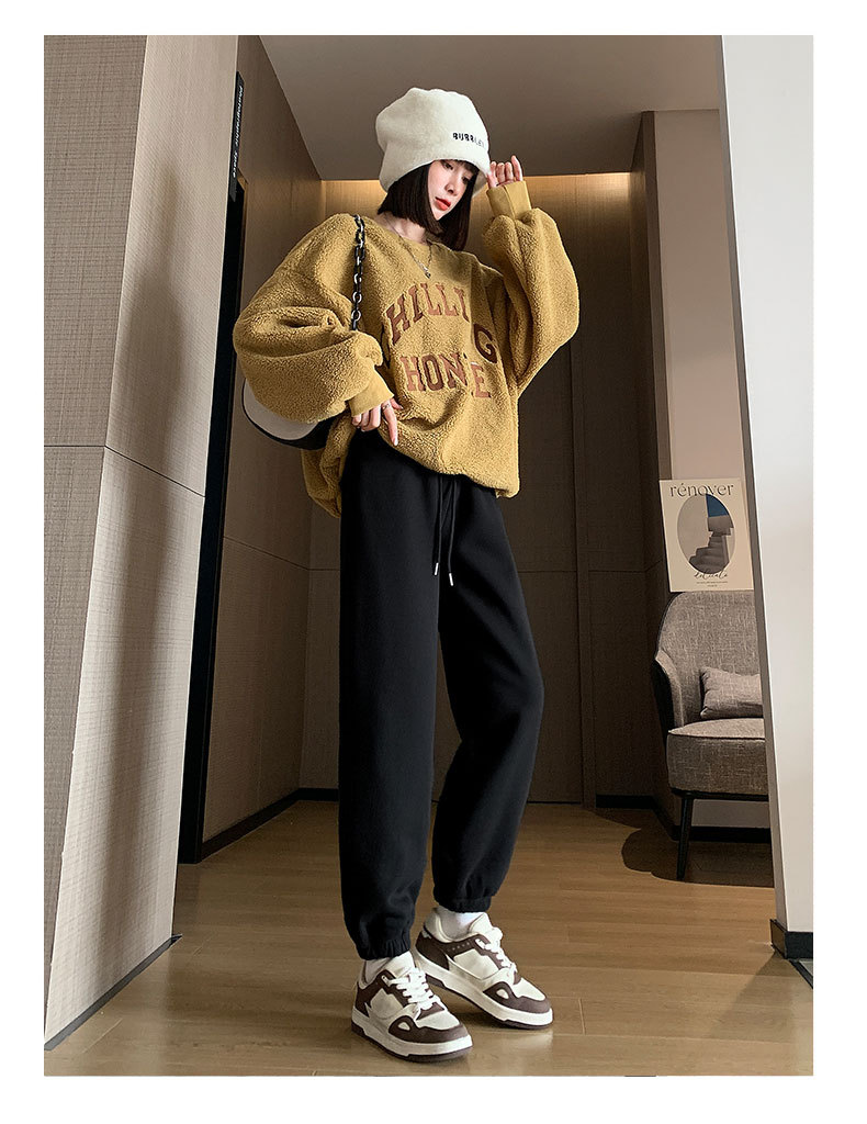 【羊羔绒运动裤】秋款新款 显瘦休闲加绒加厚小个子束脚卫裤