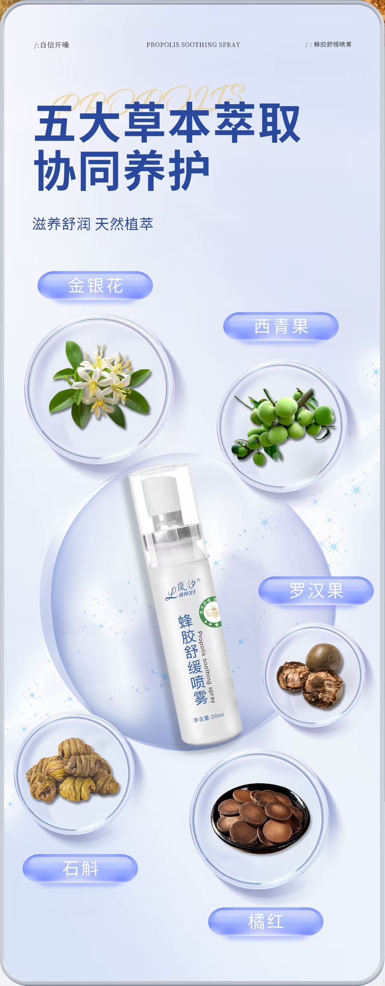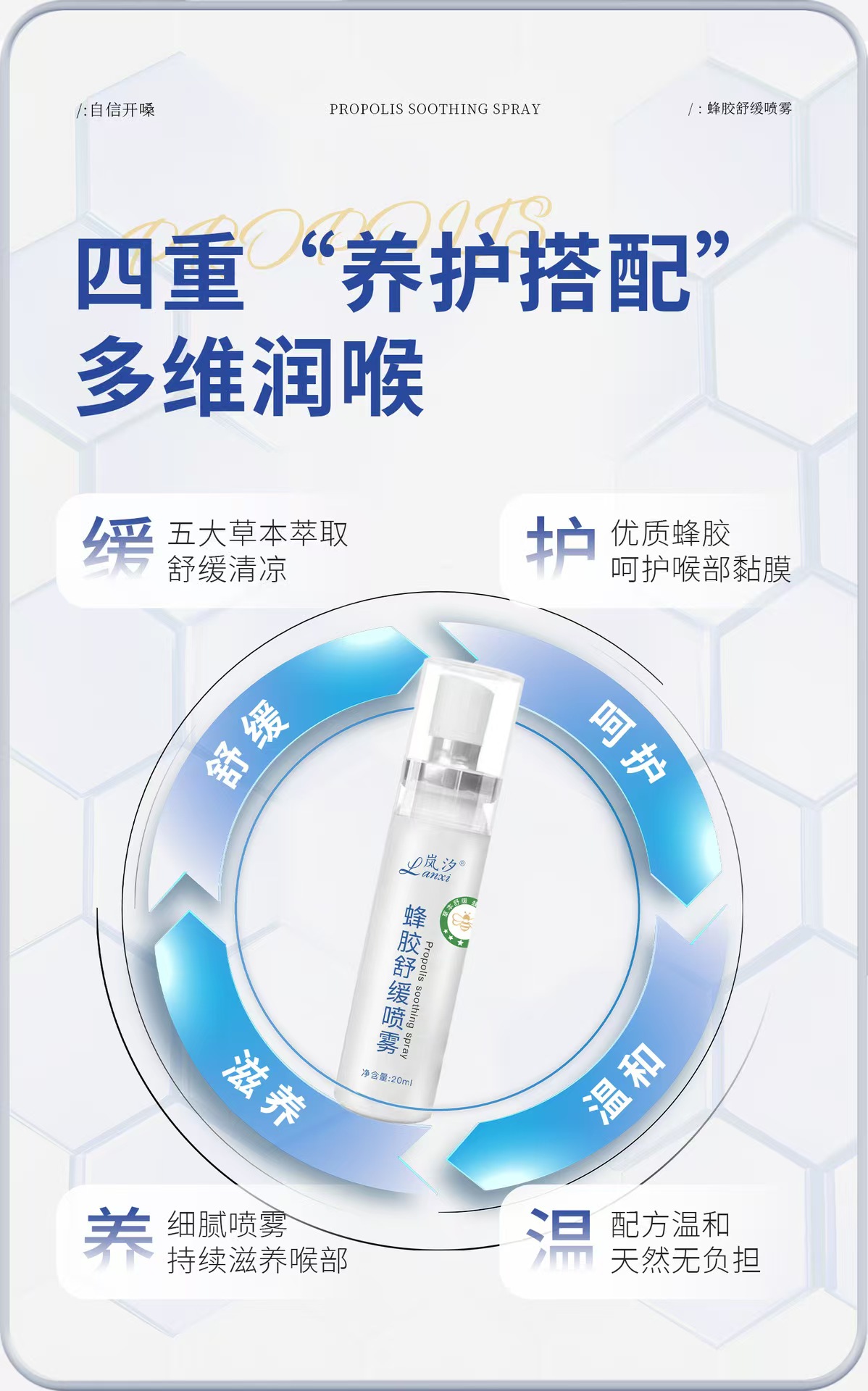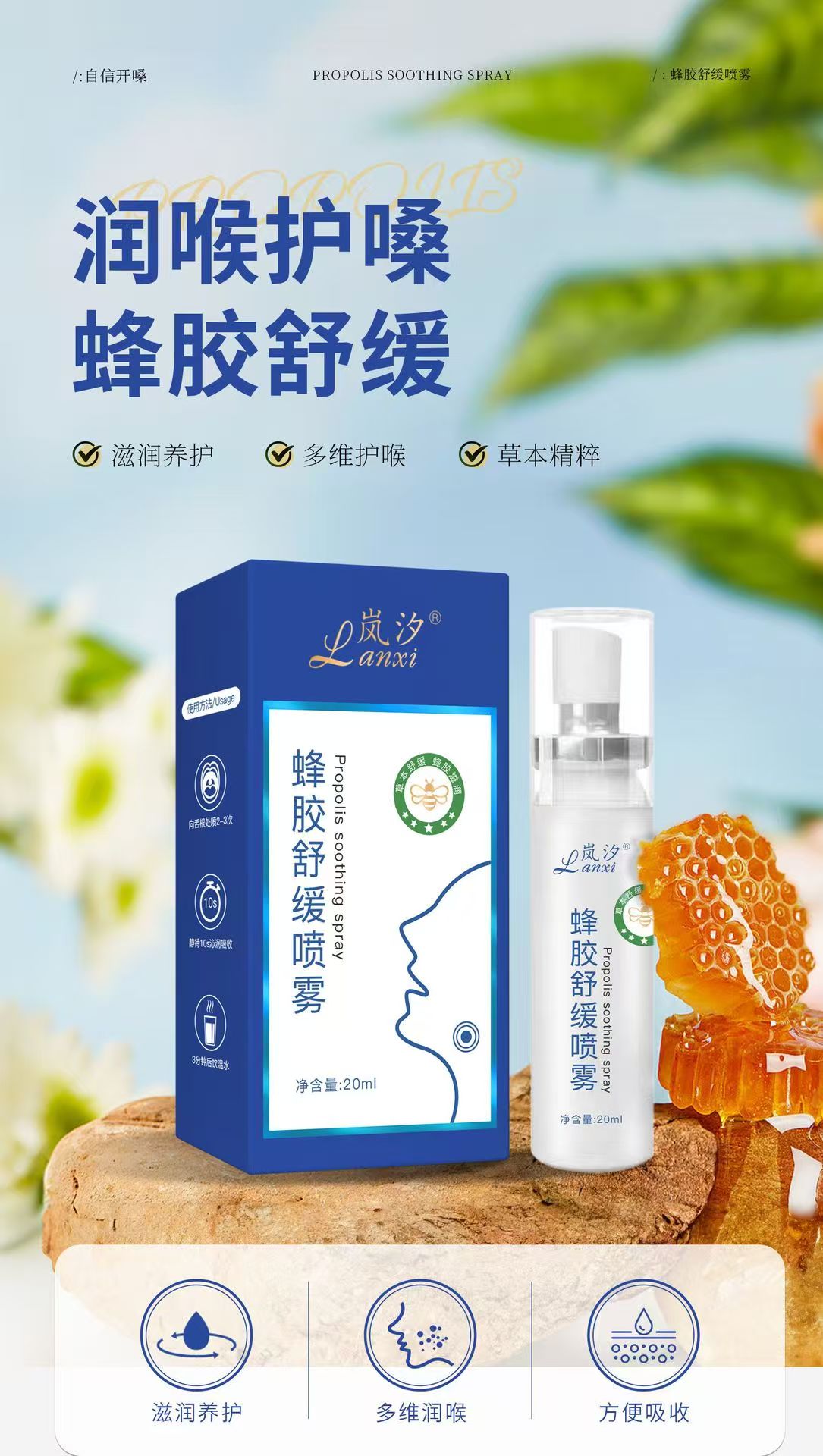 热卖中!!【拍1发2】蜂胶舒缓喷雾 五大草本萃取 蜂蜜蜂胶 滋润缓解 喉咙干痒 咽喉干哑 异物 温和配方