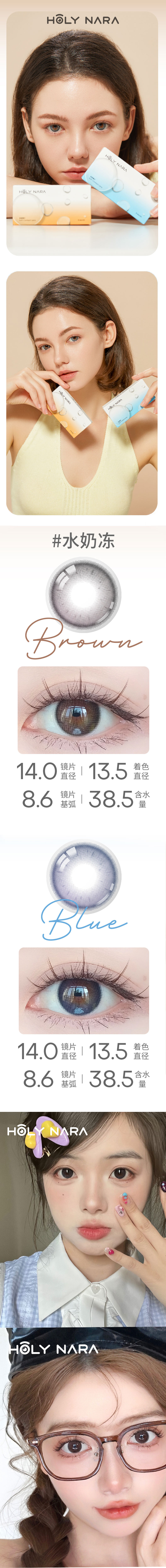 【半年抛】Holy Nara水奶冻蓝/棕 直径:14.0mm 含水38.5%(半年抛1片/盒 不同度数请拍两盒)