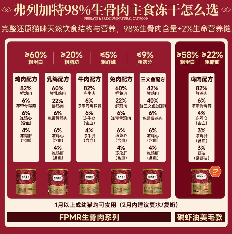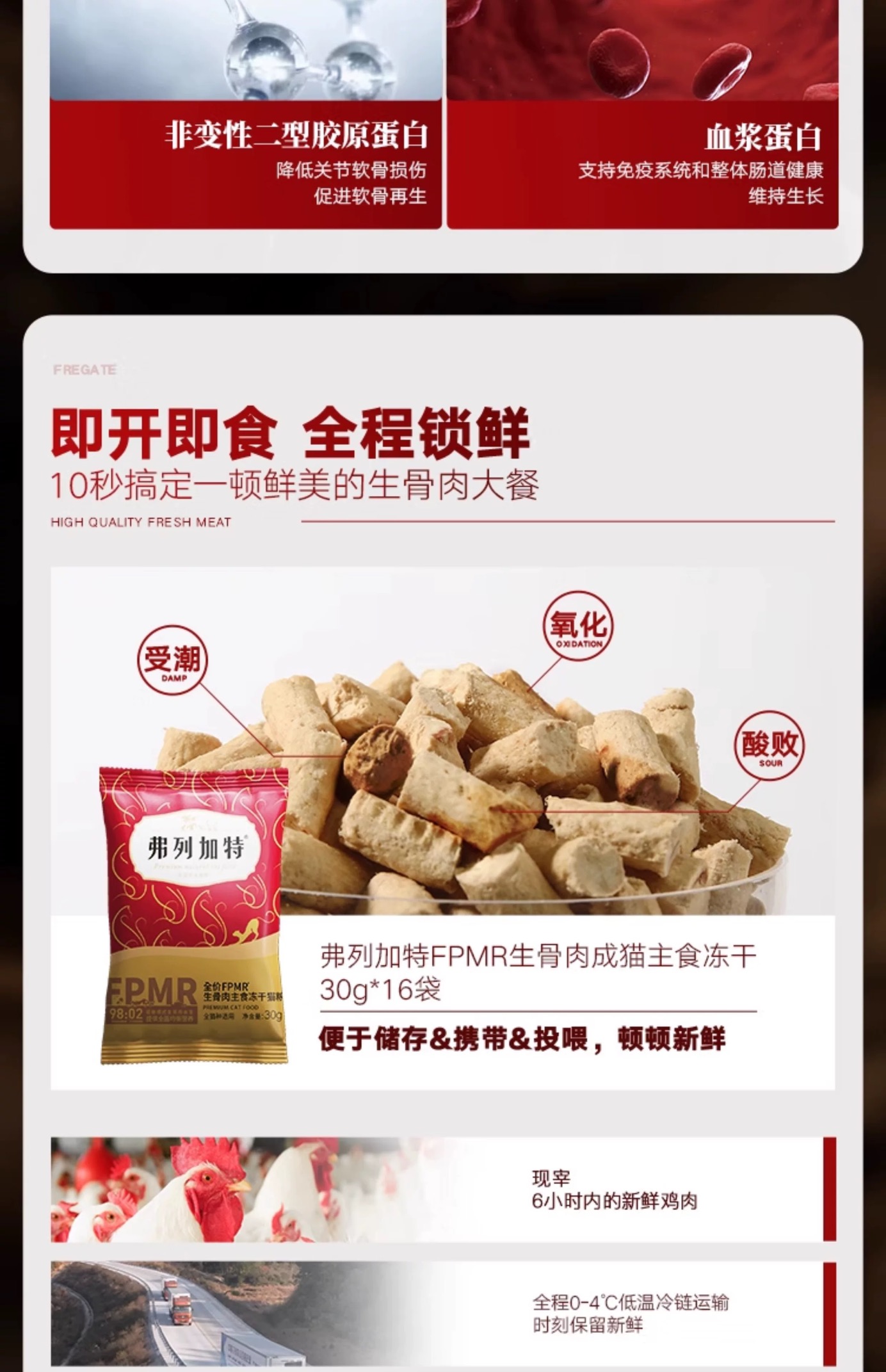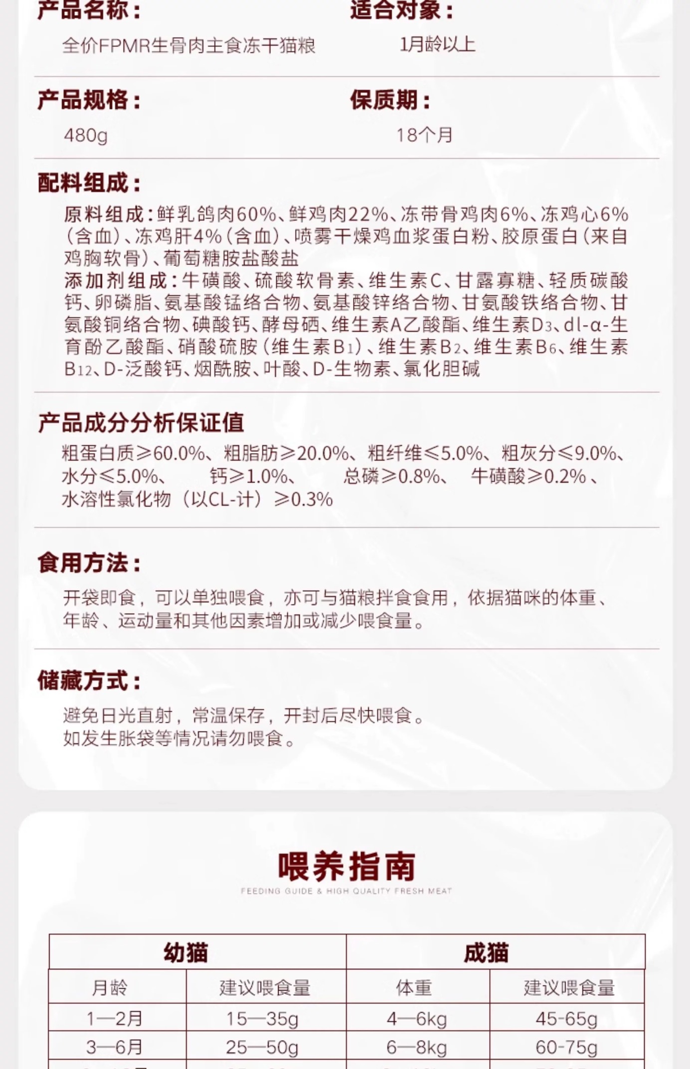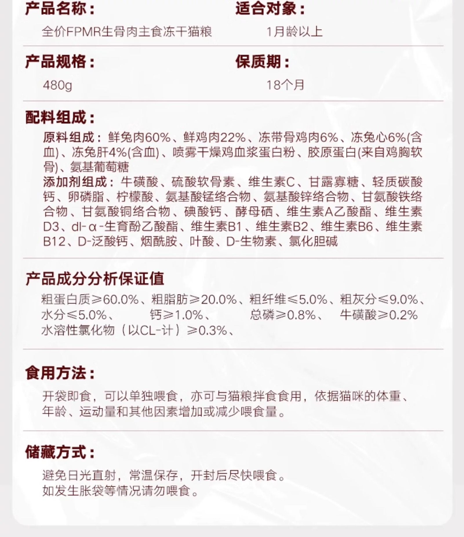 弗列加特FPMR主食冻干猫粮 生骨肉冻干480g/桶