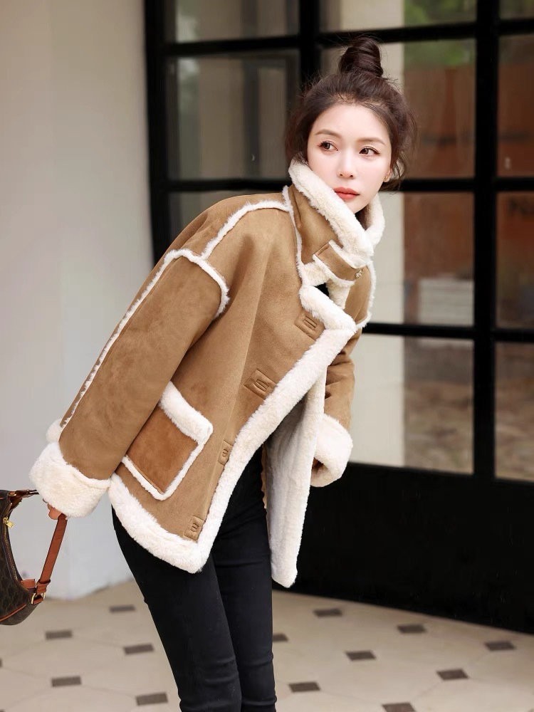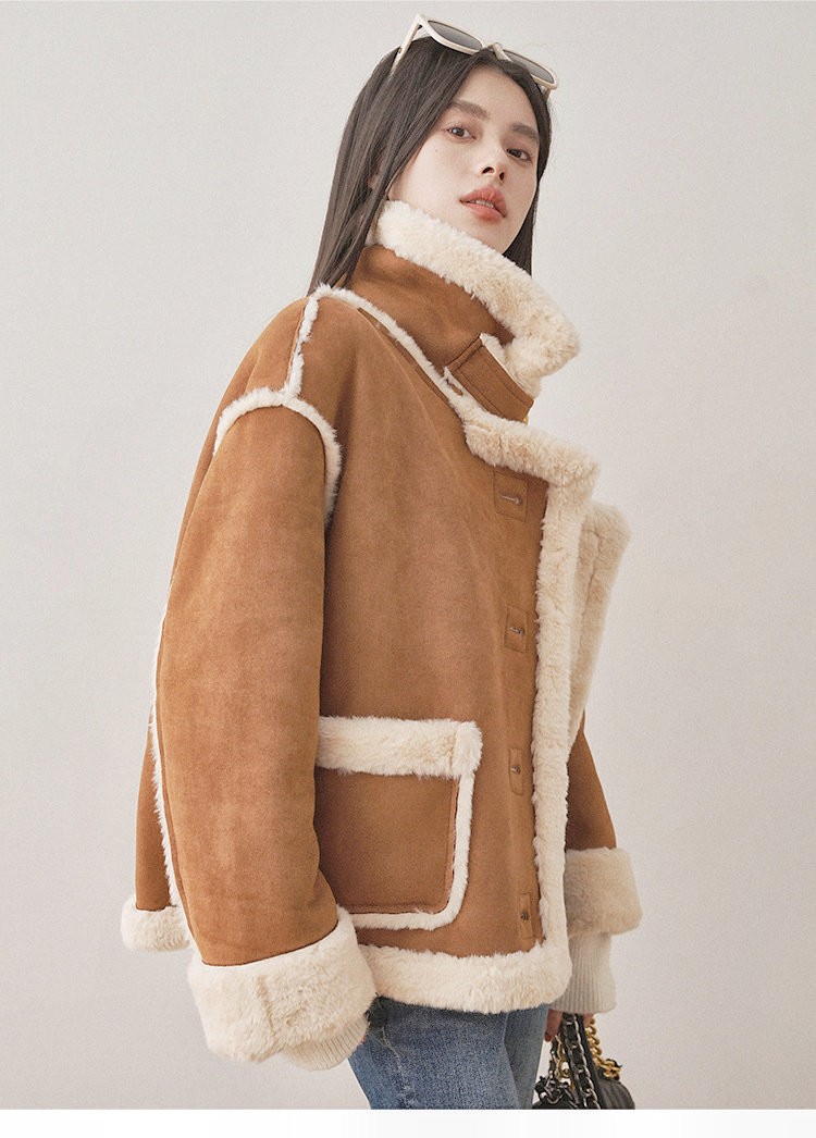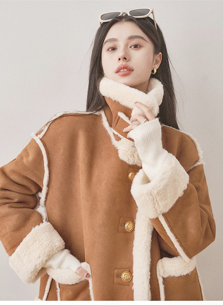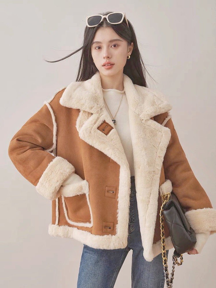 下单3-5天发货!MAX.GLOREA美拉德皮毛一体大衣 仿貂毛皮毛一体 夹克大翻领版型 毛质密实手感顺滑 不挑身材 显瘦洋气