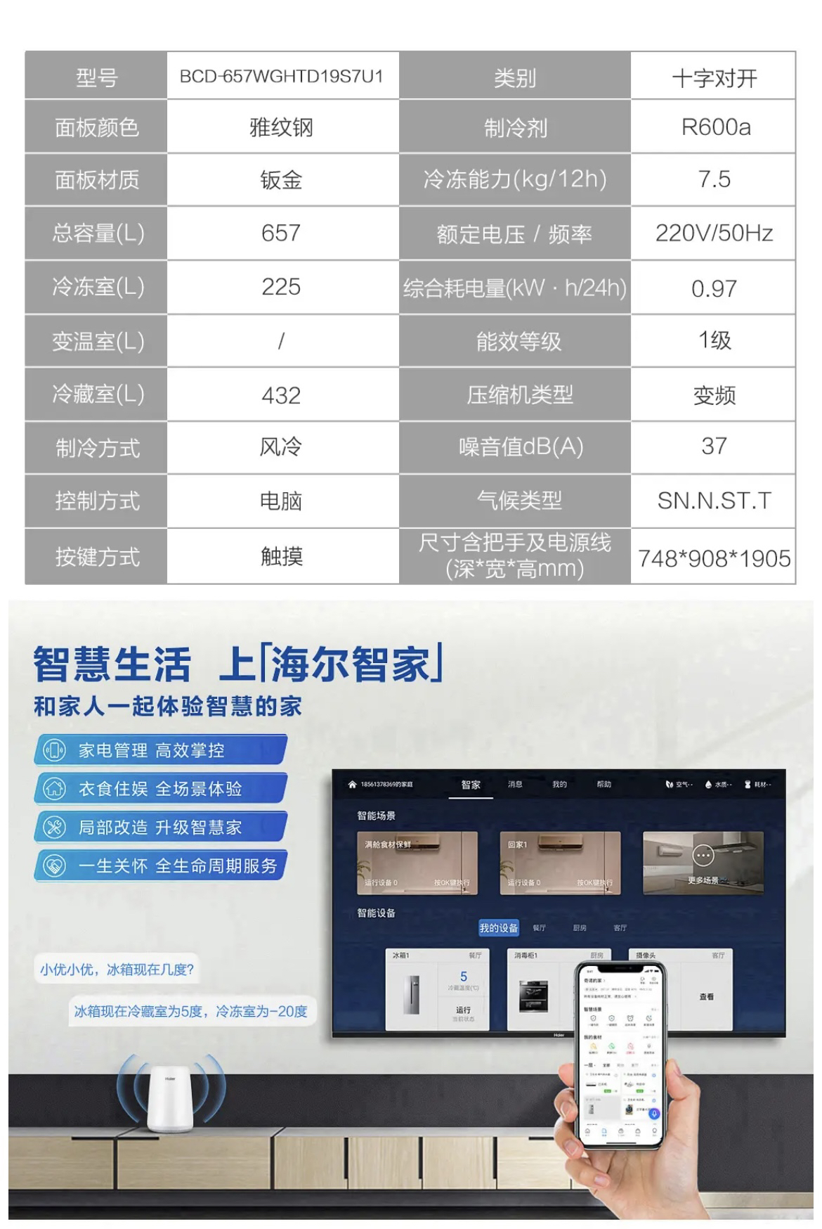 海尔(Haier)冰箱 BCD-657WGHTD19S7U1