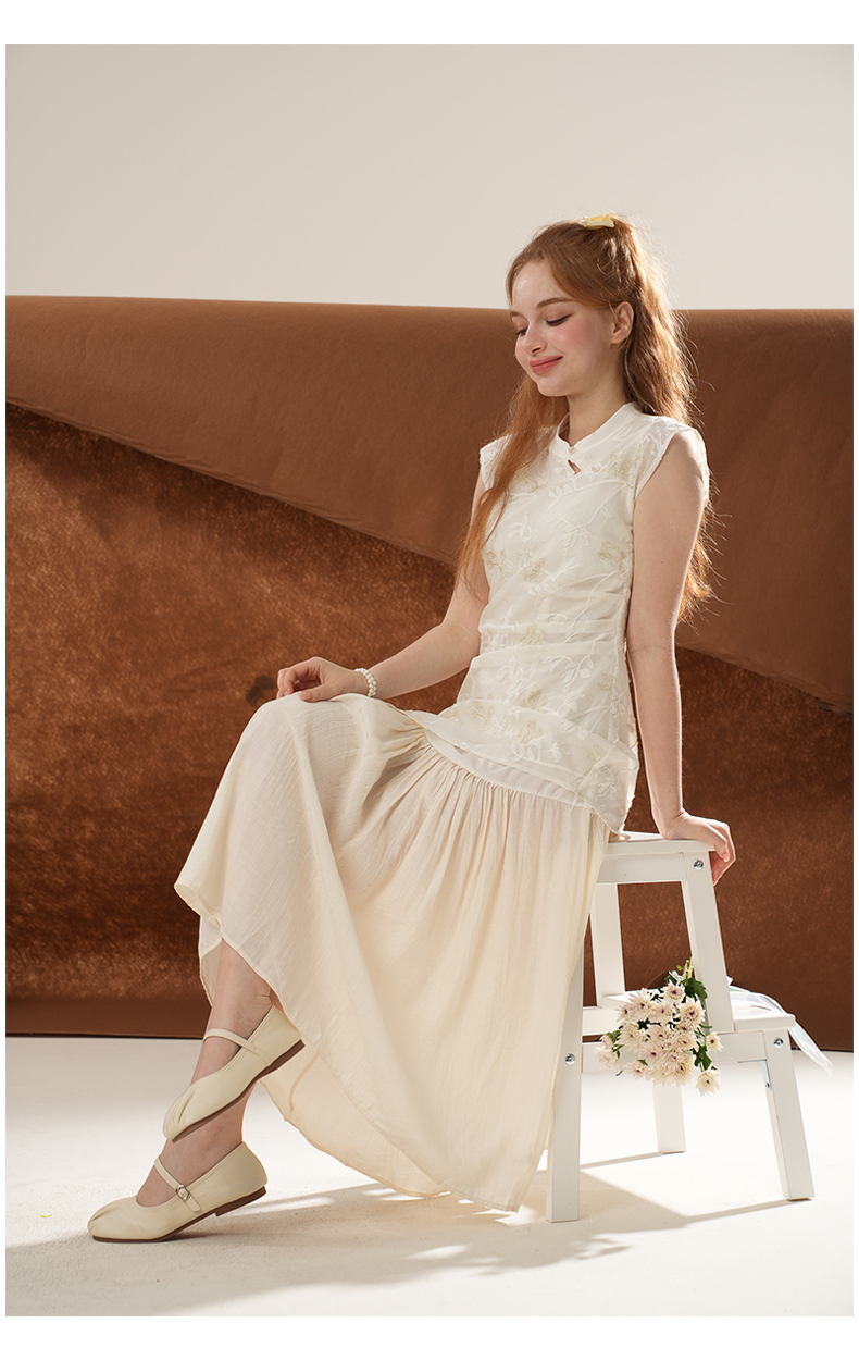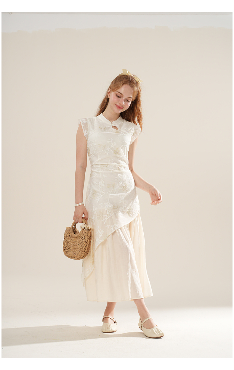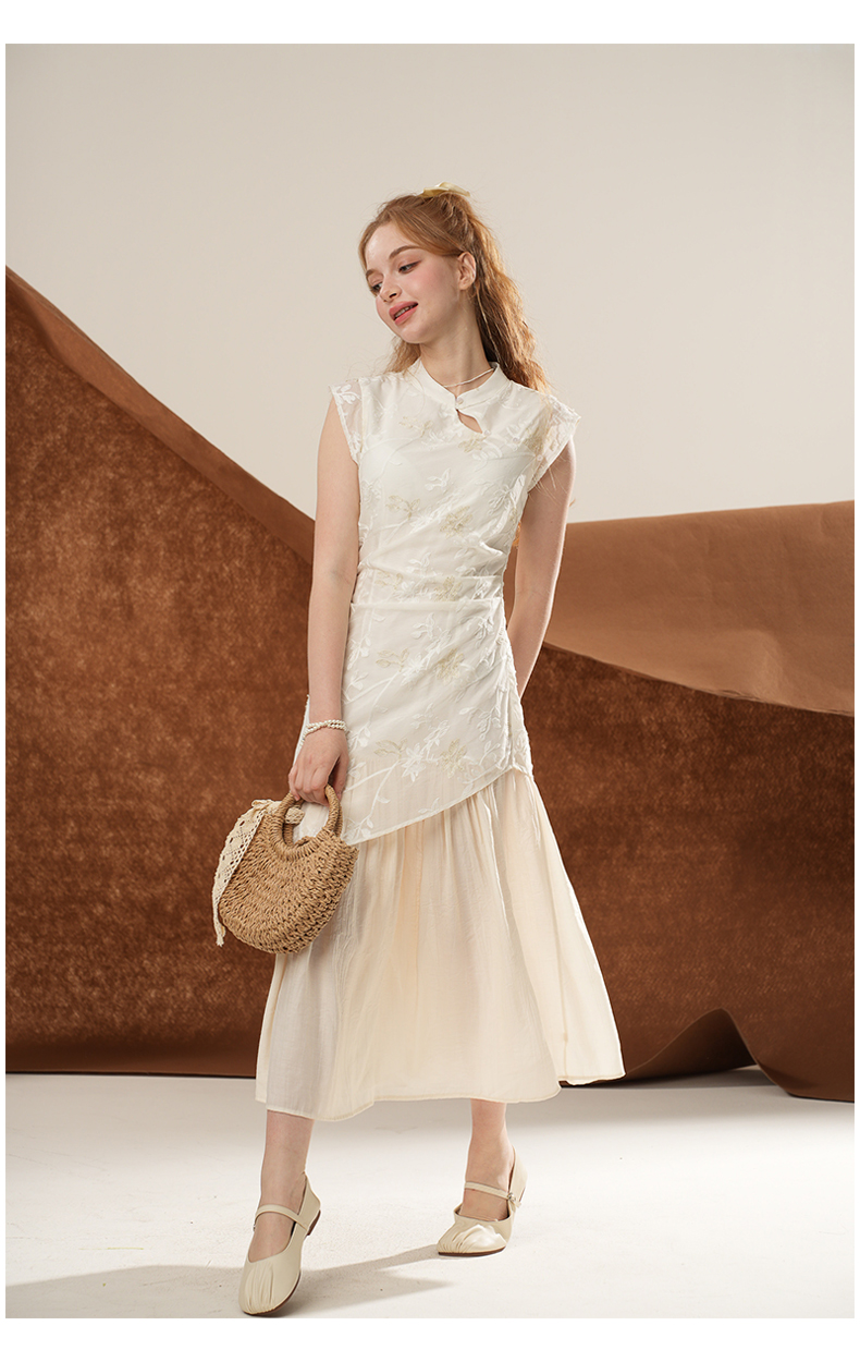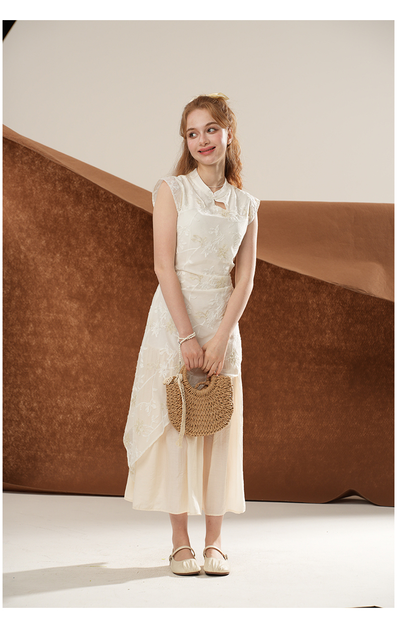 女装立领斜门襟蕾丝拼接中式连衣裙-1293Q5221005