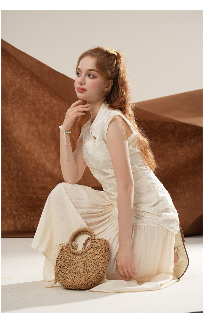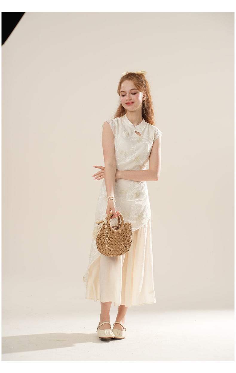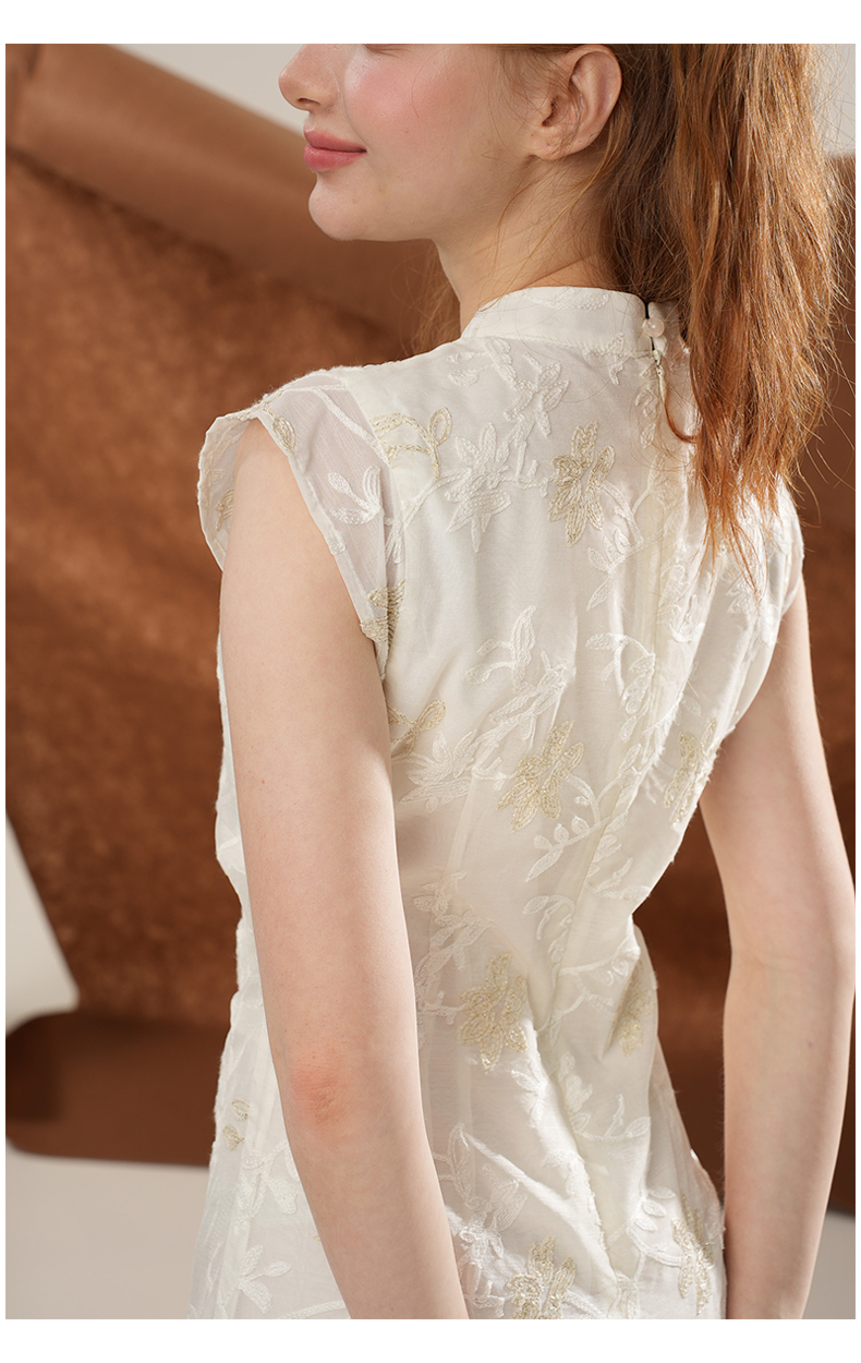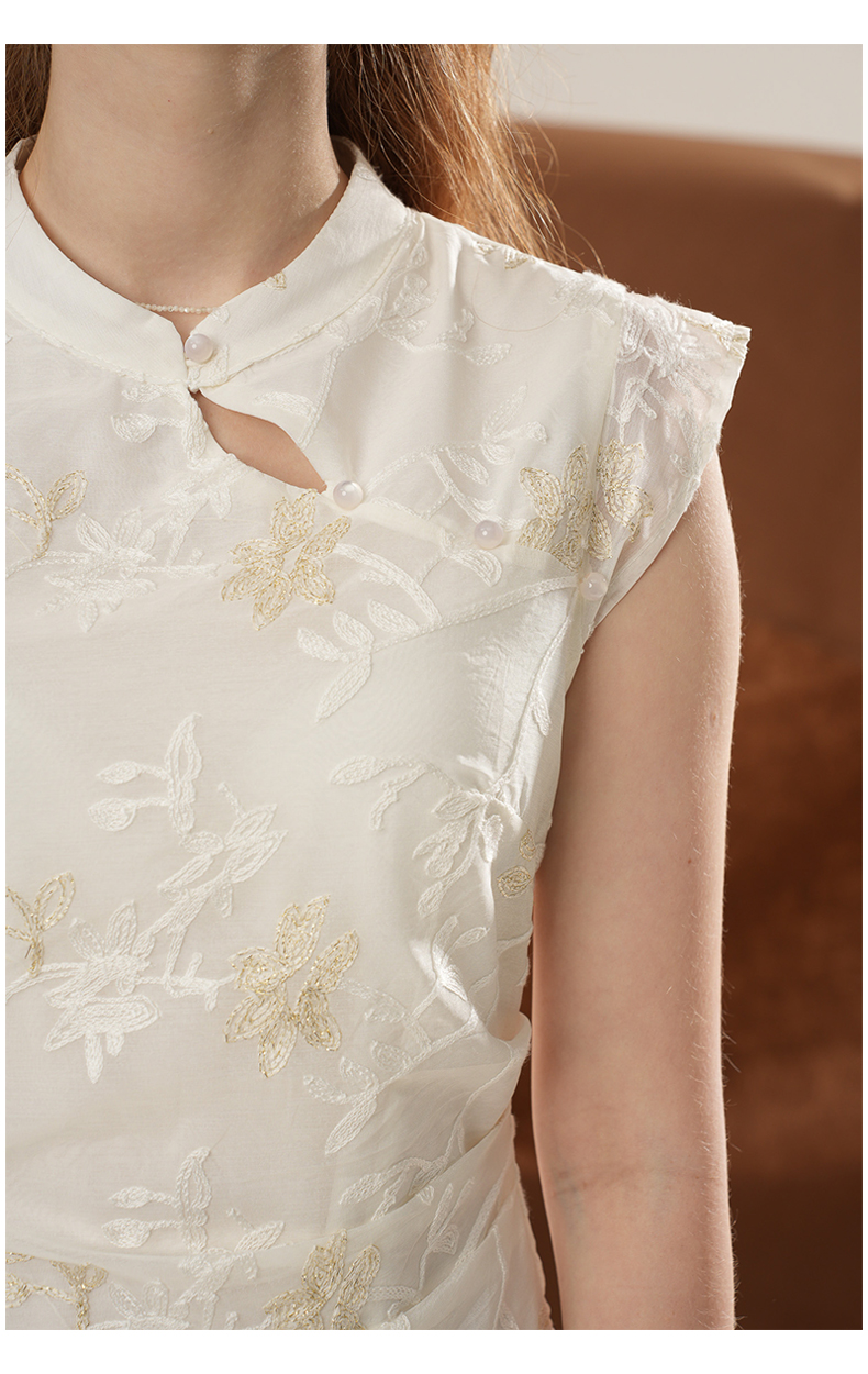 女装立领斜门襟蕾丝拼接中式连衣裙-1293Q5221005