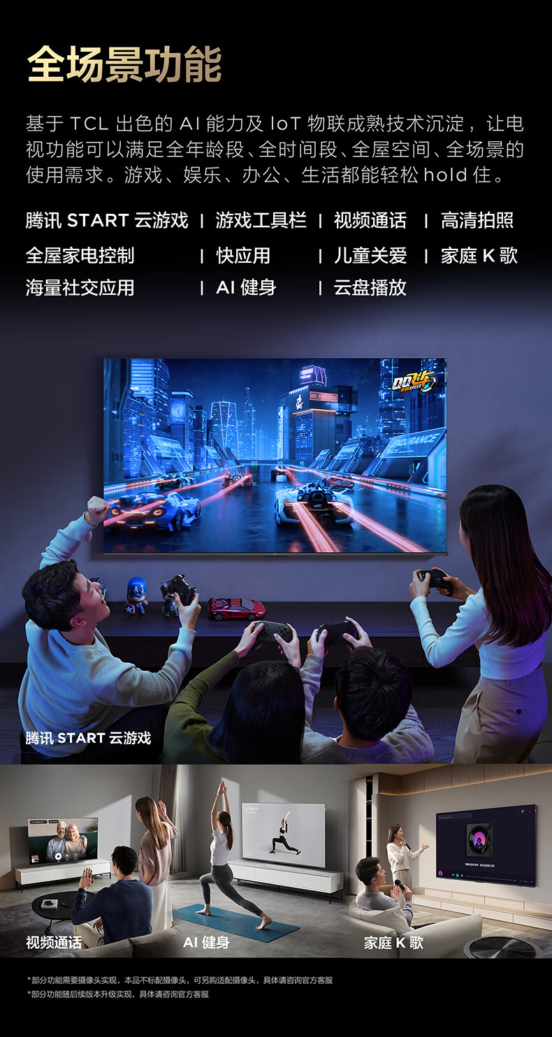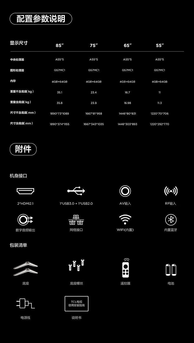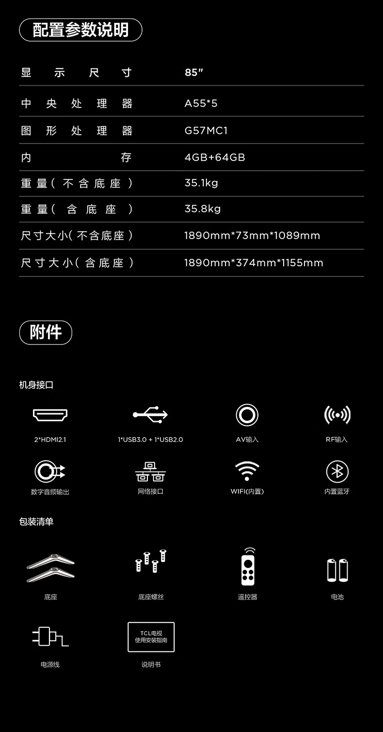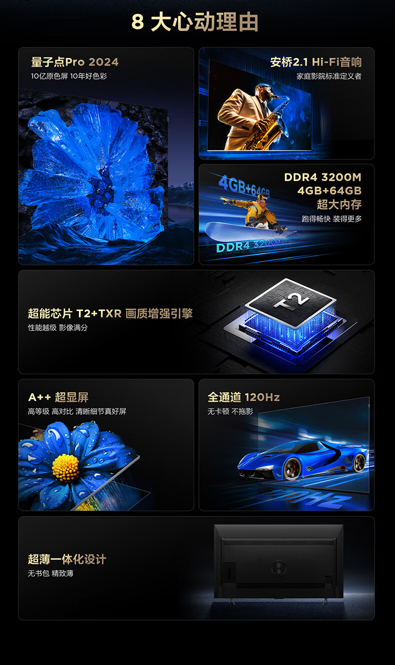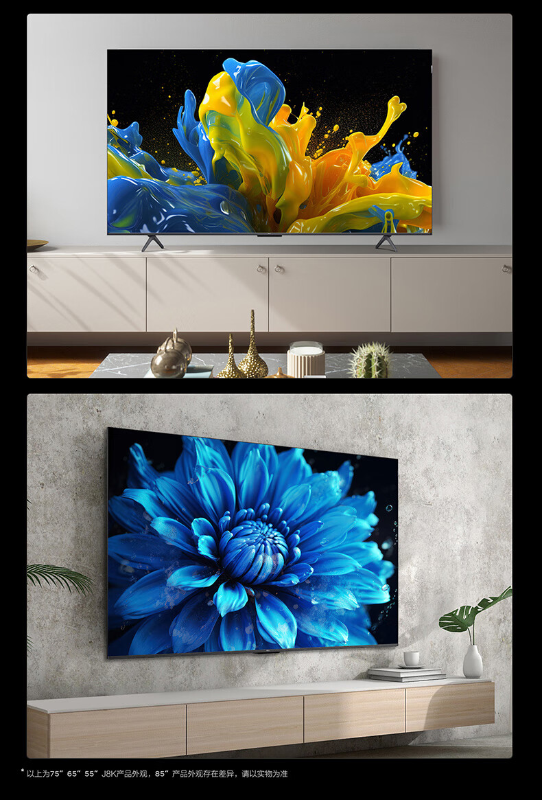 TCL电视J8K 55英寸 65英寸 75英寸 85英寸超薄量子点电视 安桥2.1 Hi-Fi音响 全通道120Hz 4GB+64GB A++超显屏