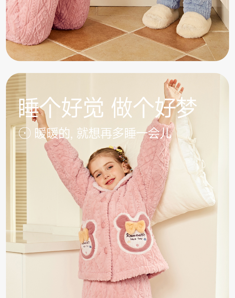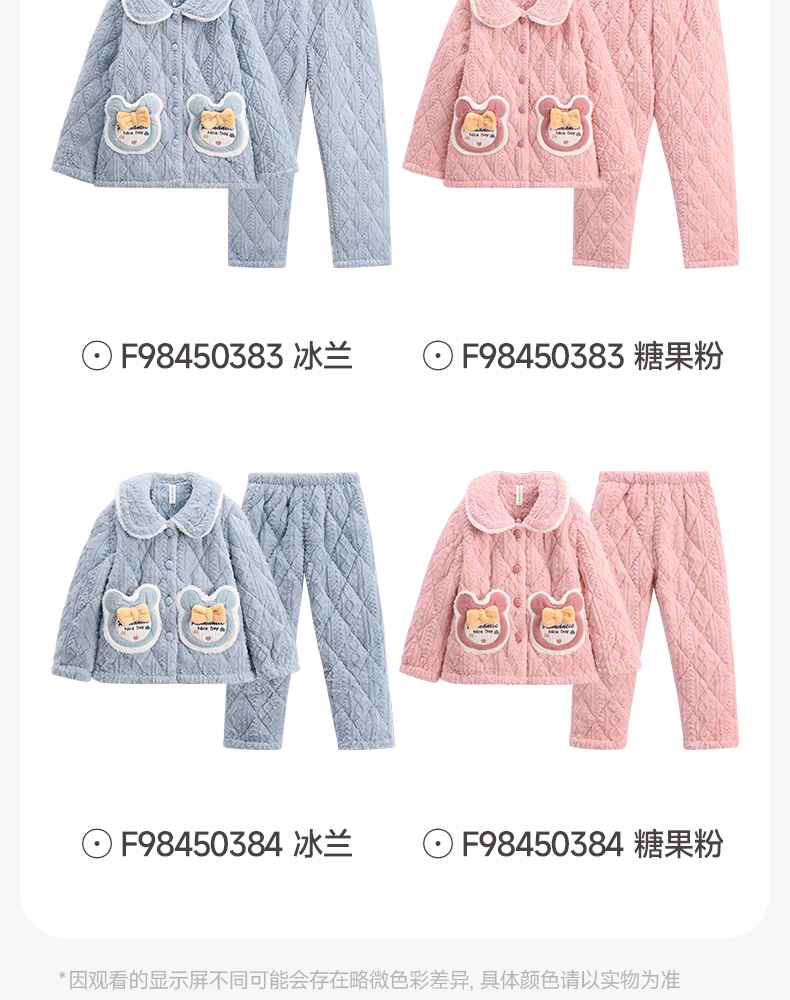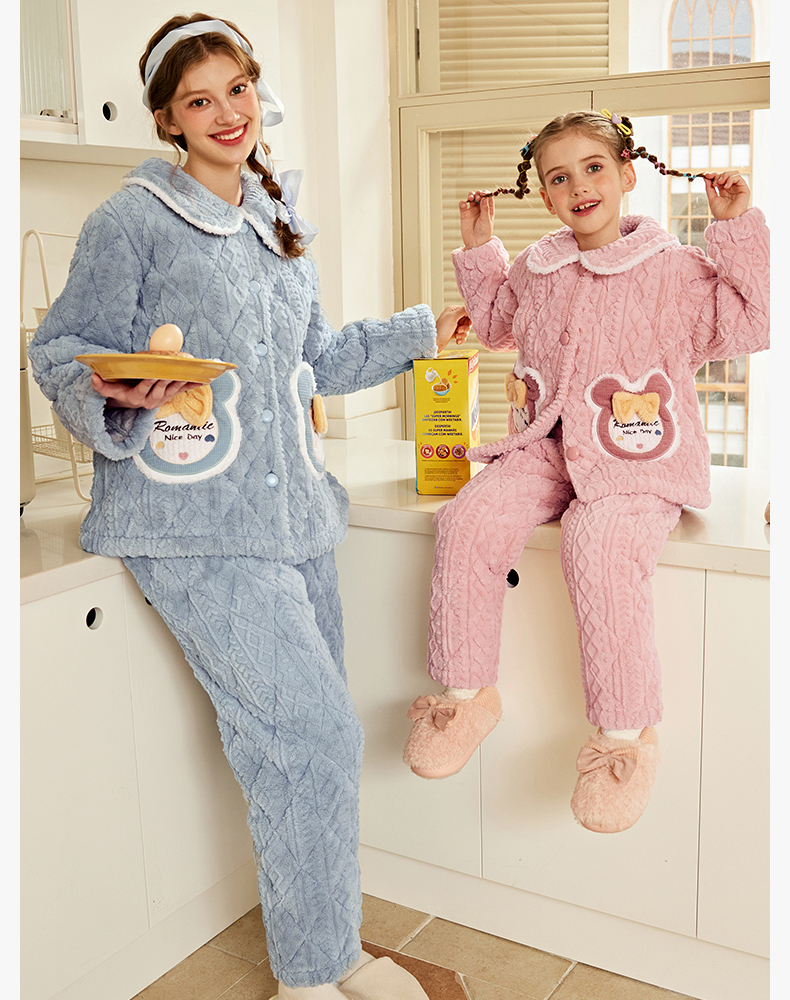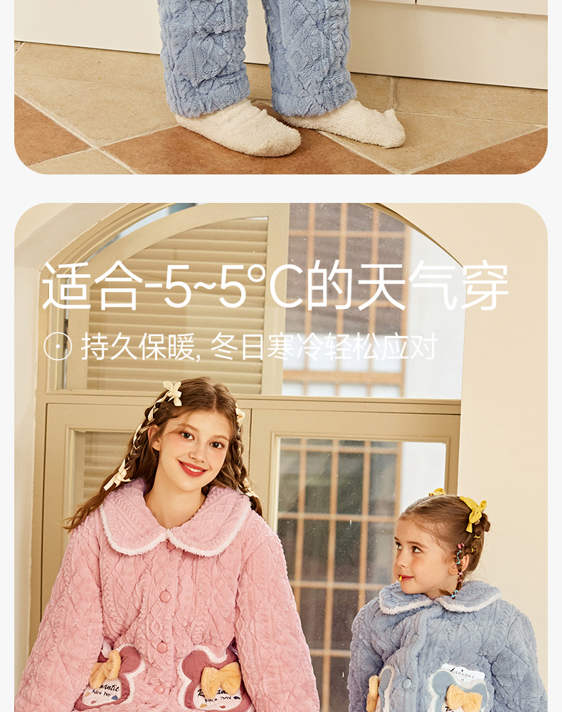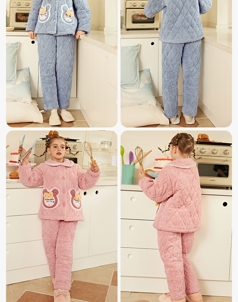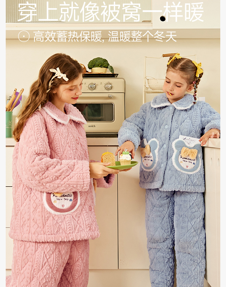芬腾女童冬季睡衣珊瑚绒三层夹棉加绒加厚女孩儿童亲子家居服套装