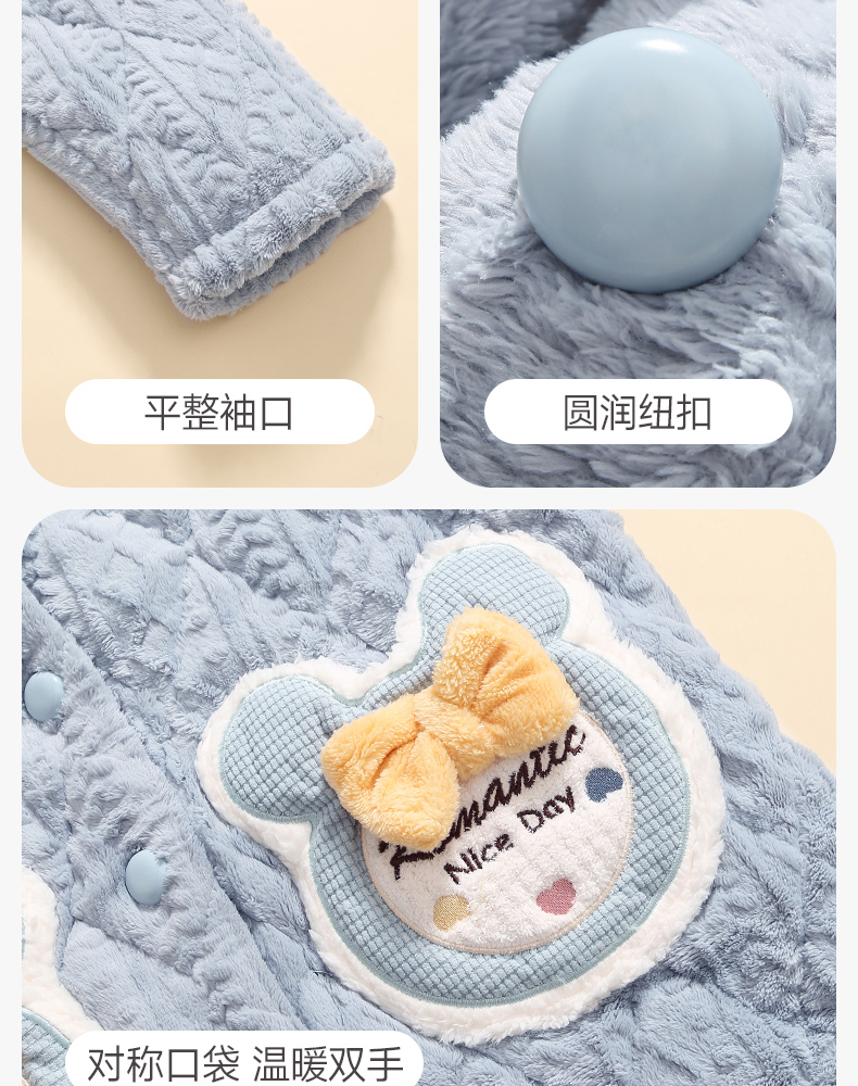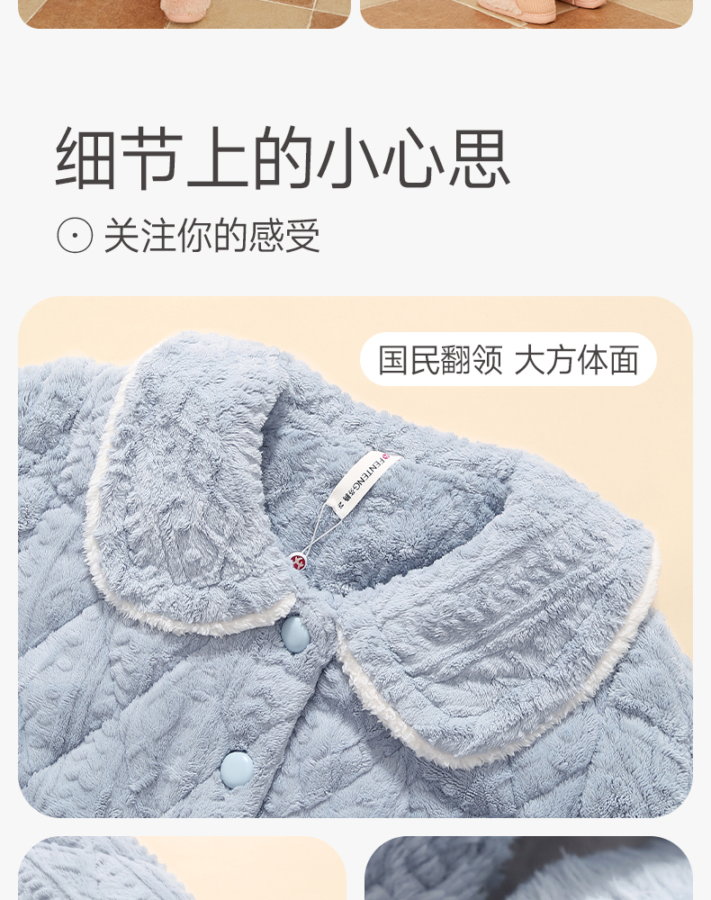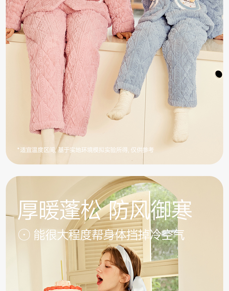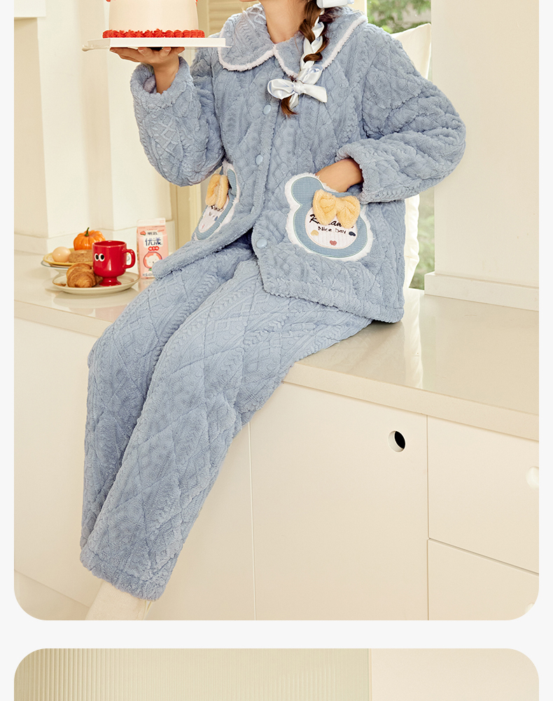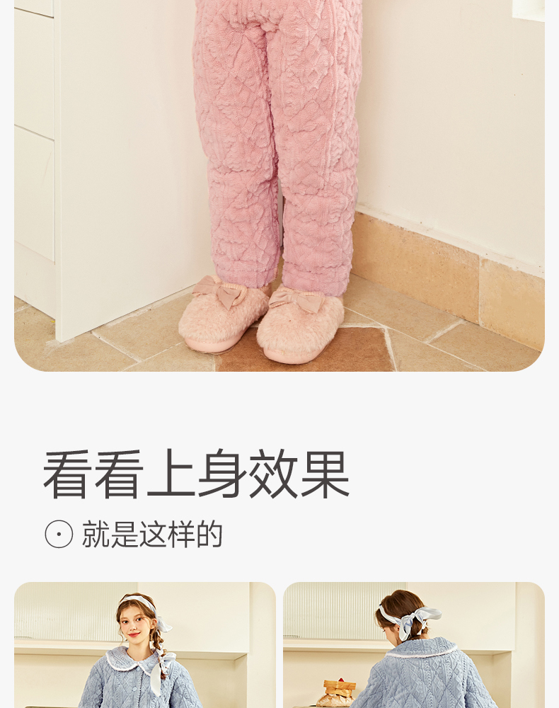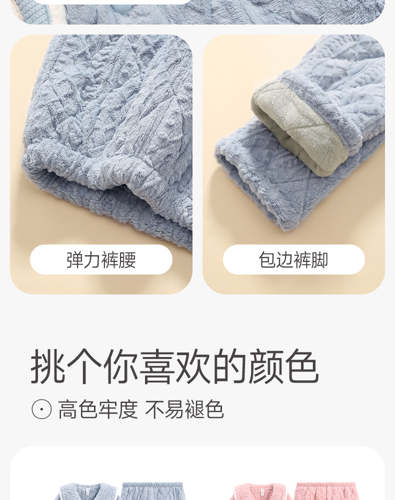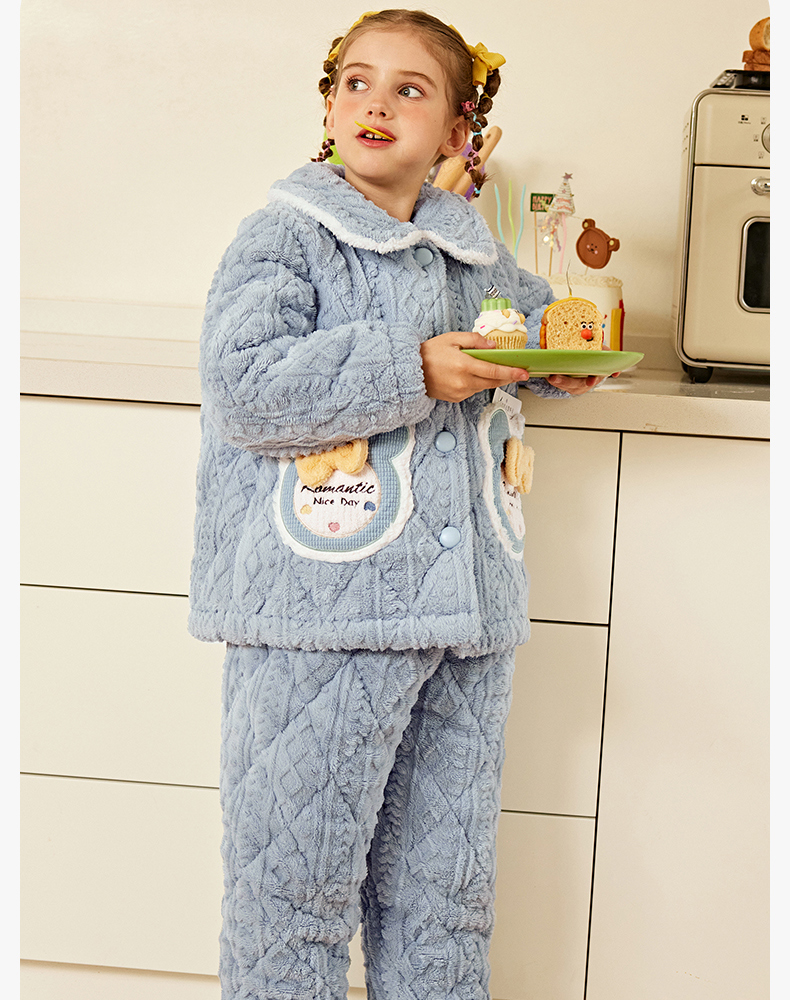 芬腾女童冬季睡衣珊瑚绒三层夹棉加绒加厚女孩儿童亲子家居服套装