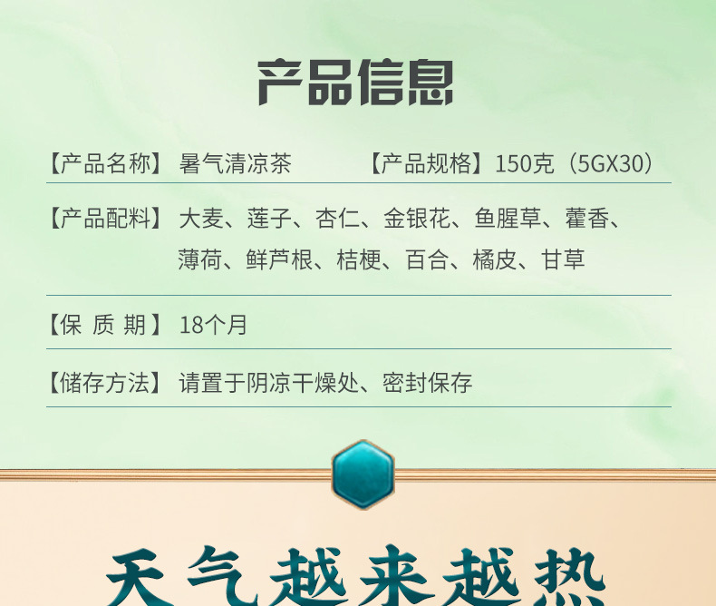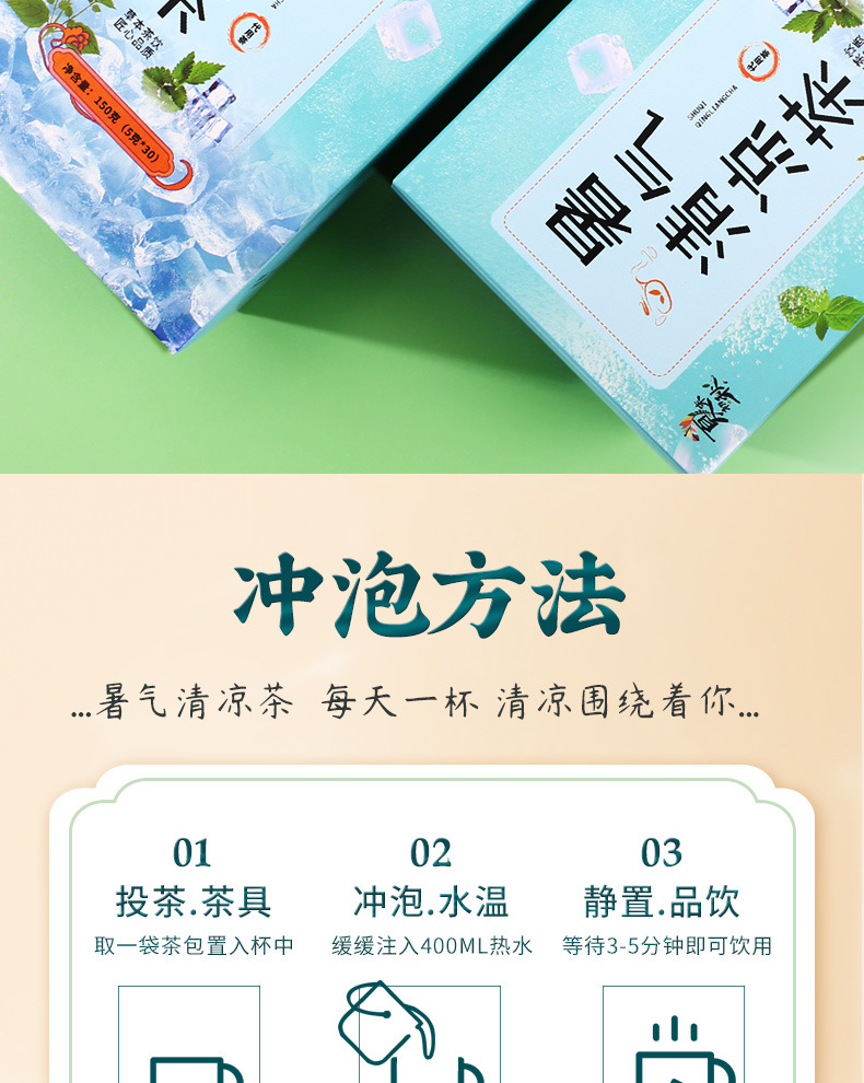 【家庭常备!暑气清凉茶】 30包150克盒薄荷藿香清凉茶夏天避暑养生茶夏季清凉茶,独立茶包更耐泡。ry