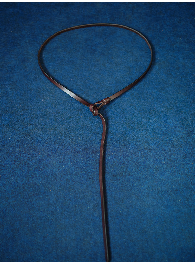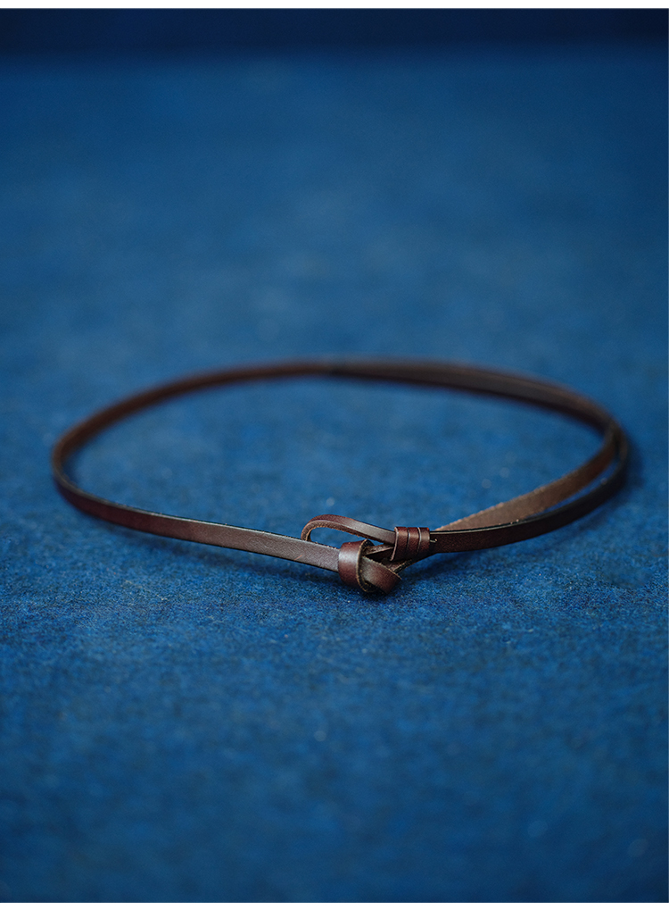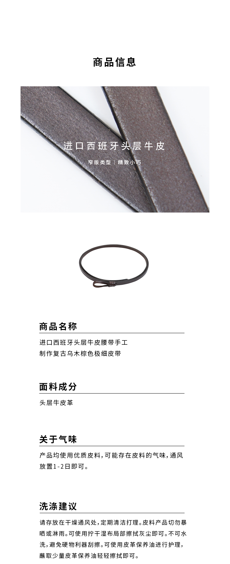 HIDEMI 进口西班牙头层牛皮腰带手工制作复古乌木棕色极细皮带
