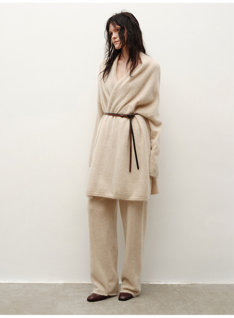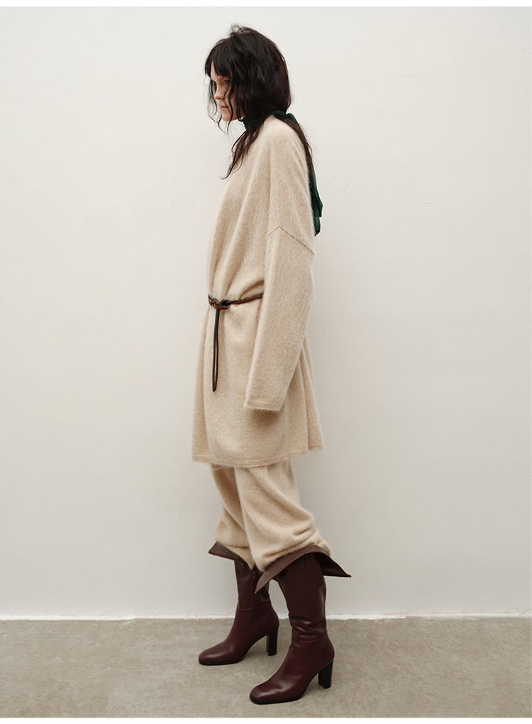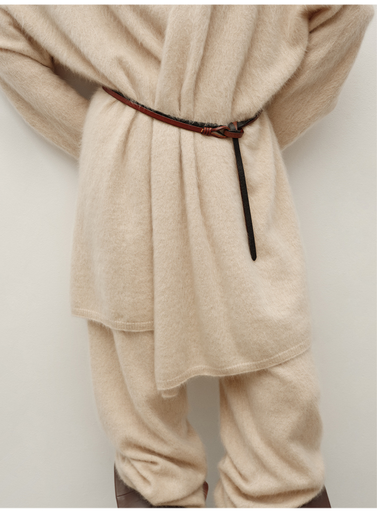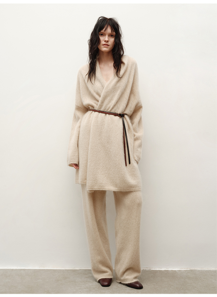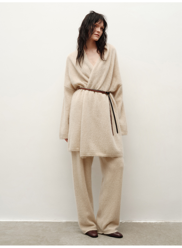 HIDEMI 美利奴超细羊毛立体交叉打结款V领修身毛衣 原白色/深摩卡/黑色