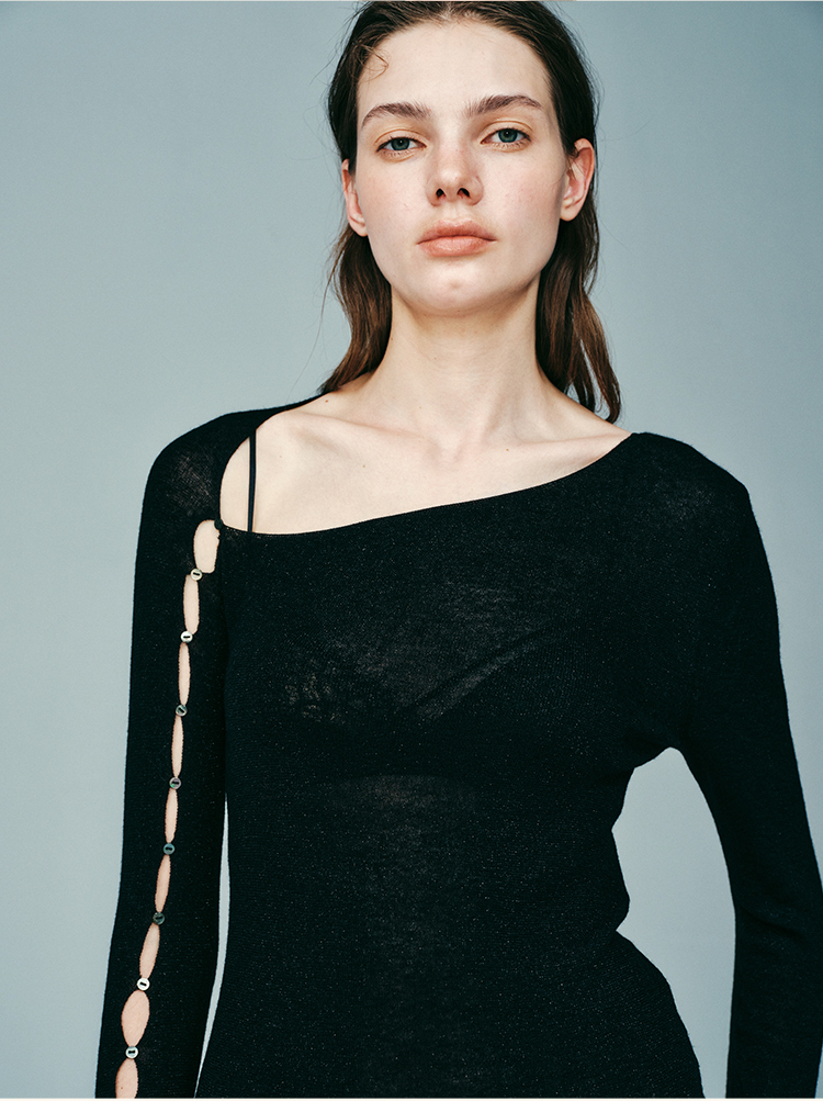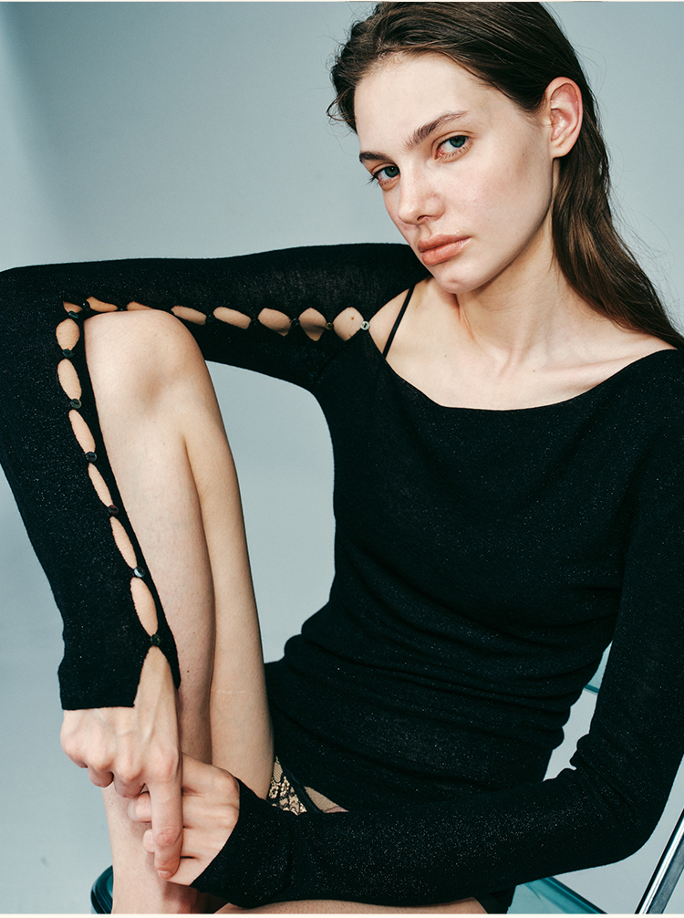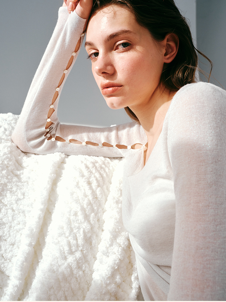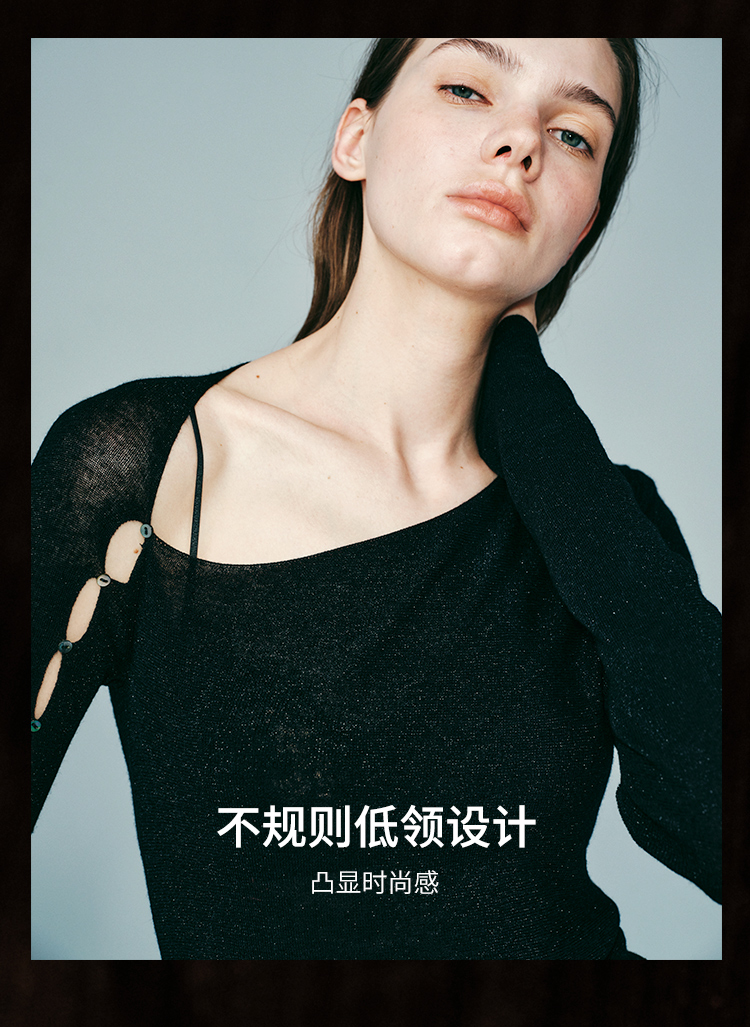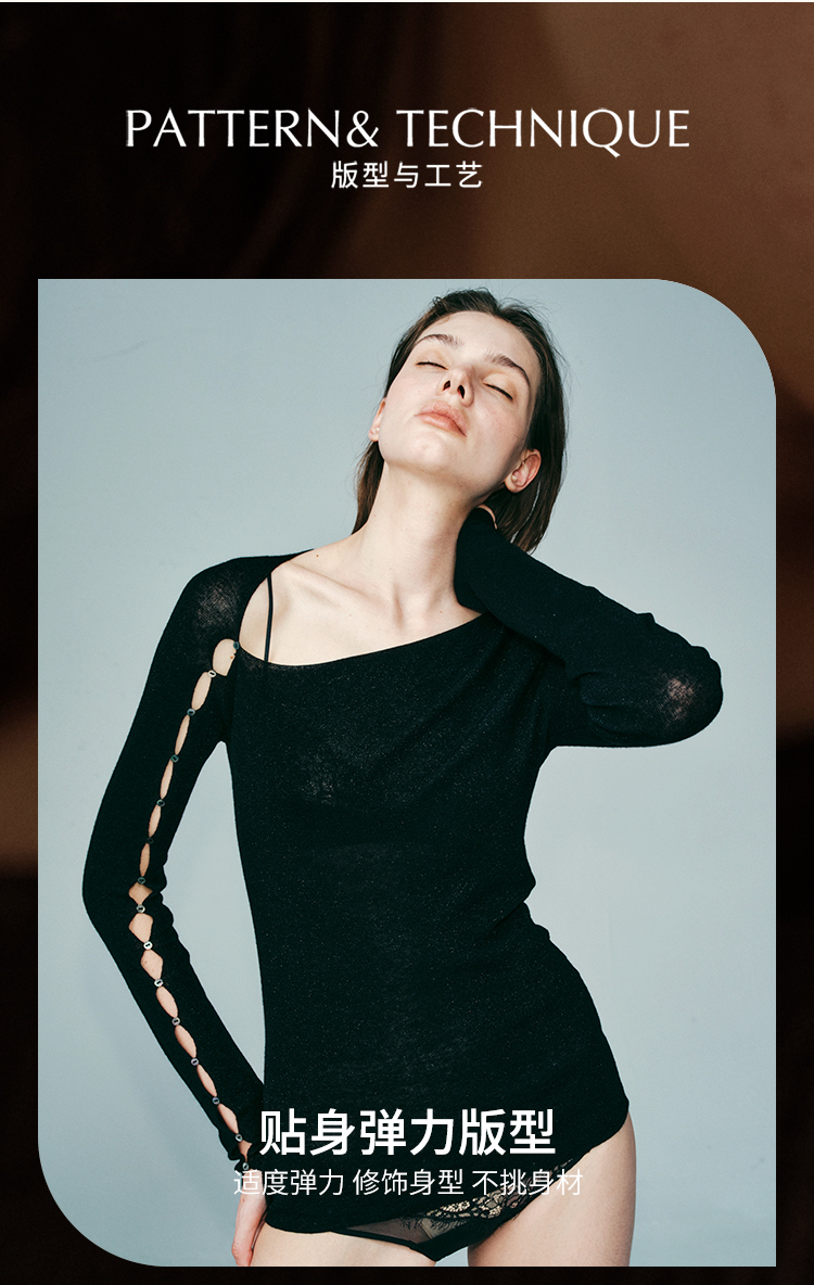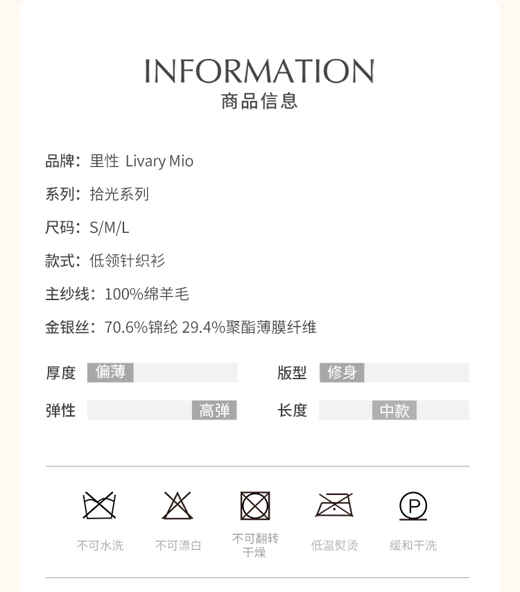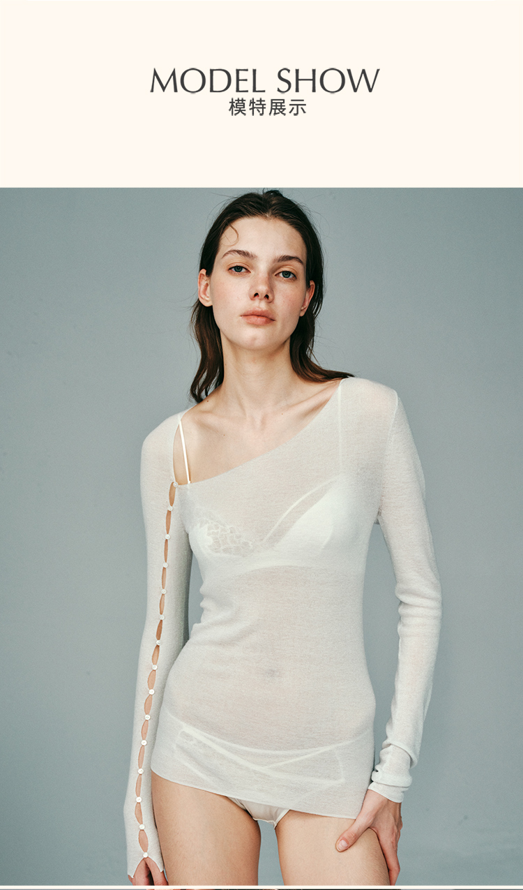 里性 LIVARY MIO 拾光 低领微透绵羊毛打底衫不对称袖口设计