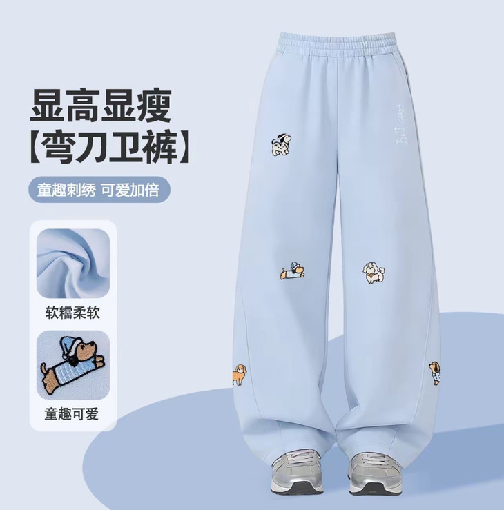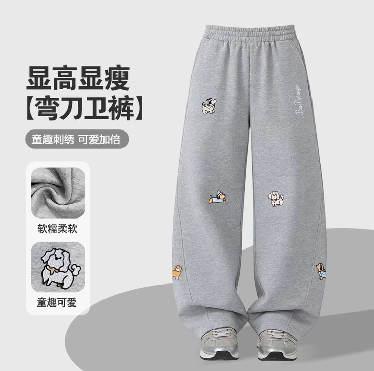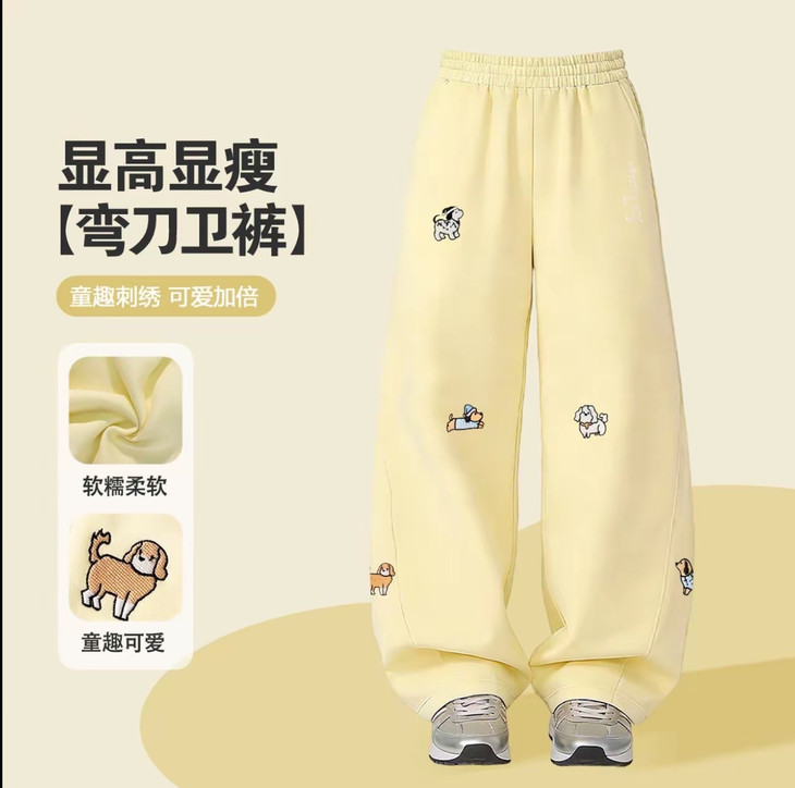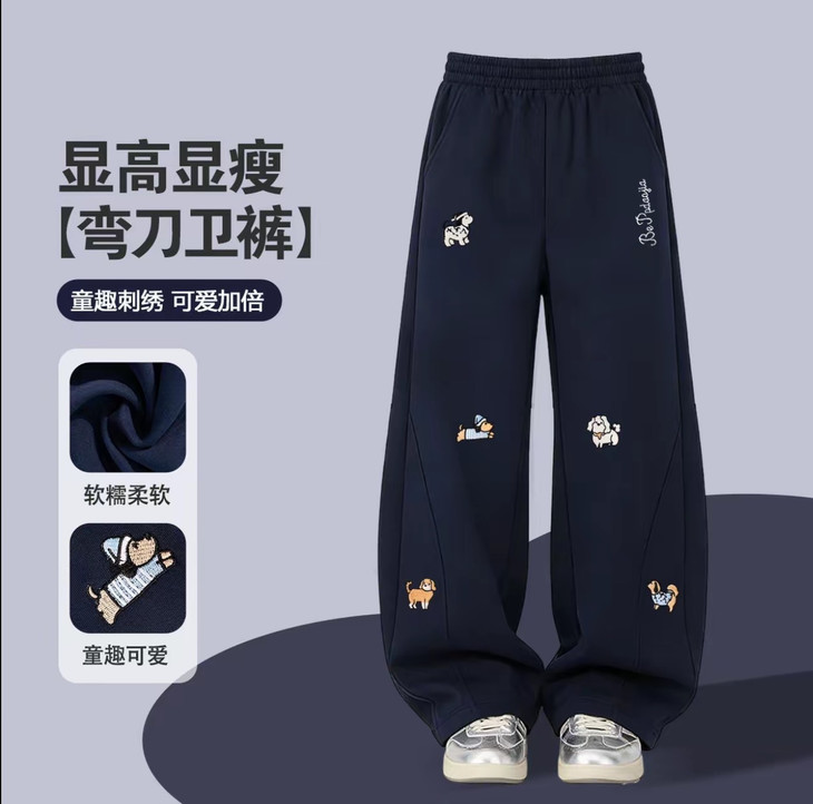 娃的春日神裤找到了🌿 萌趣小狗刺绣 + 宽松弯刀裤,上学、出游都适配,舒服又好看! 拒绝束缚感!这条卫裤让娃尽情撒欢🏃♂️ 松紧腰不勒肚子,立体刺绣不掉线,耐造又时髦~ 不挑身材不挑搭配,搭卫衣、外套都好看,春日穿搭一套搞定! 软 fufu 面料 + 可爱小狗贴布🐾 四色可选,给娃搭卫衣、牛仔外套都超绝,颜值与实用性双在线!