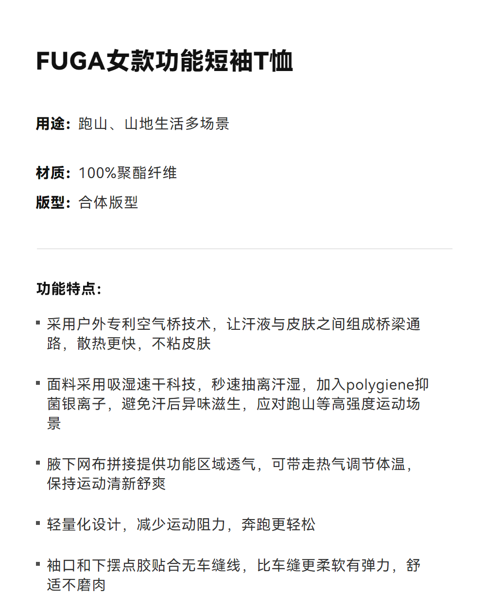 KAILAS凯乐石 FUGA女款功能短袖T恤 KG2617221