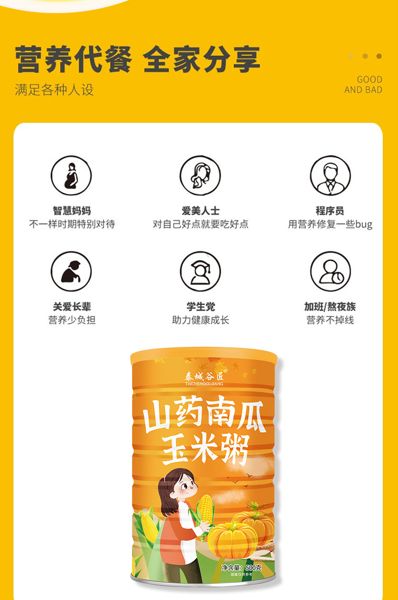 拍2发3【升级新配方,营养更翻倍】山药南瓜玉米粥 满满的 香醇美味营养代餐 全谷物配方更健康500g/罐健康特价清仓特价清仓