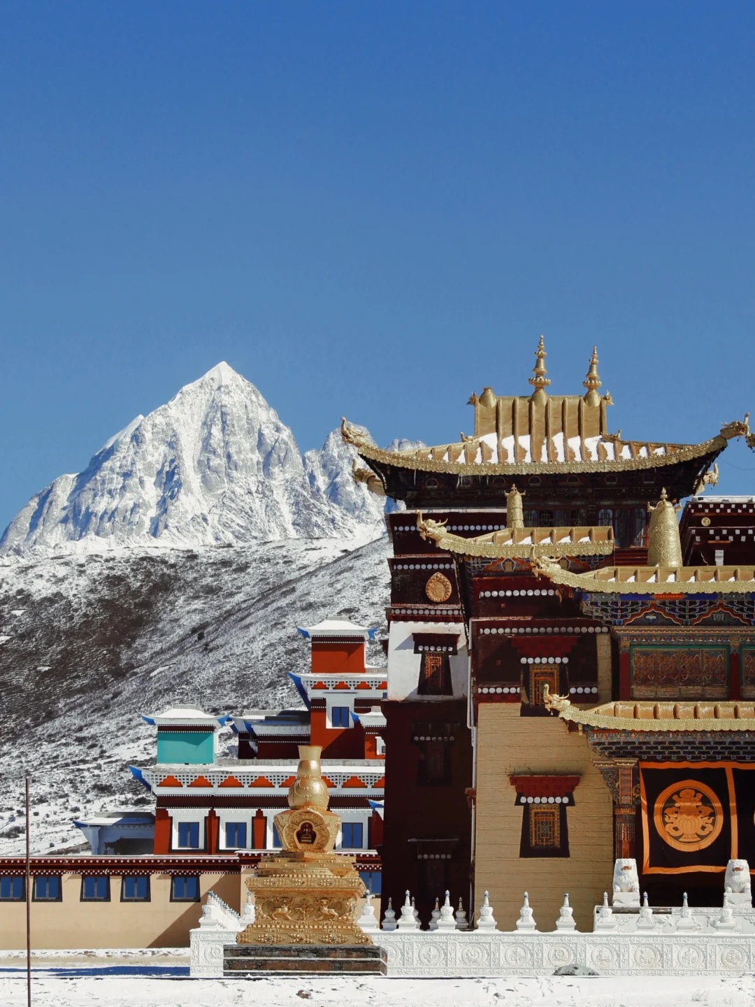 藏着 “草原铺地、雪山为背、寺庙为魂” 的极致组合