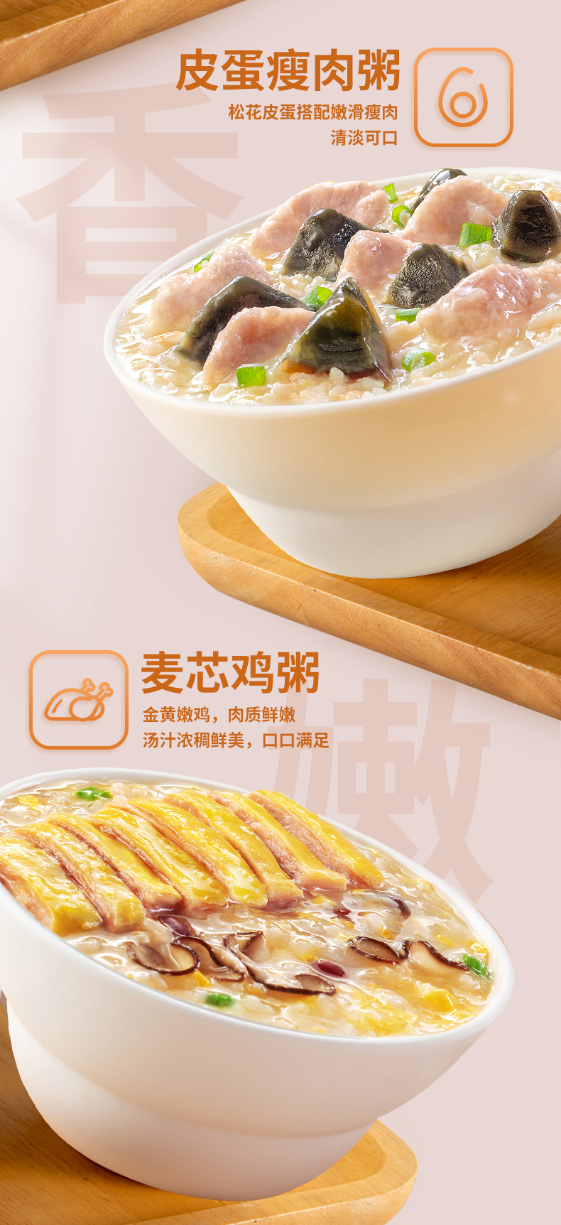海福盛 皮蛋瘦肉粥/排骨菌菇粥 小鲜粥系列