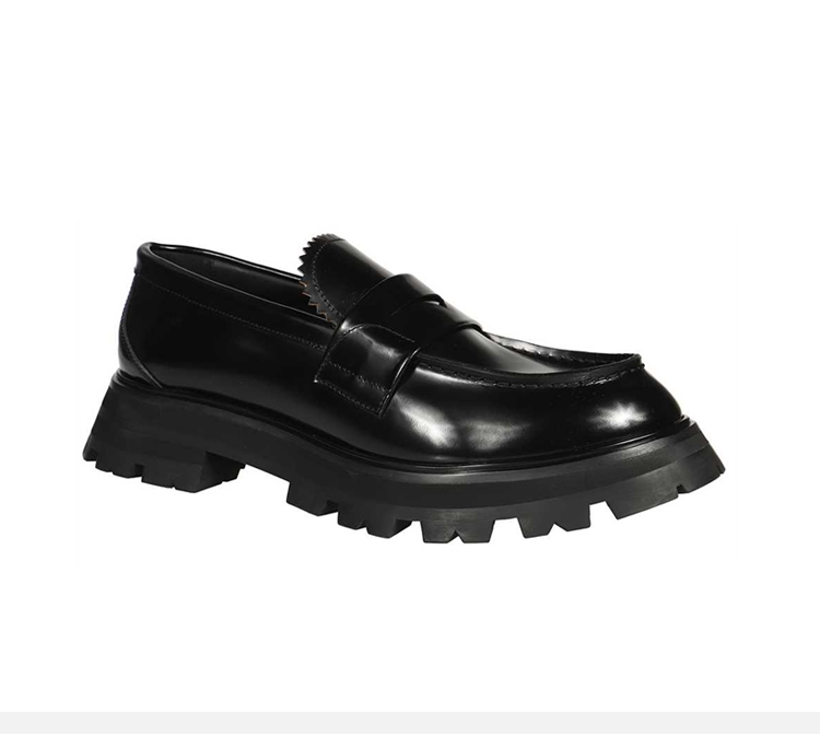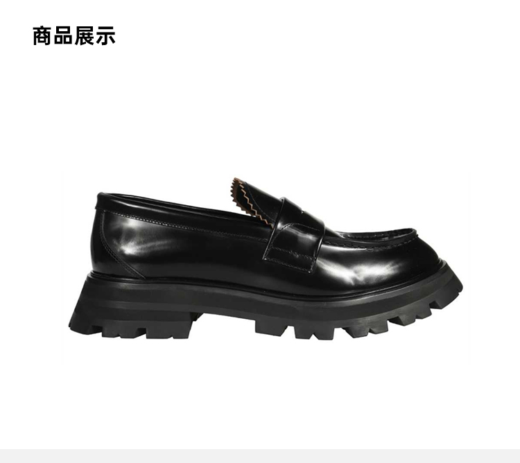 ALEXANDER MCQUEEN 亚历山大麦昆 女士小牛皮缝合细节乐福鞋 黑色 666328 WHZ80 1000