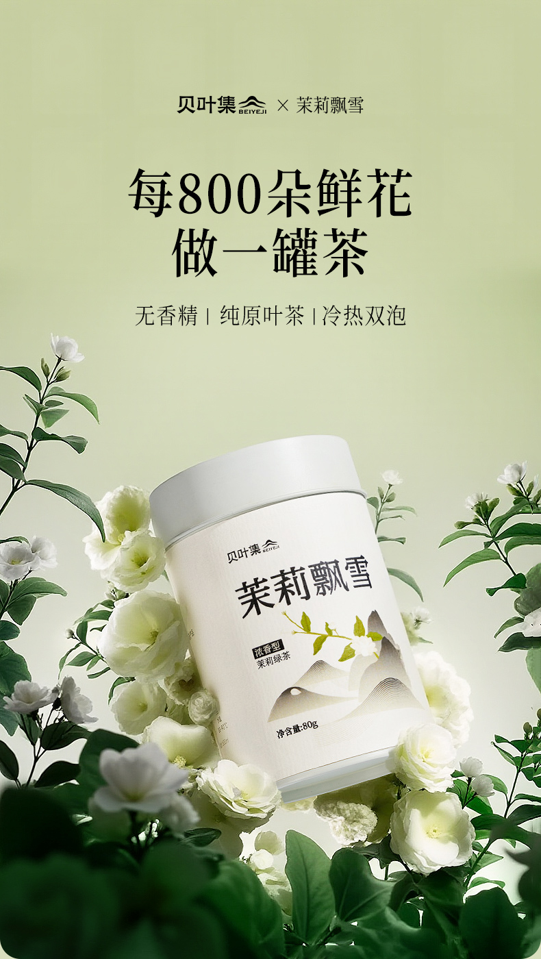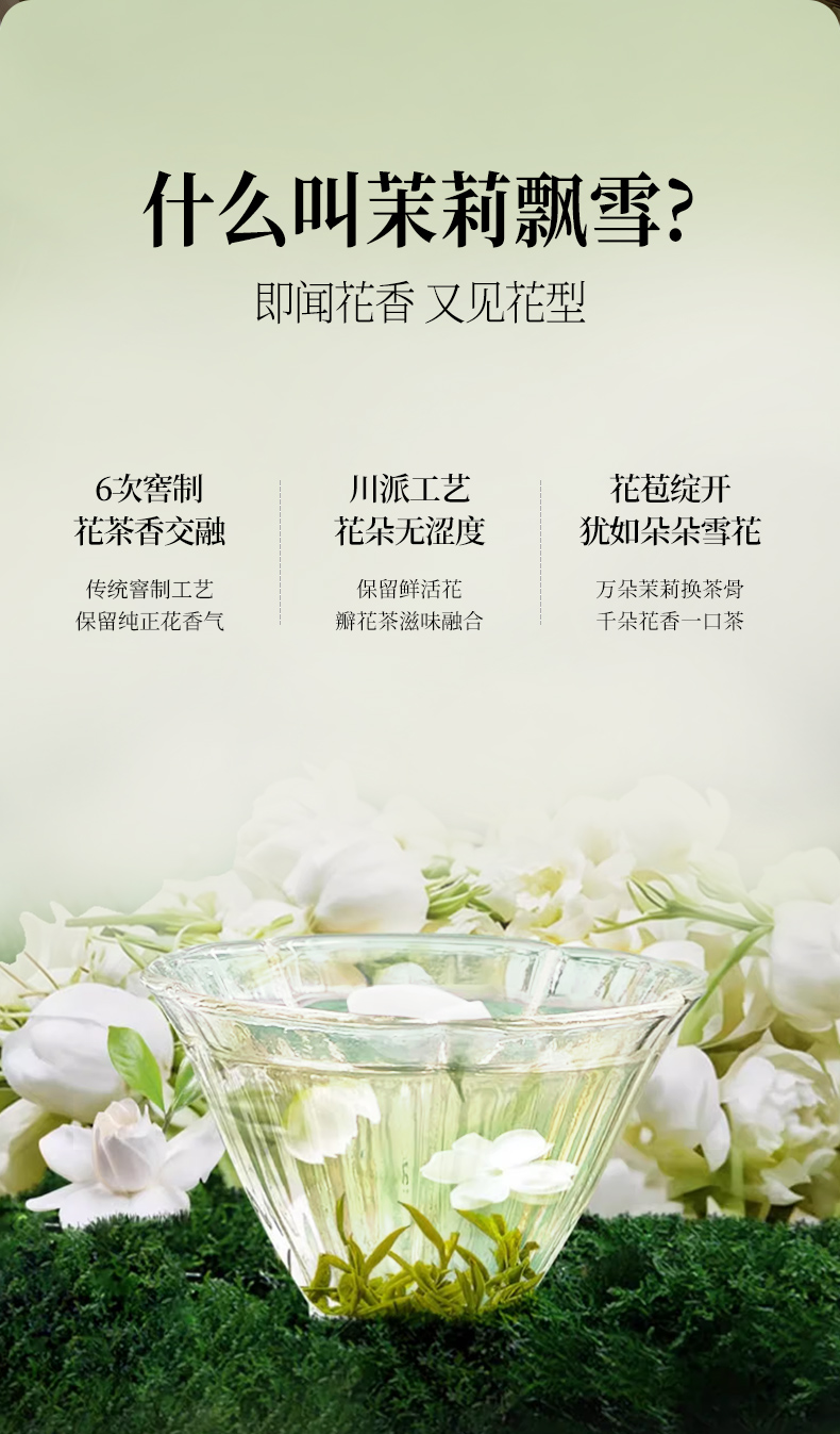 贝叶集茉莉花茶冷泡茶川派茉莉飘雪绿茶浓香型茶叶自己喝官方正品