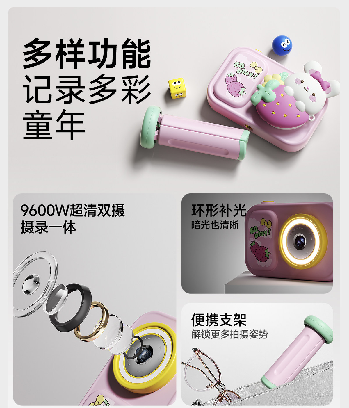 【用影像记录成长】卡尔贝比&乐乐鱼联名款儿童支架相机 小星环系列 9600W超清双摄 多样功能记录多彩童年