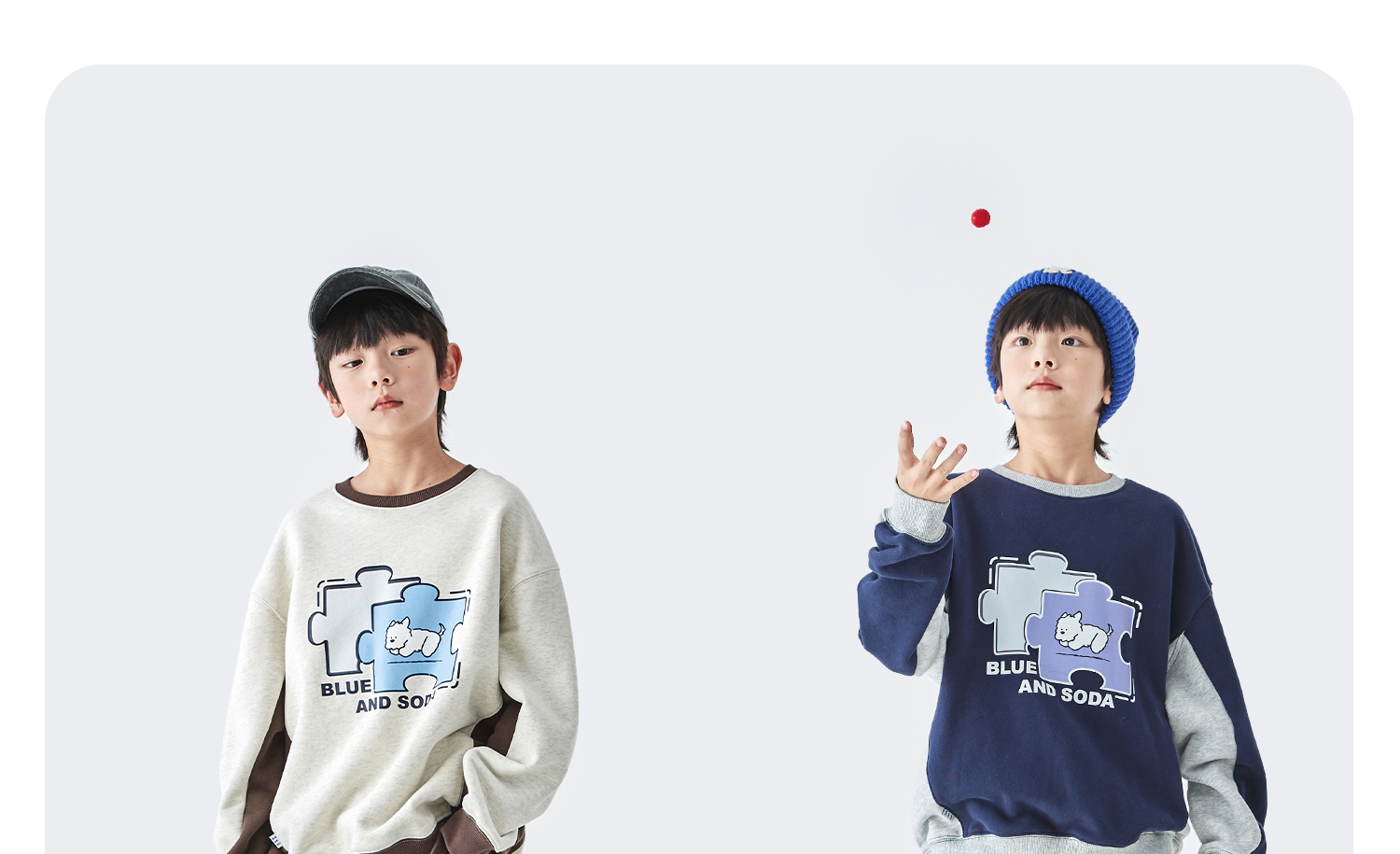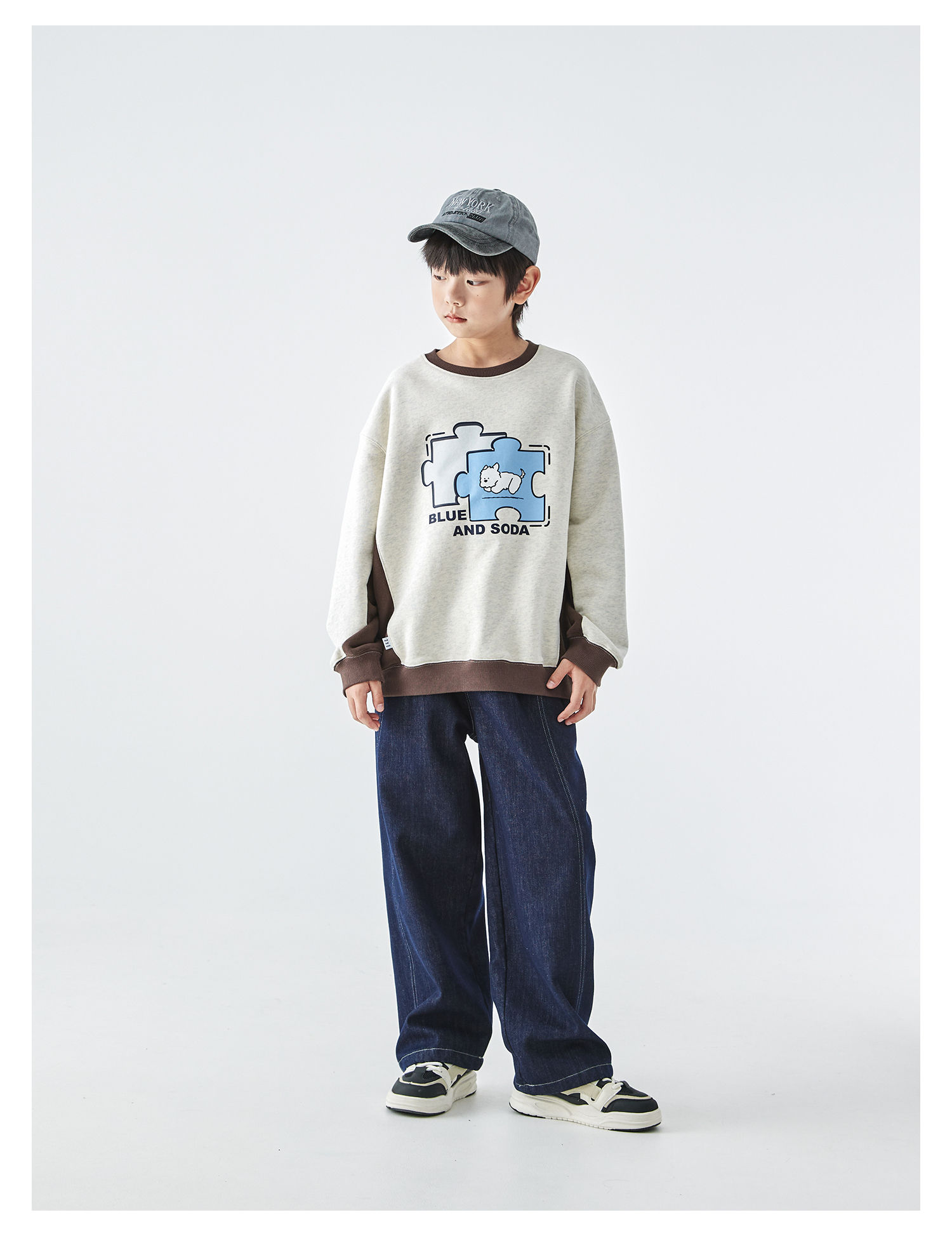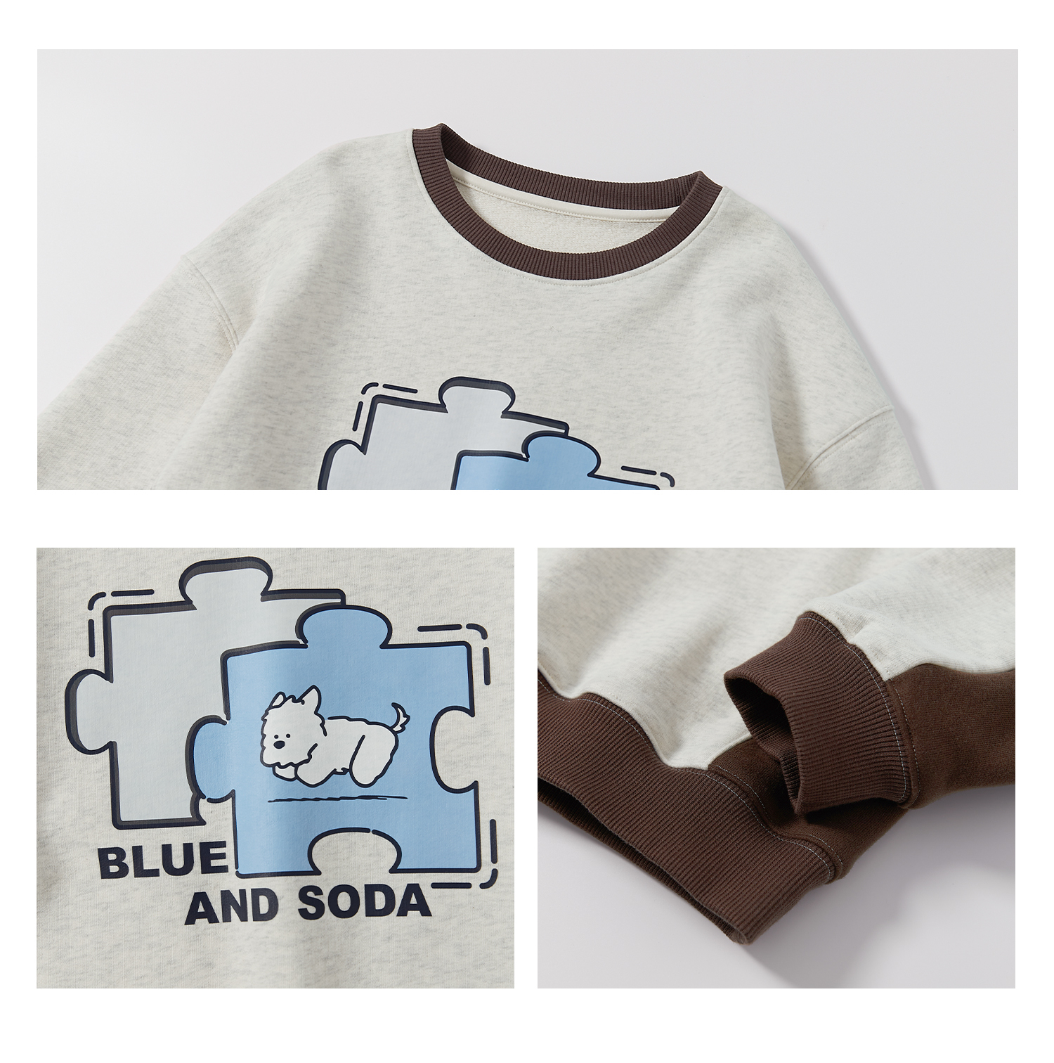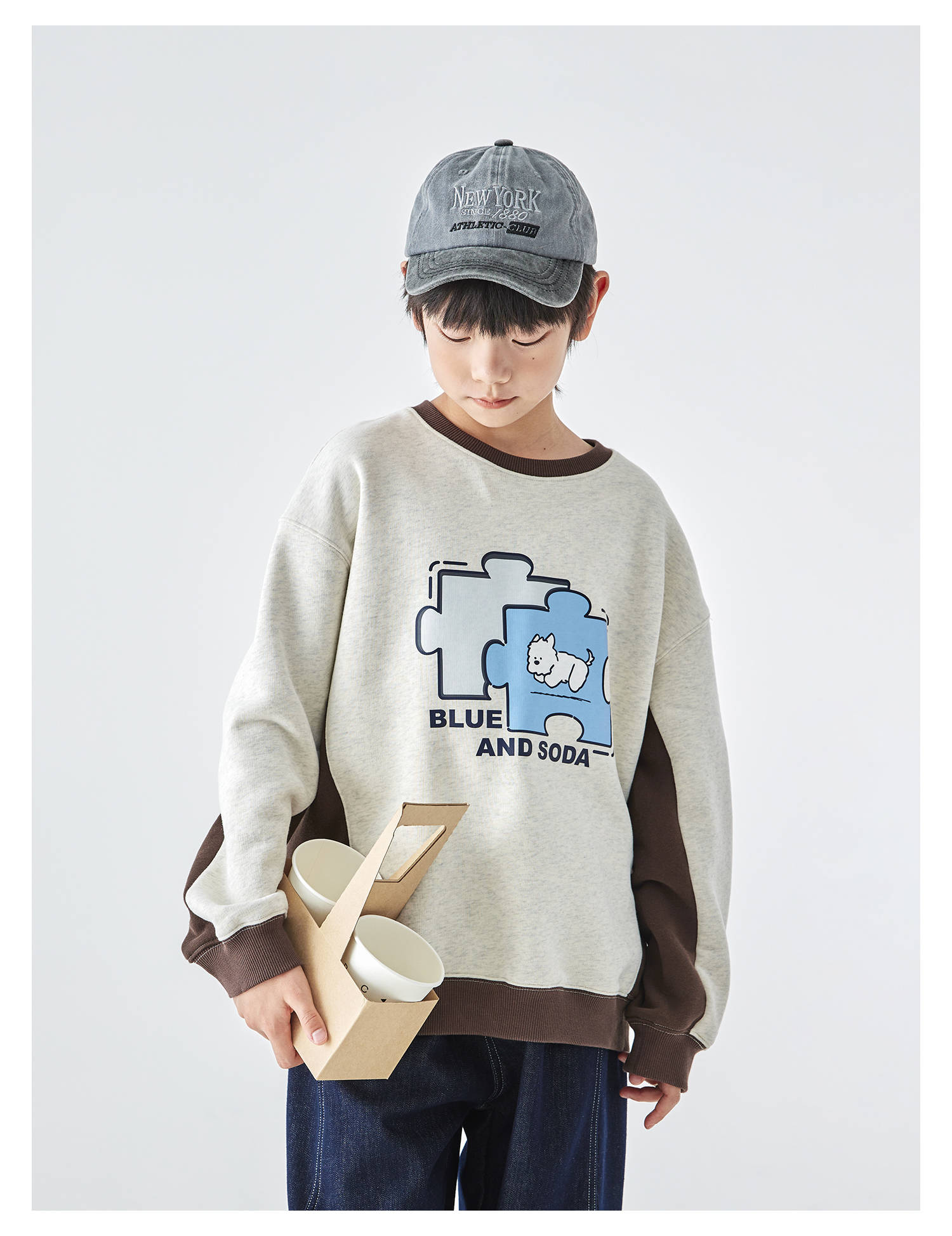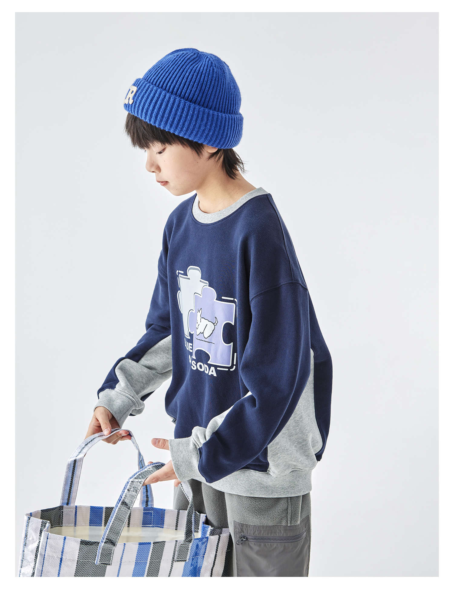 蓝汽水2025年冬季新款亲子中大男童插片拼接卫衣小狗趣味印花上衣