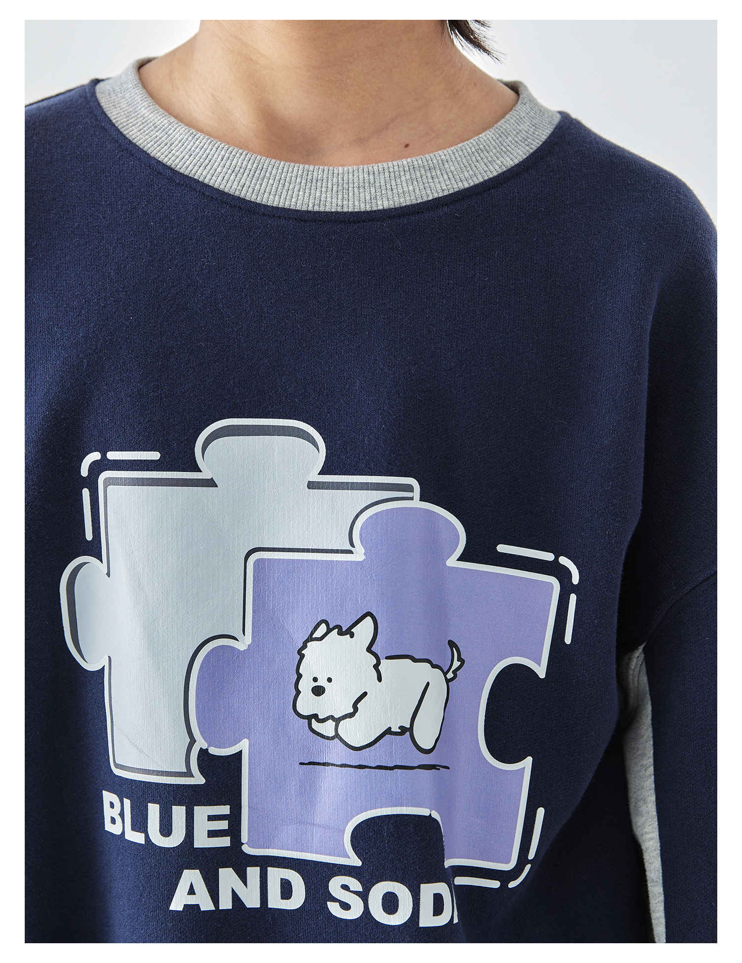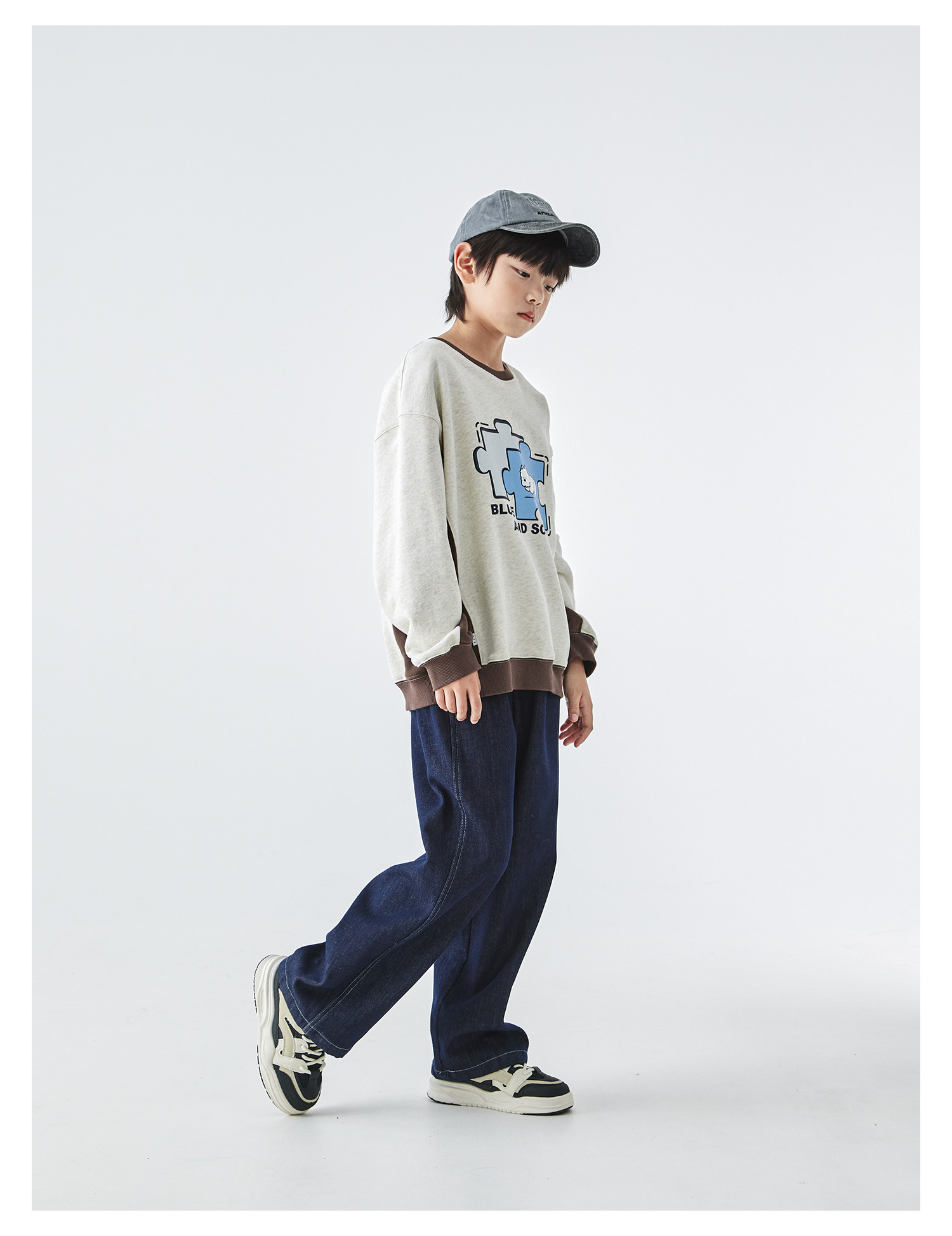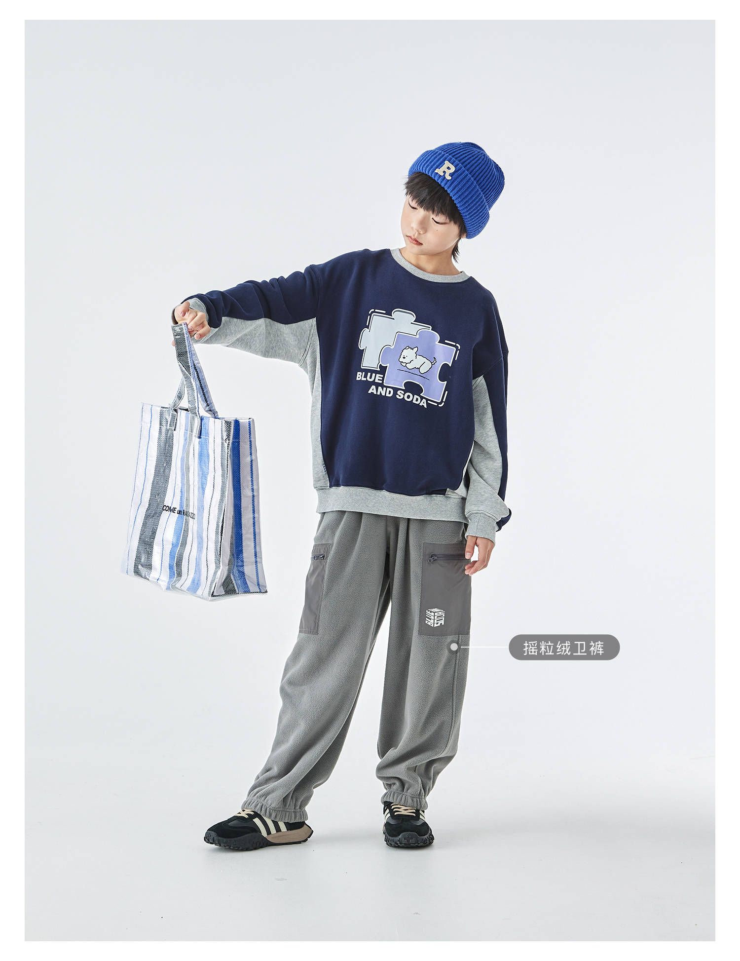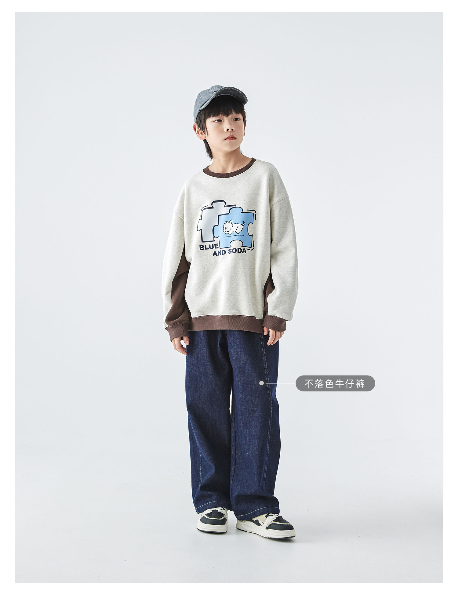 蓝汽水2025年冬季新款亲子中大男童插片拼接卫衣小狗趣味印花上衣