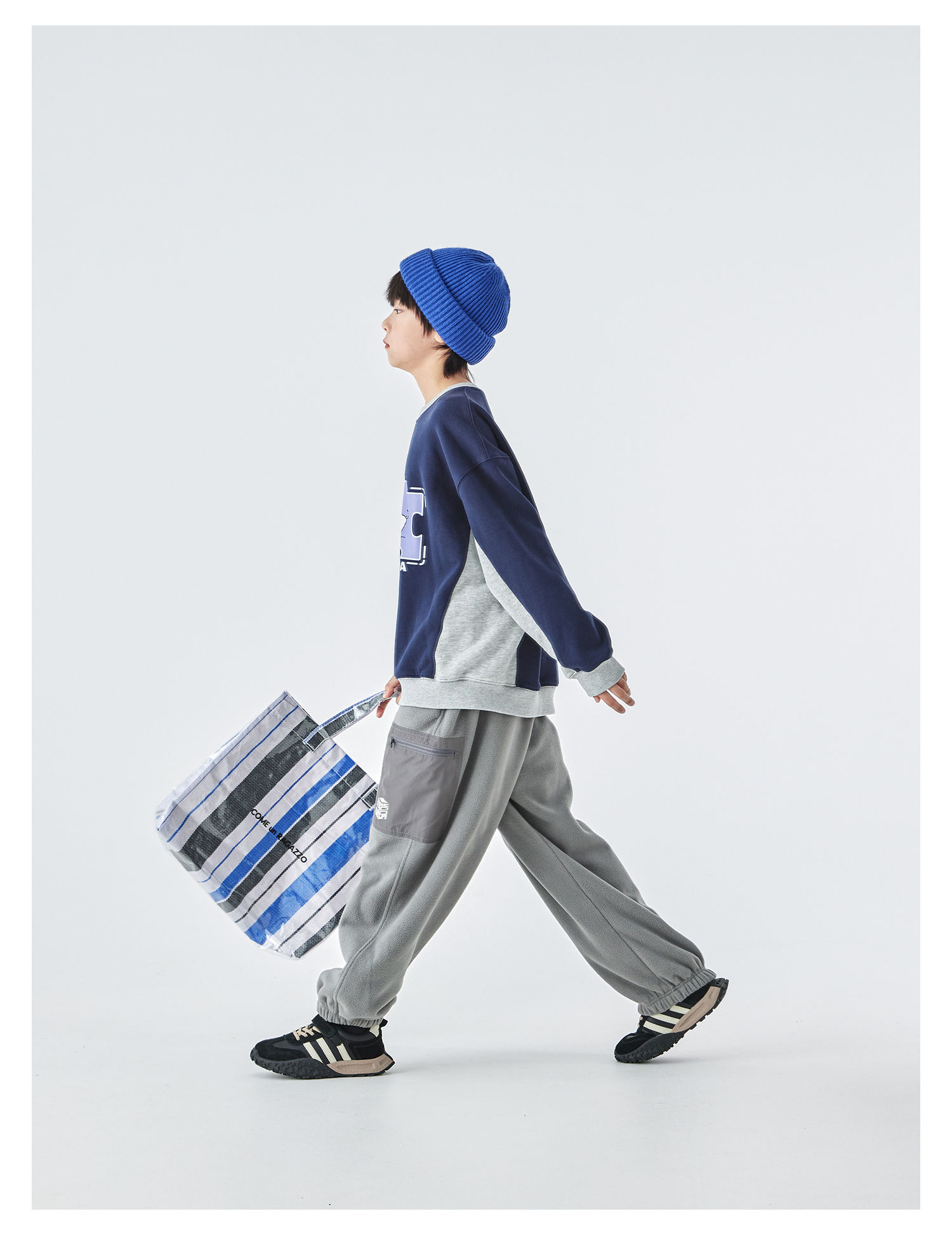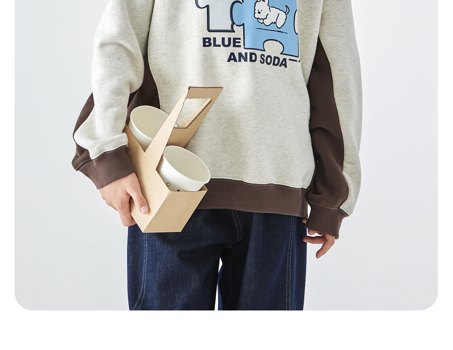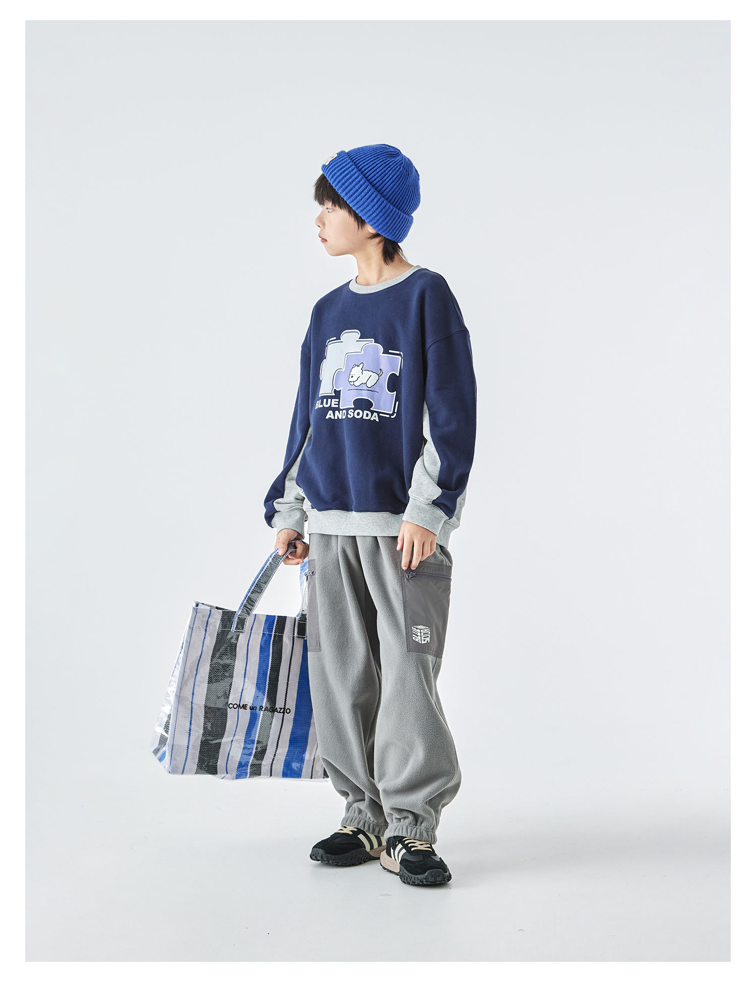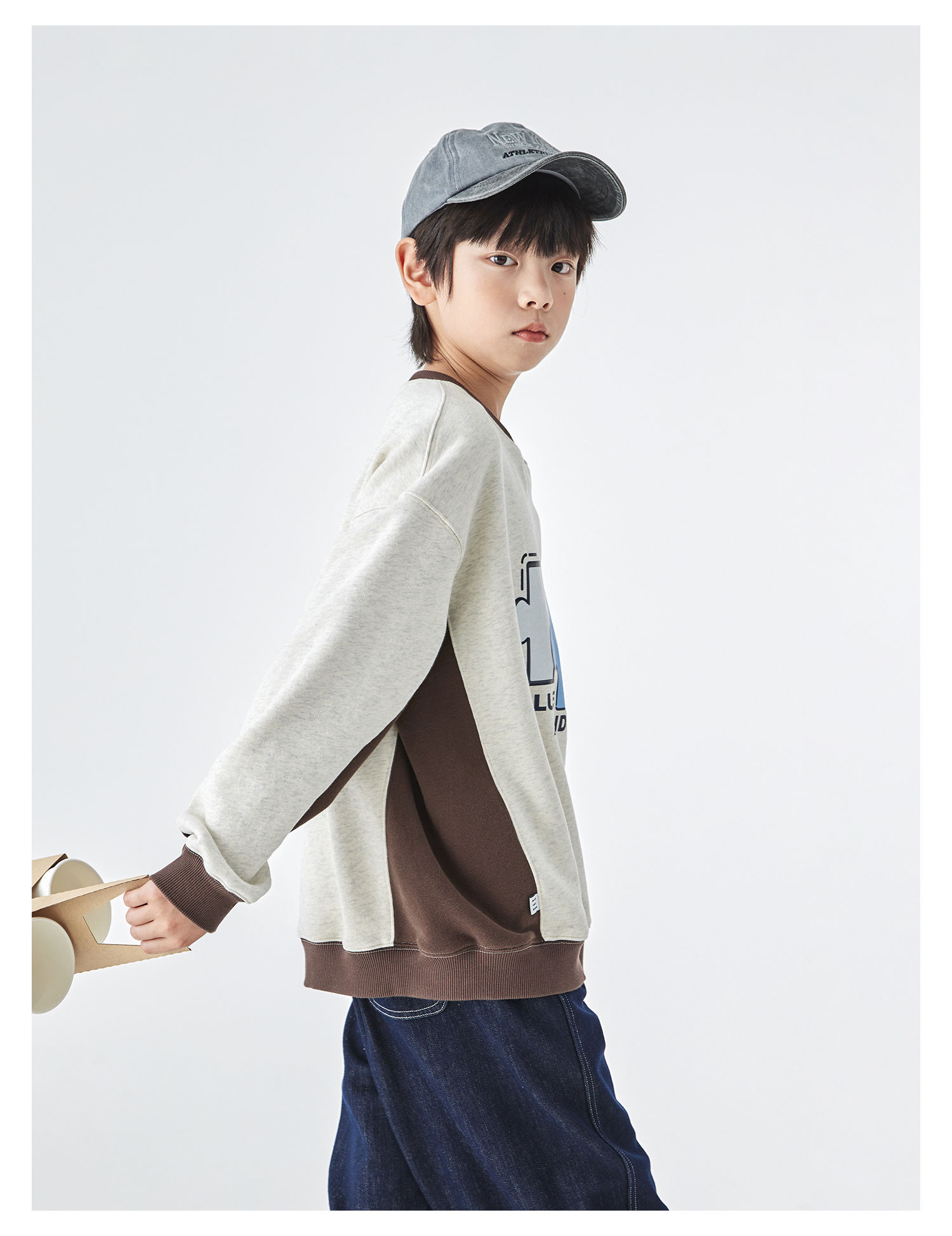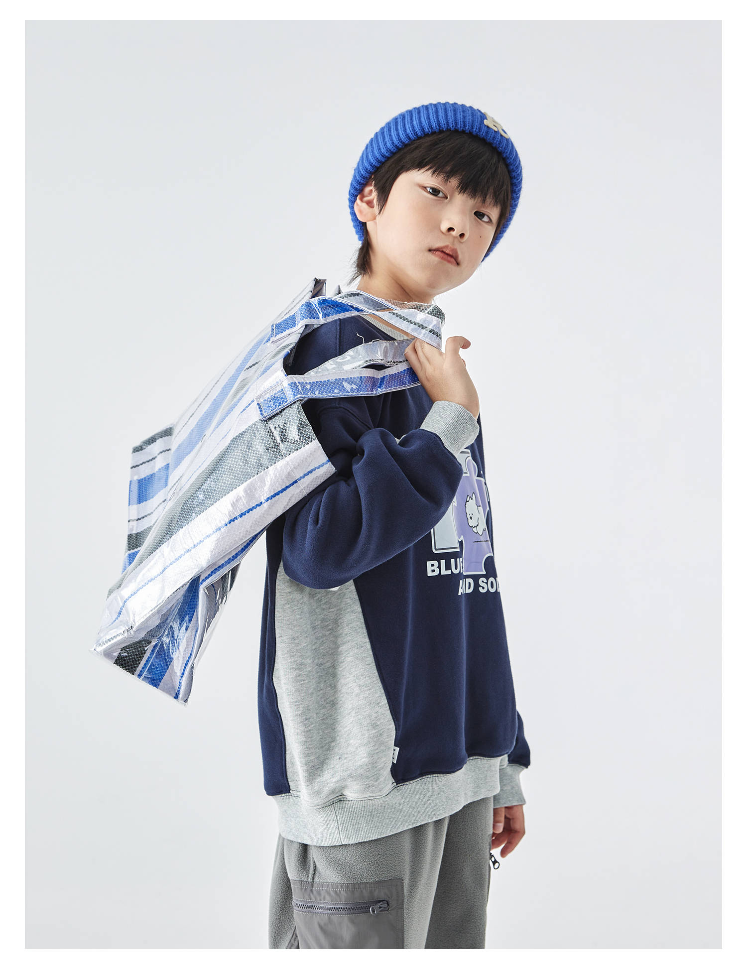蓝汽水2025年冬季新款亲子中大男童插片拼接卫衣小狗趣味印花上衣