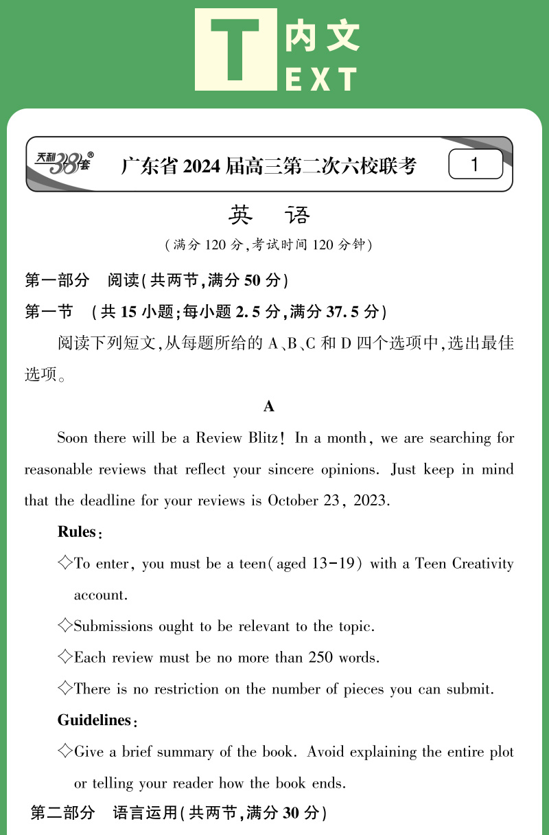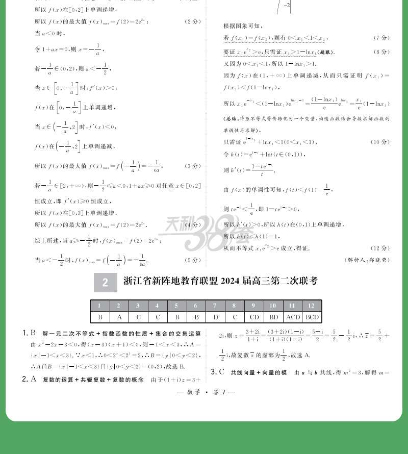 天利38套 2024新高考 模拟试题汇编 名校联考卷