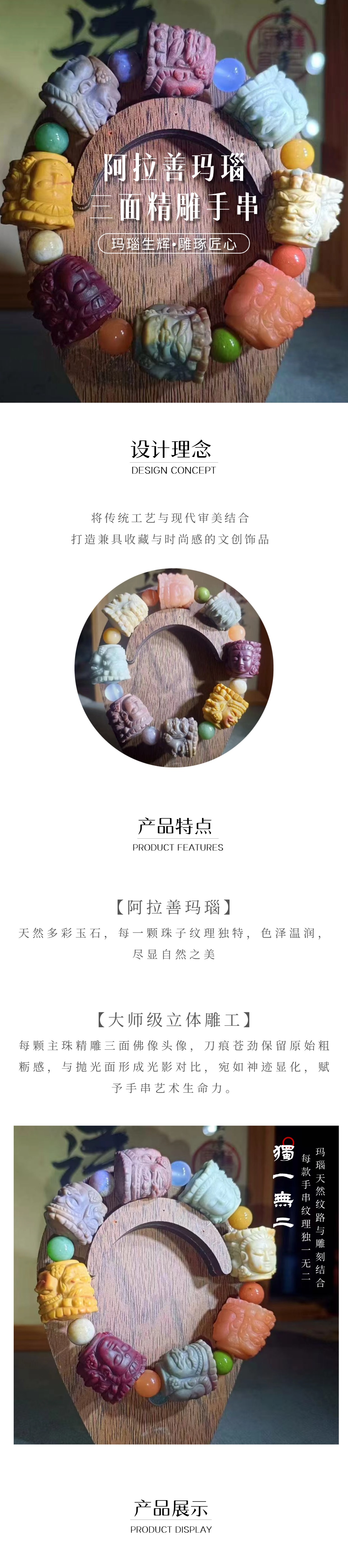 阿拉善玛瑙 · 三面精雕手串 文创礼品