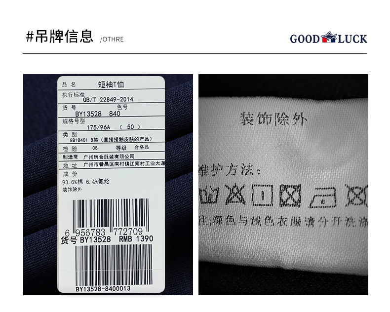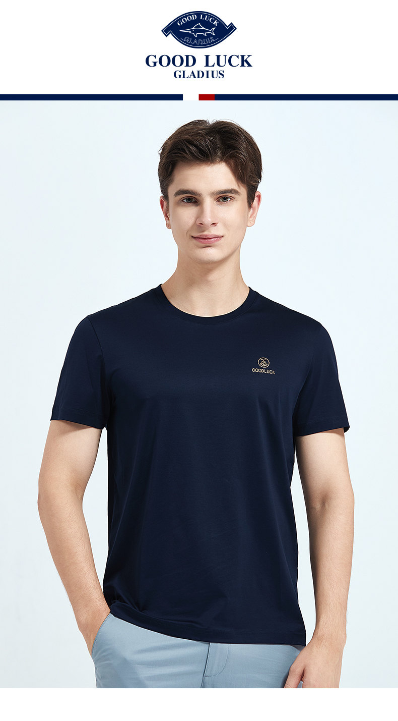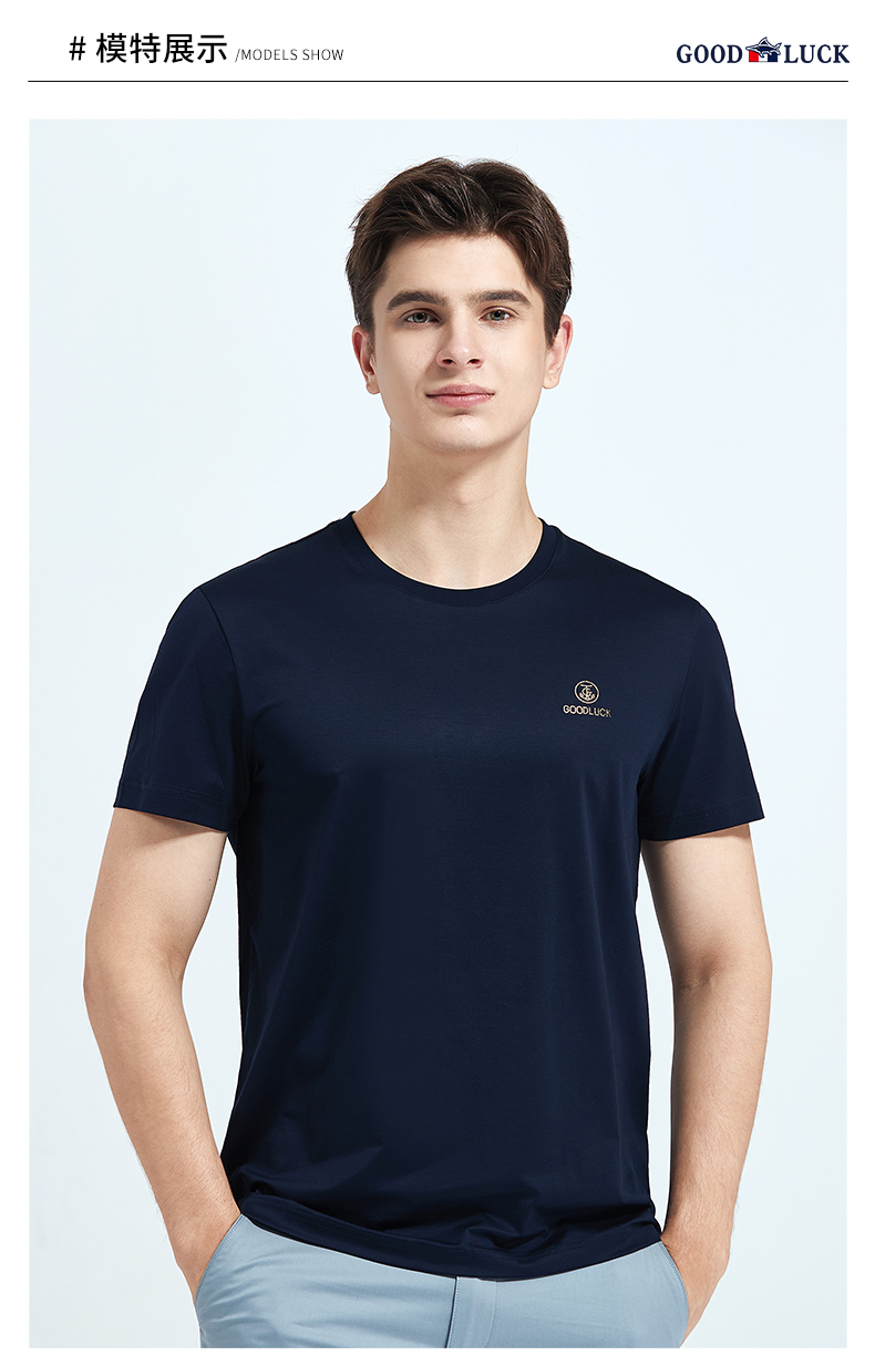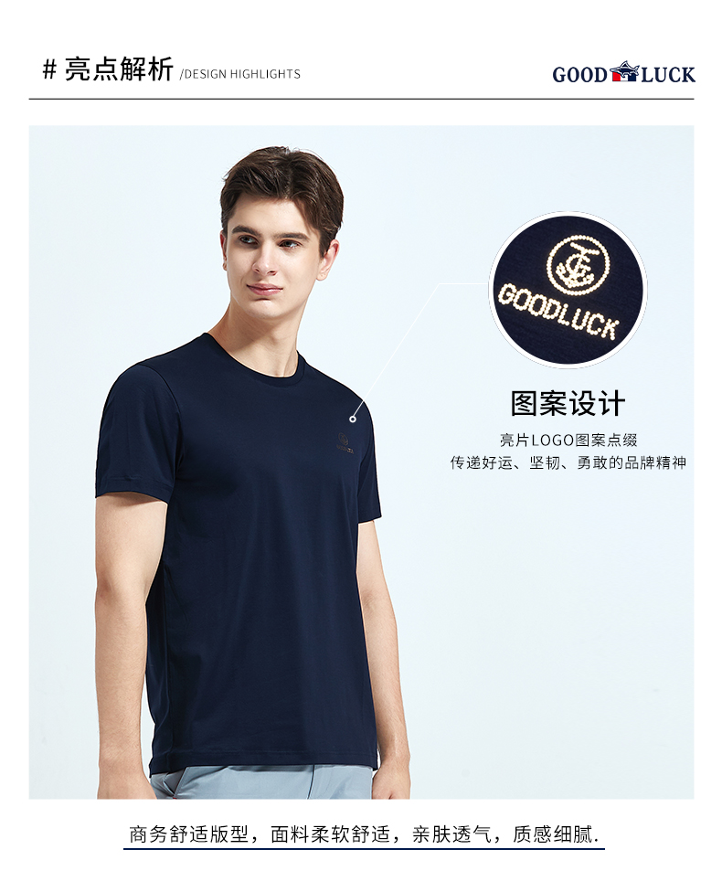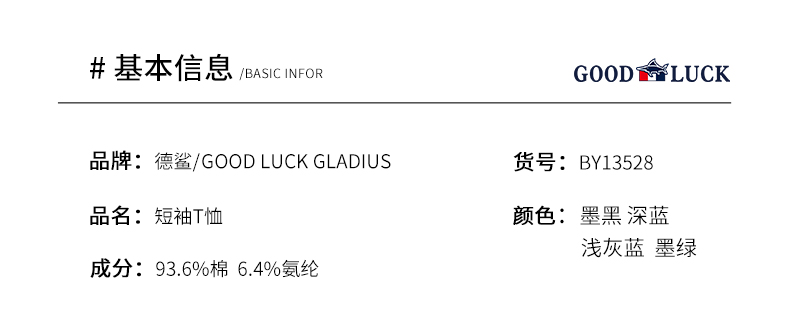 GOOD LUCK/德鲨弹力棉质清爽舒适四色可选圆领短袖T恤BY13528