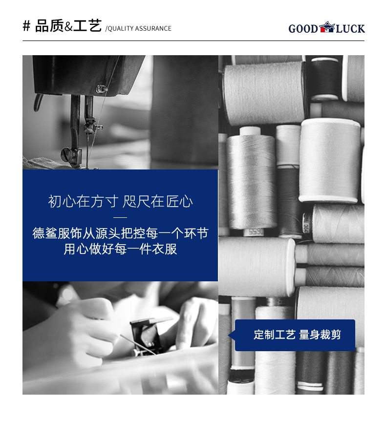 - GOOD LUCK GLADIUS品牌由“浙江德鲨服饰有限公司”引进中国市场,经过多年发展,凭借完善的终端形象,规范化的销售管理,迅速赢得消费者的认可,引领国内消费流行,是成功人士首选男装品牌。