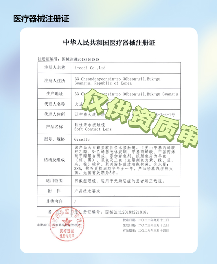 工厂材质:韩国icodi工厂 含硅水凝胶