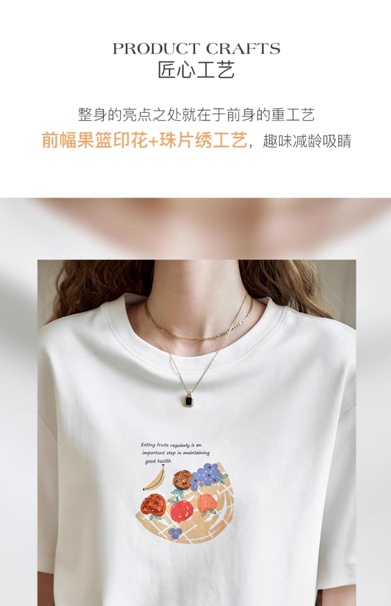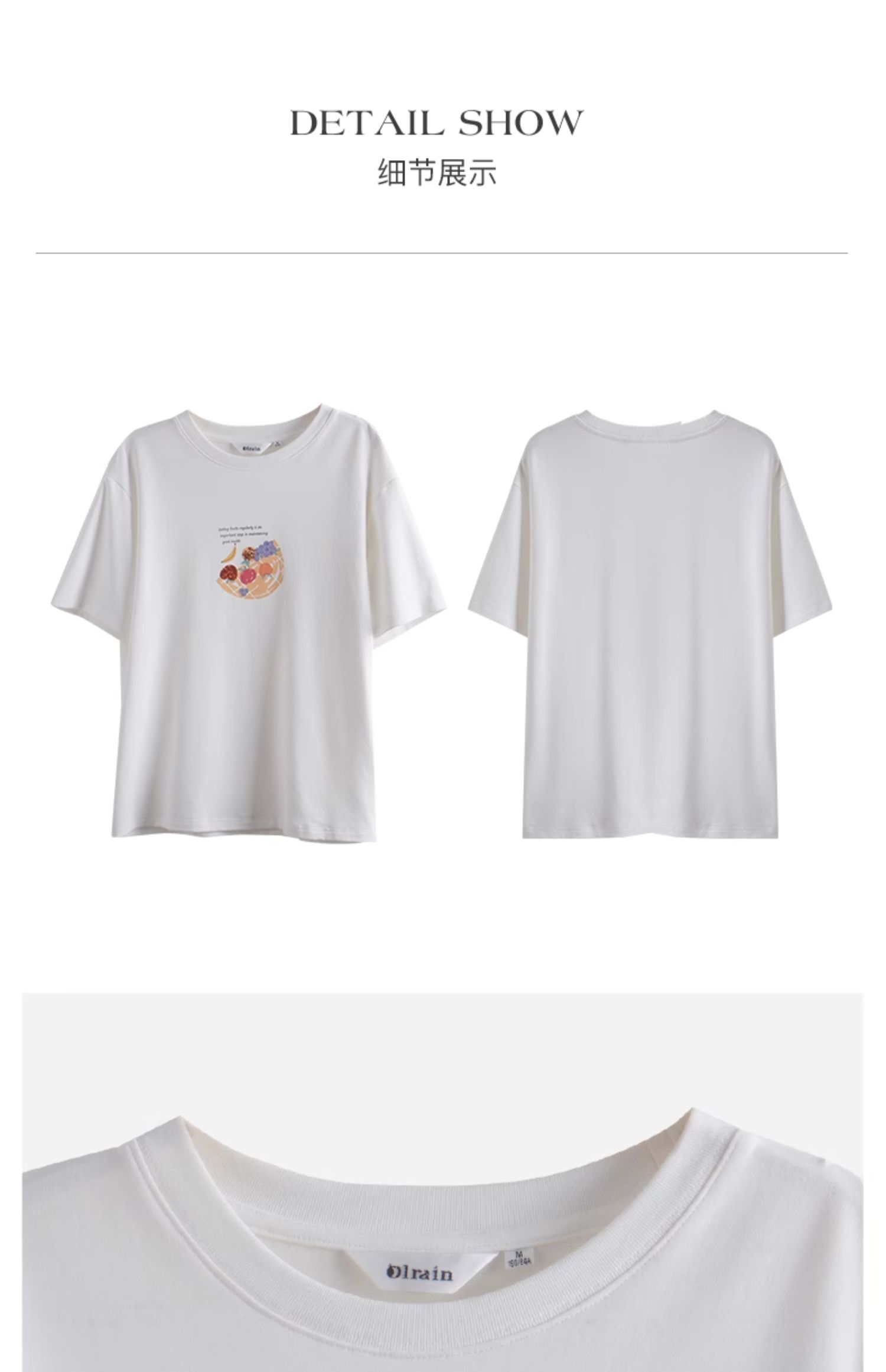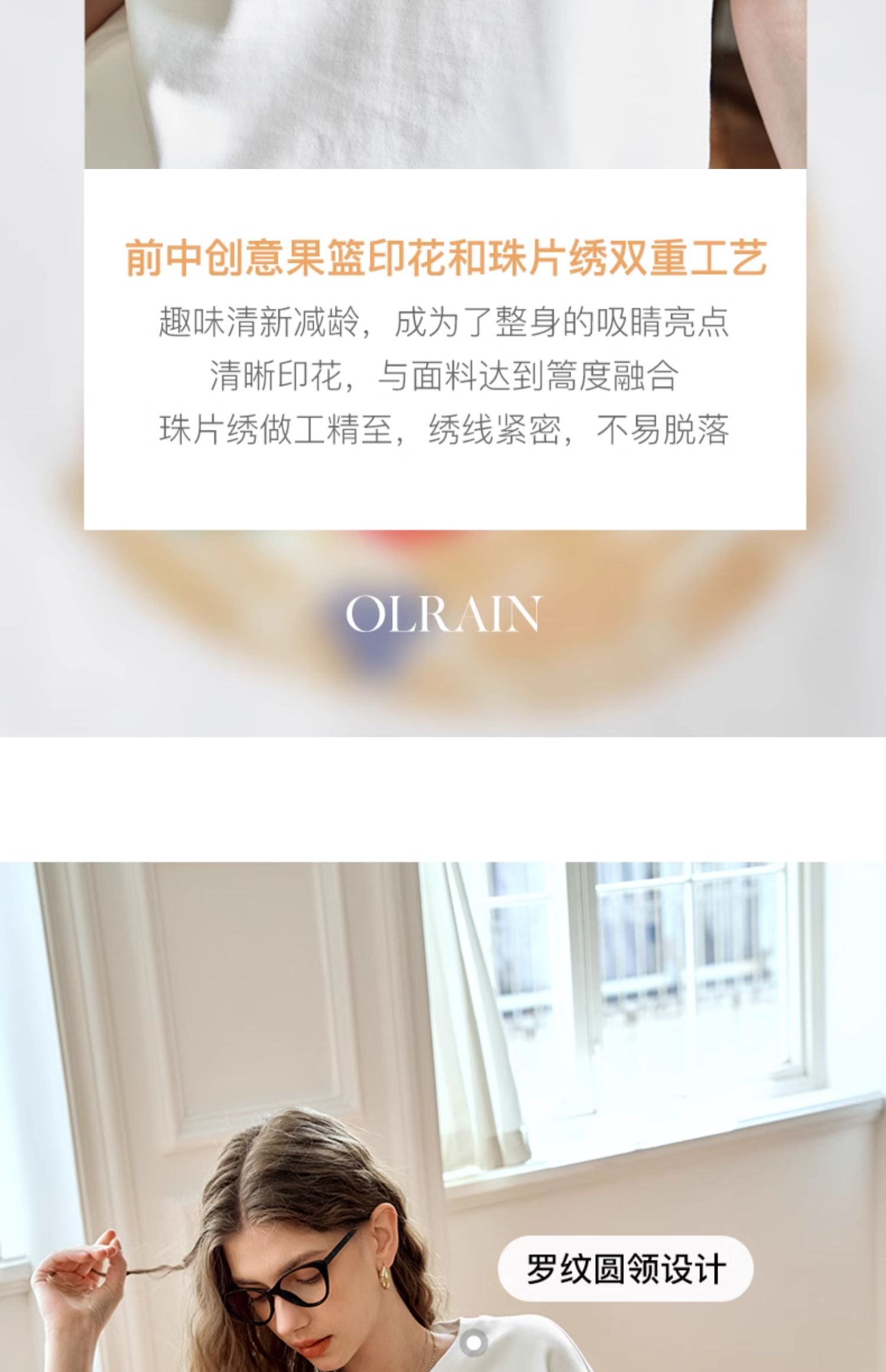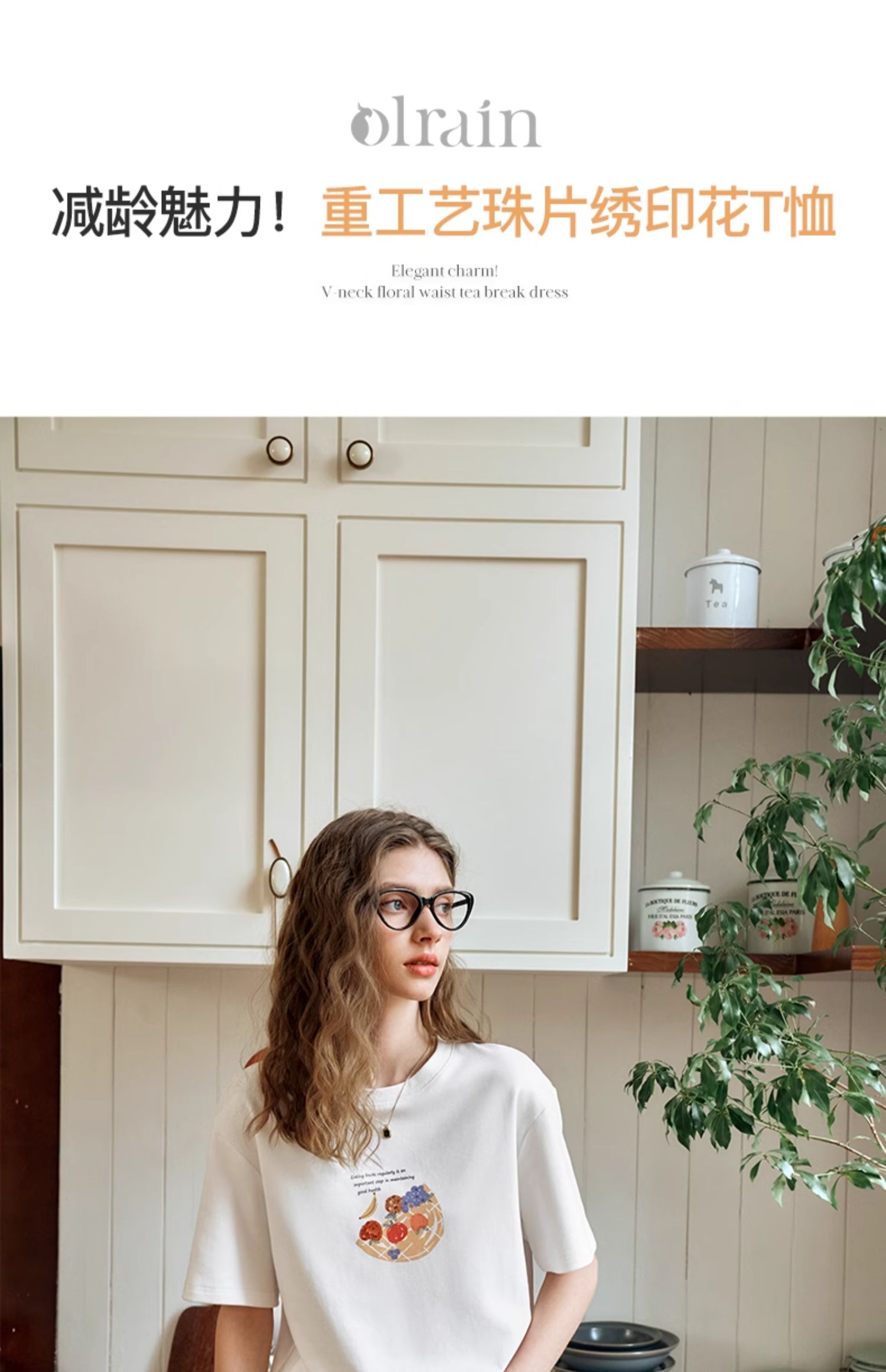 OLrain欧芮儿白色短袖T恤女夏季2024新款时尚通勤珠片绣印花上衣