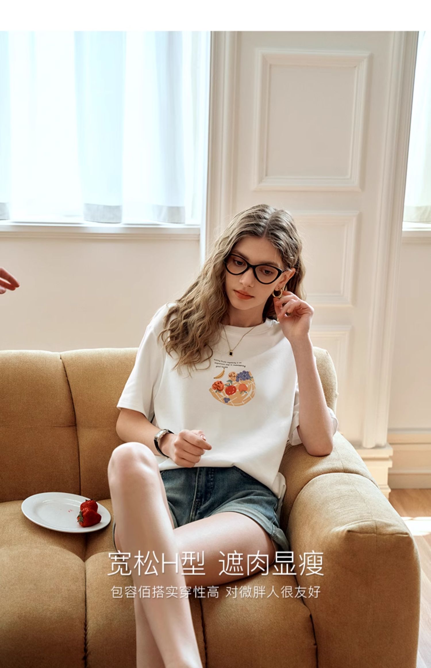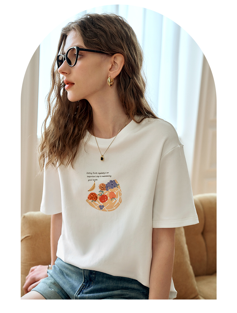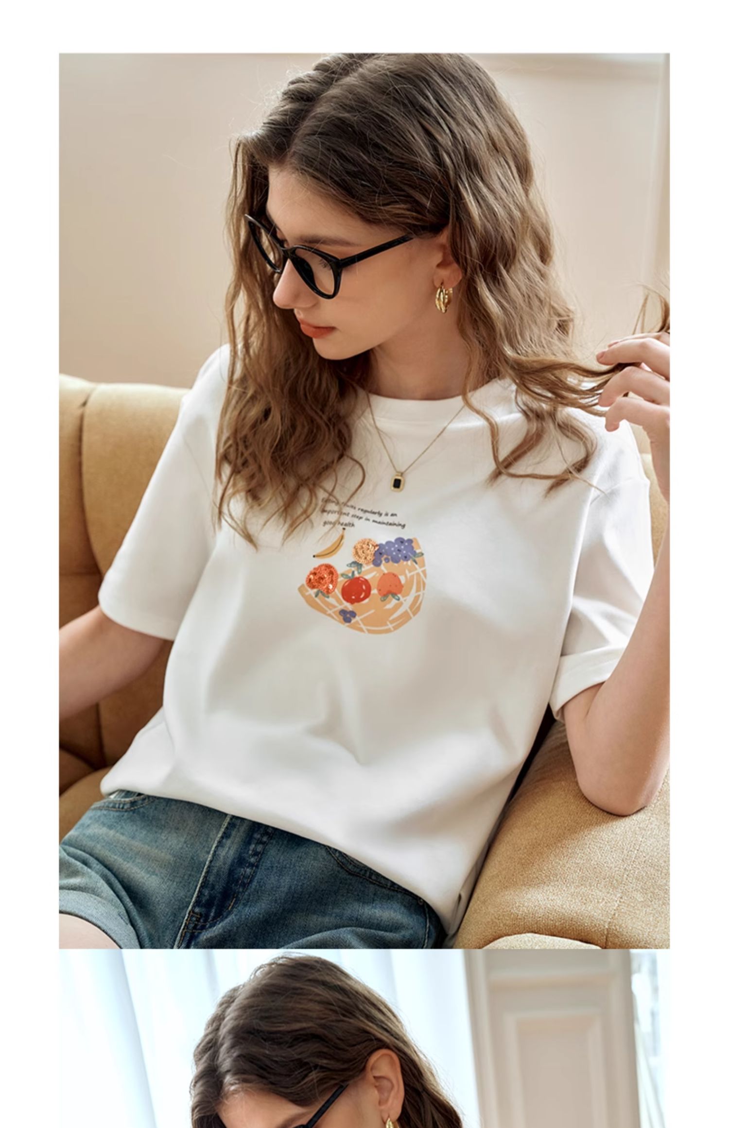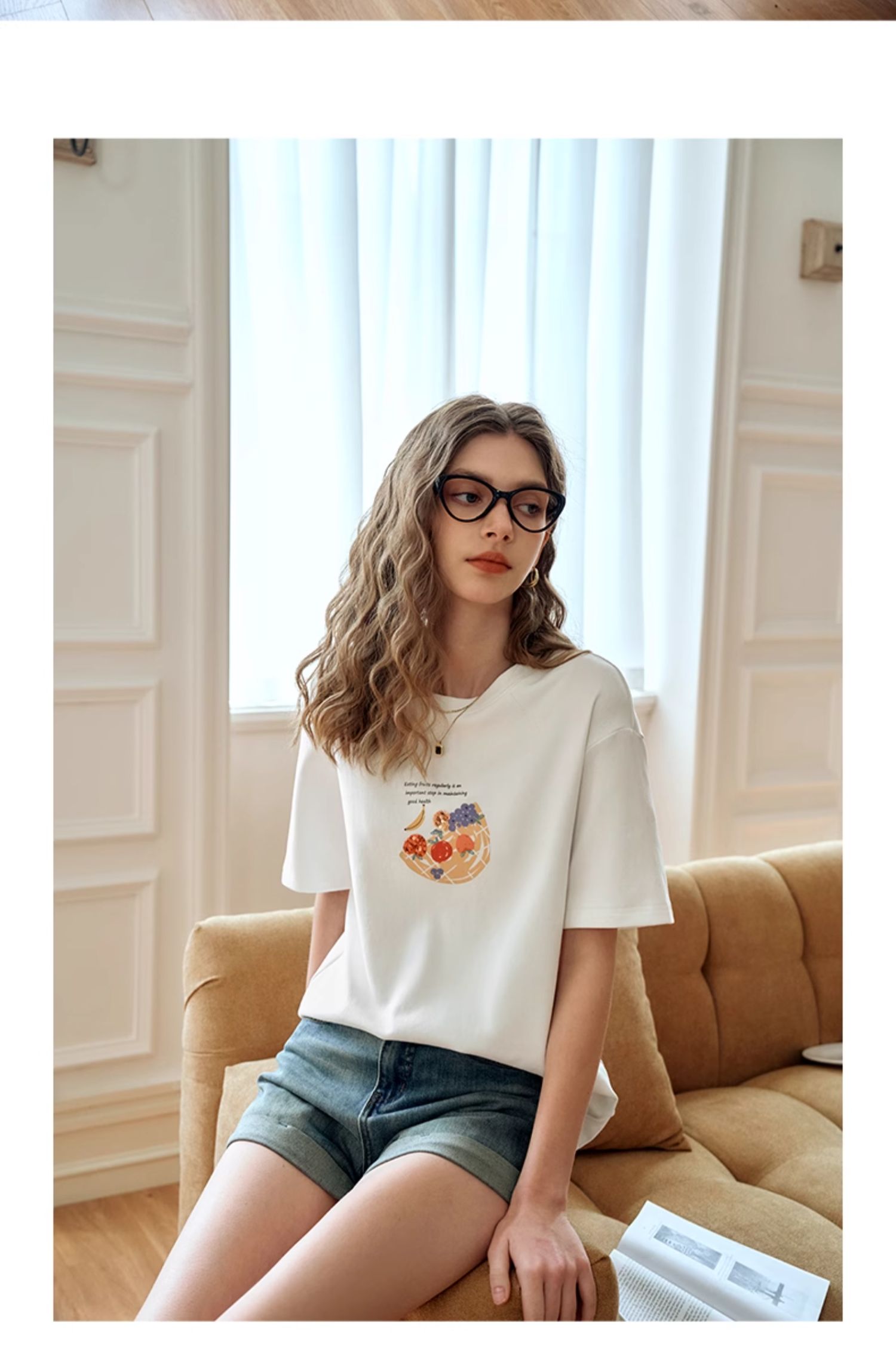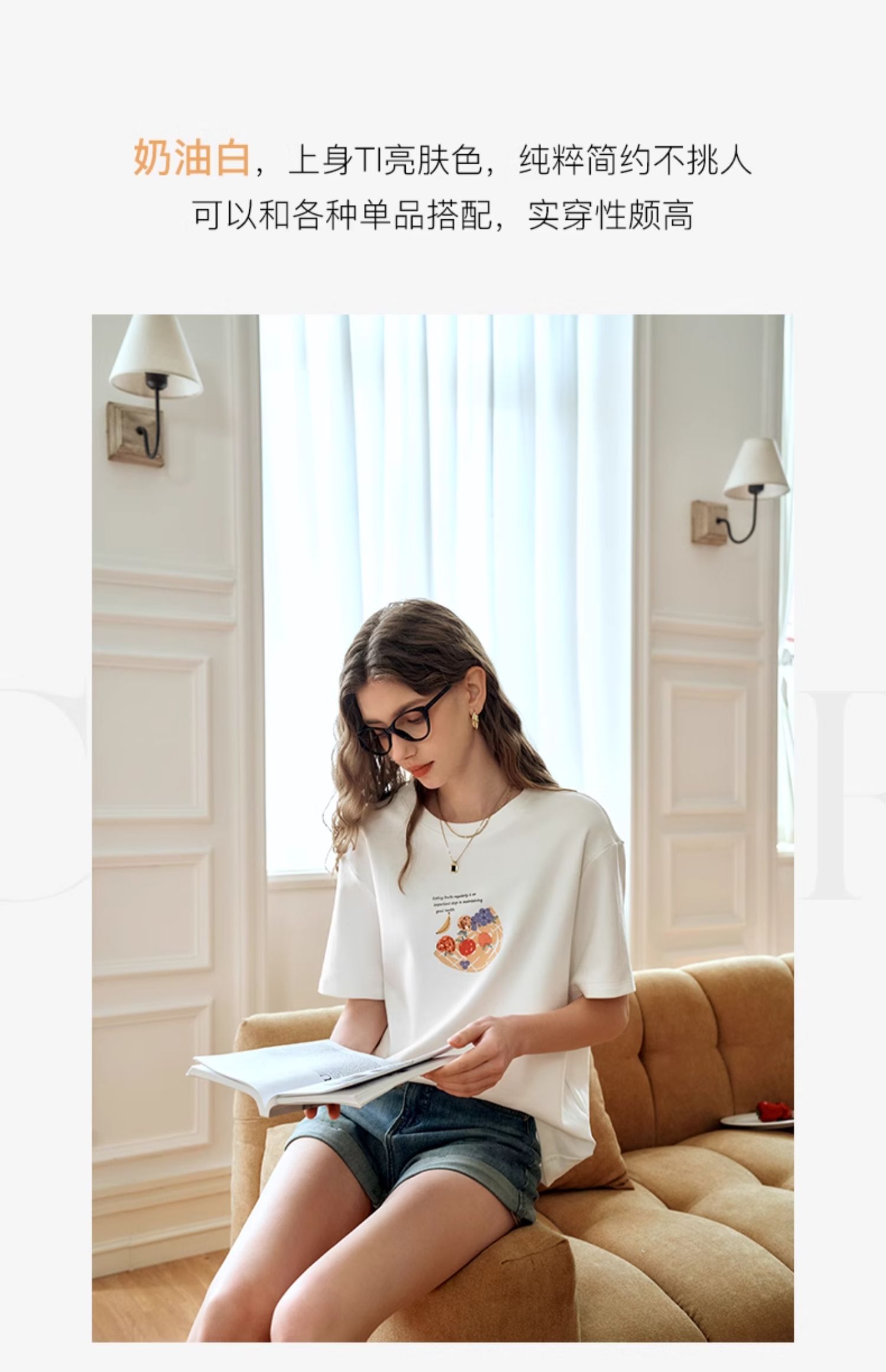 OLrain欧芮儿白色短袖T恤女夏季2024新款时尚通勤珠片绣印花上衣