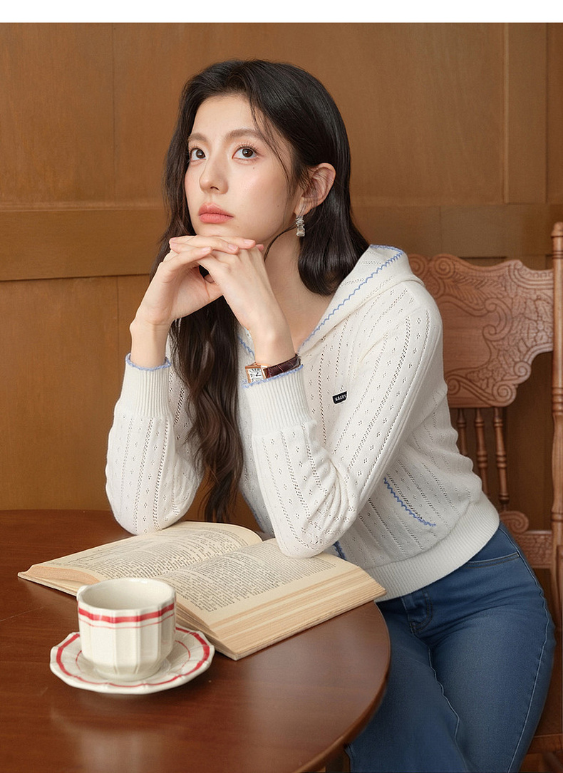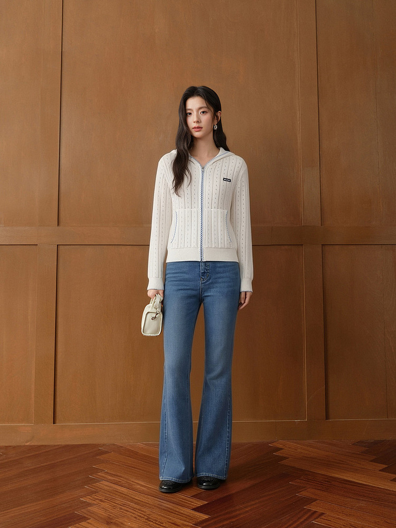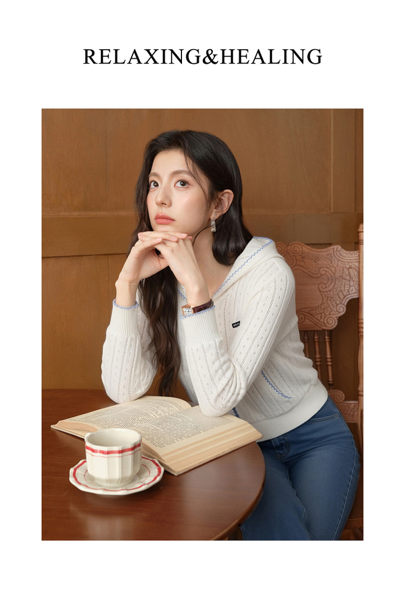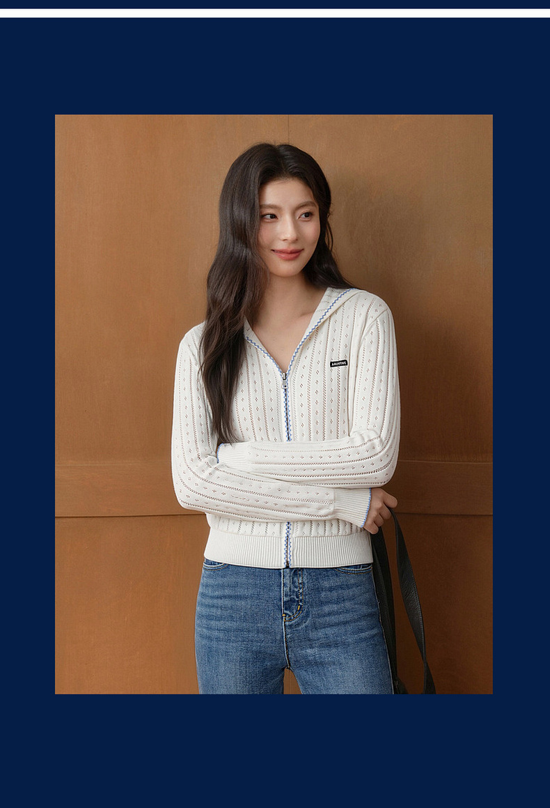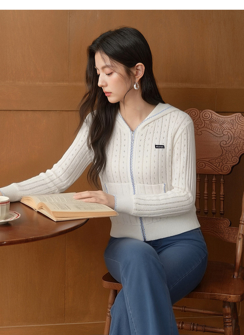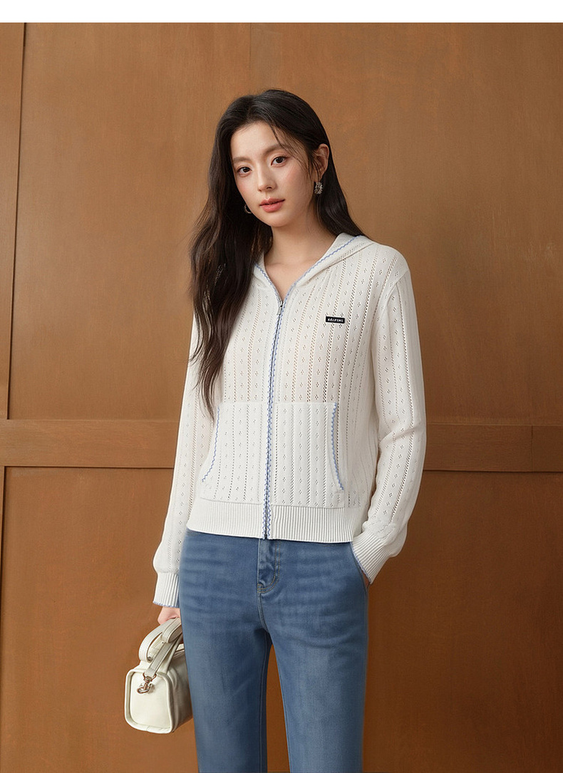 【严选】诗凡黎拉链连帽棉绞花开衫2026春宽松慵懒内搭坑条长袖上衣7H3431331