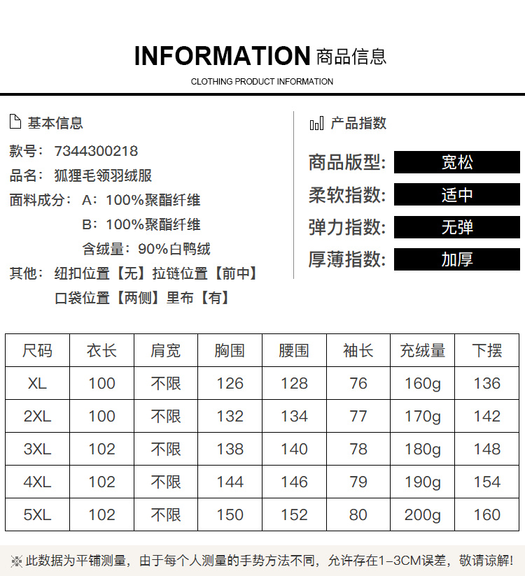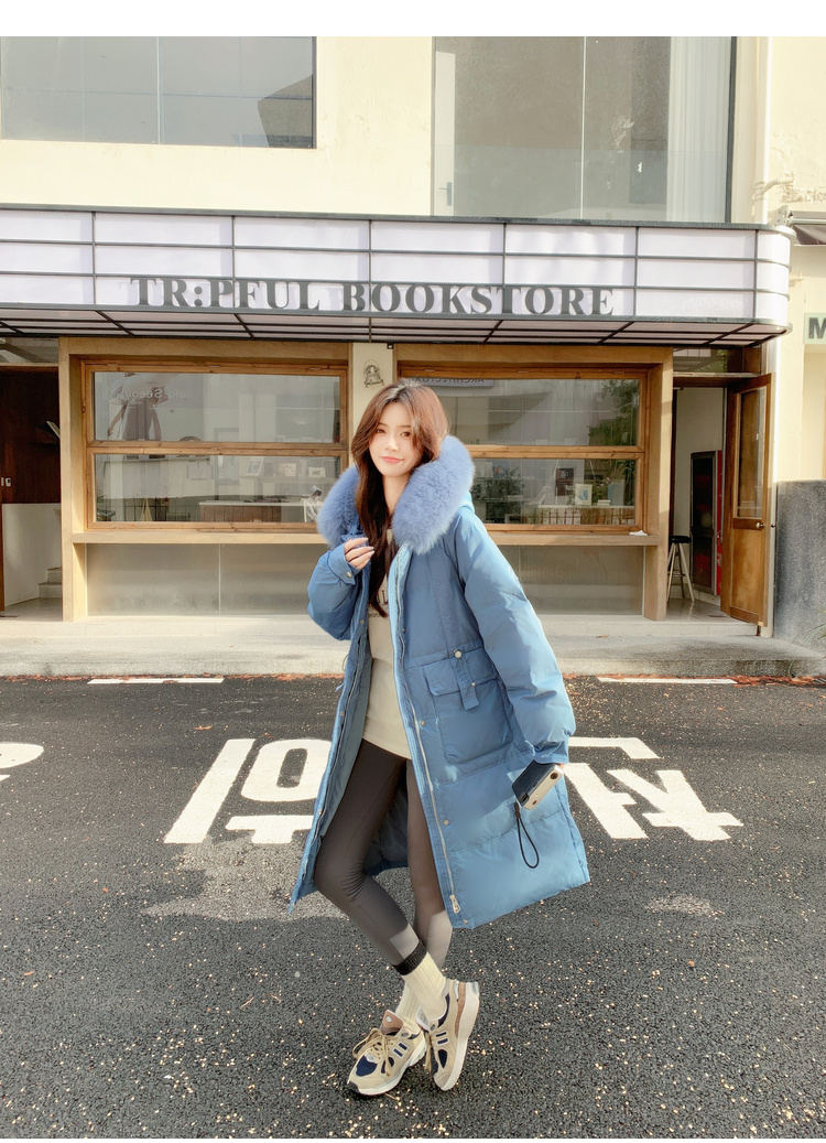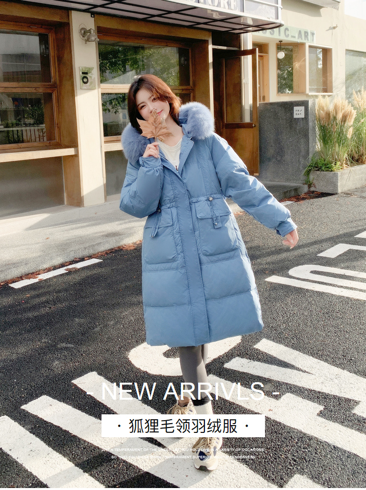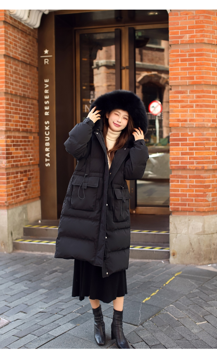 奢姿大码女装2024冬季狐狸毛领连帽中长款羽绒服胖妹妹保暖外套7344300218