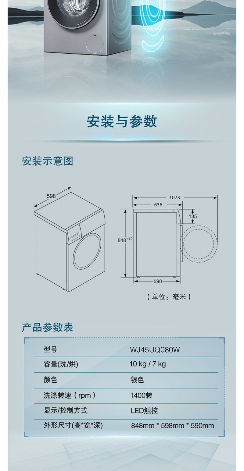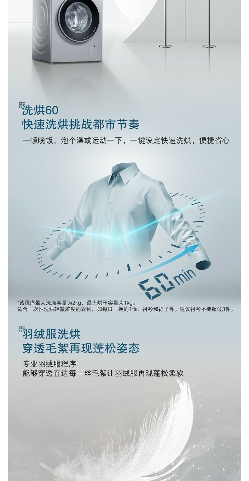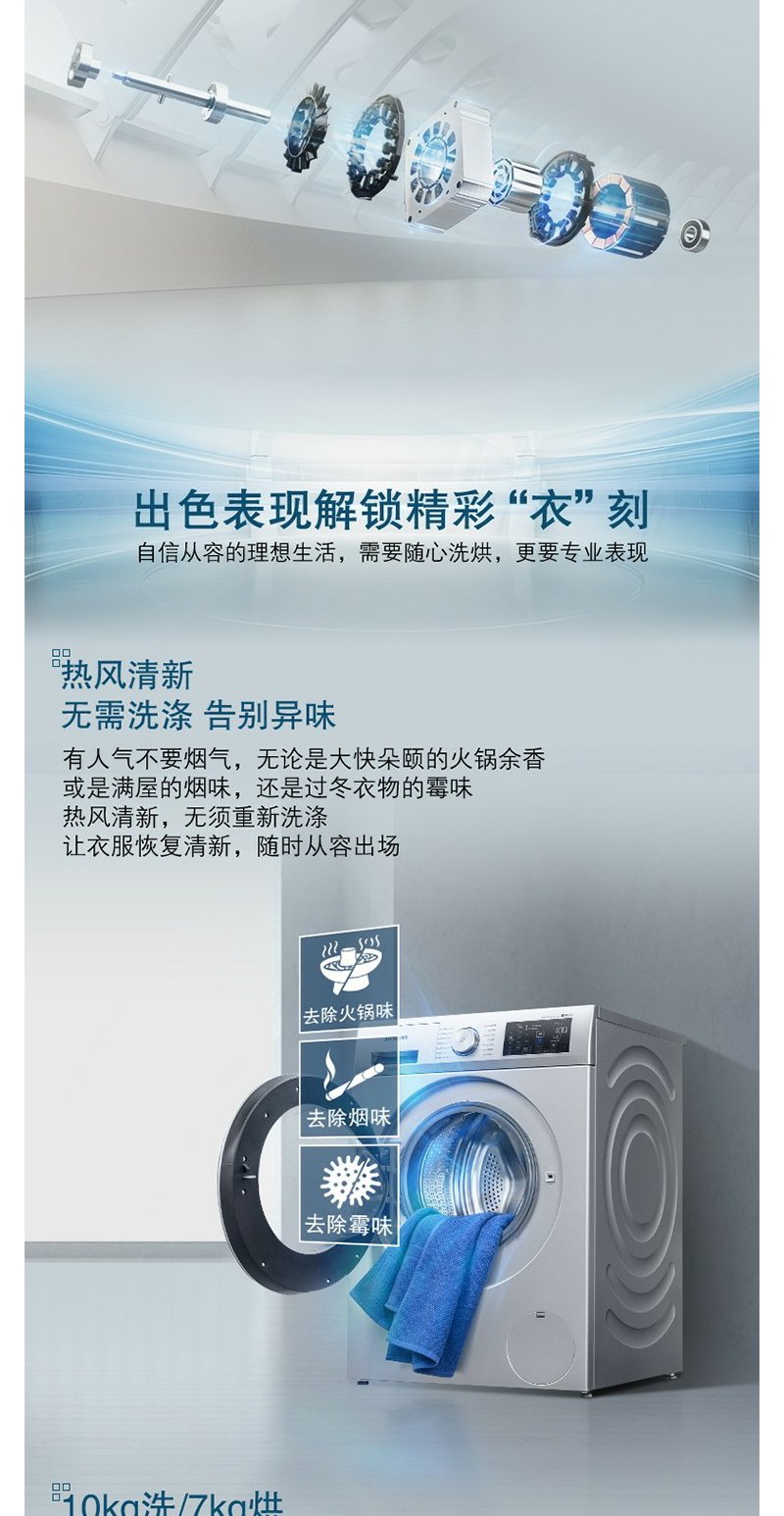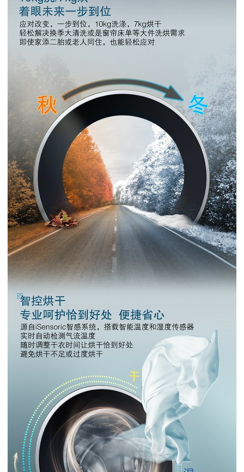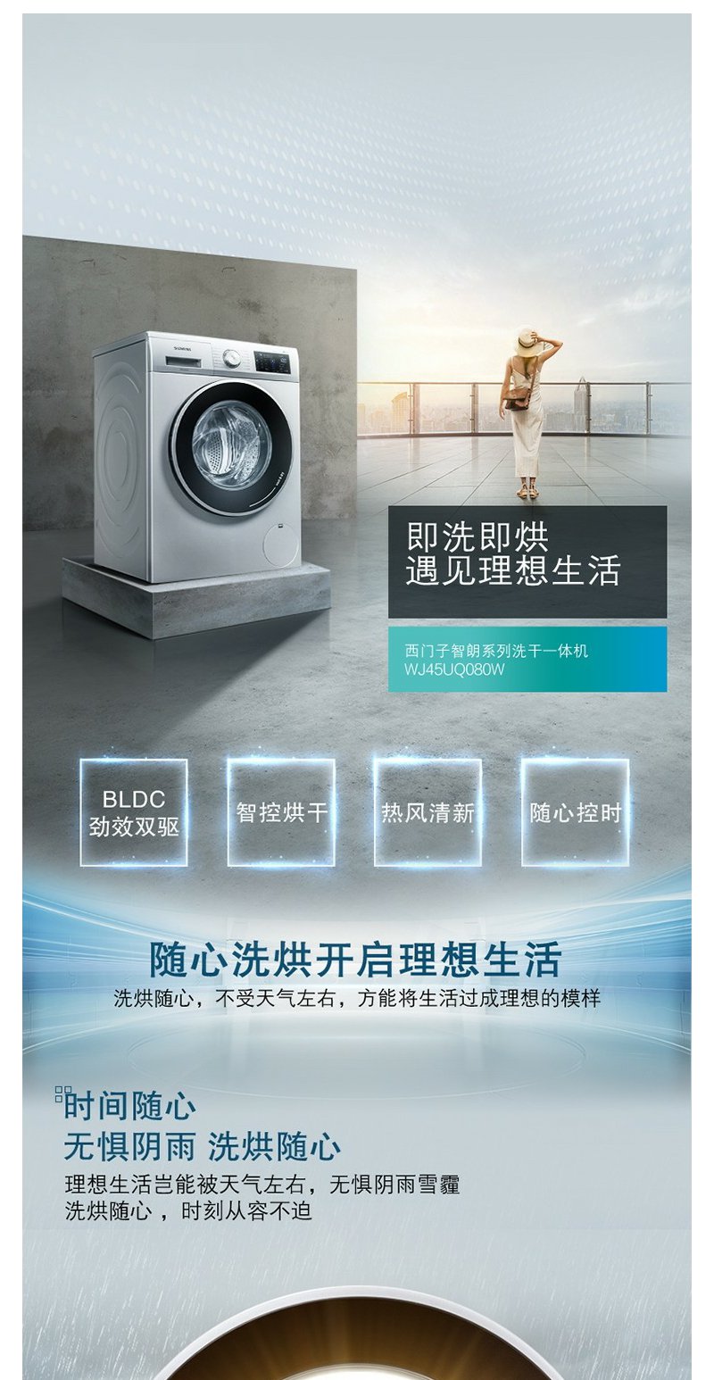 西门子(SIEMENS)10公斤洗7公斤洗烘一体机滚筒洗衣机全自动变频 热风 银色WJ45UQ080W