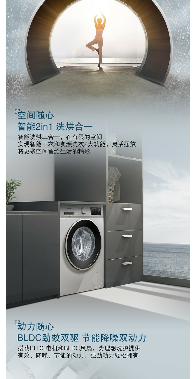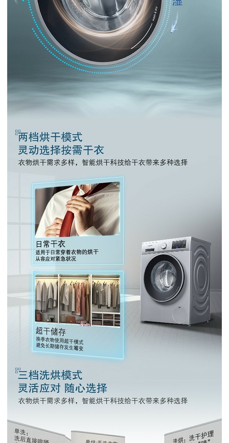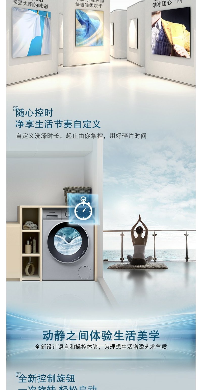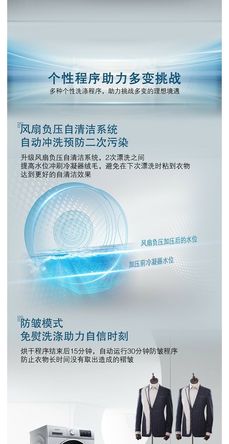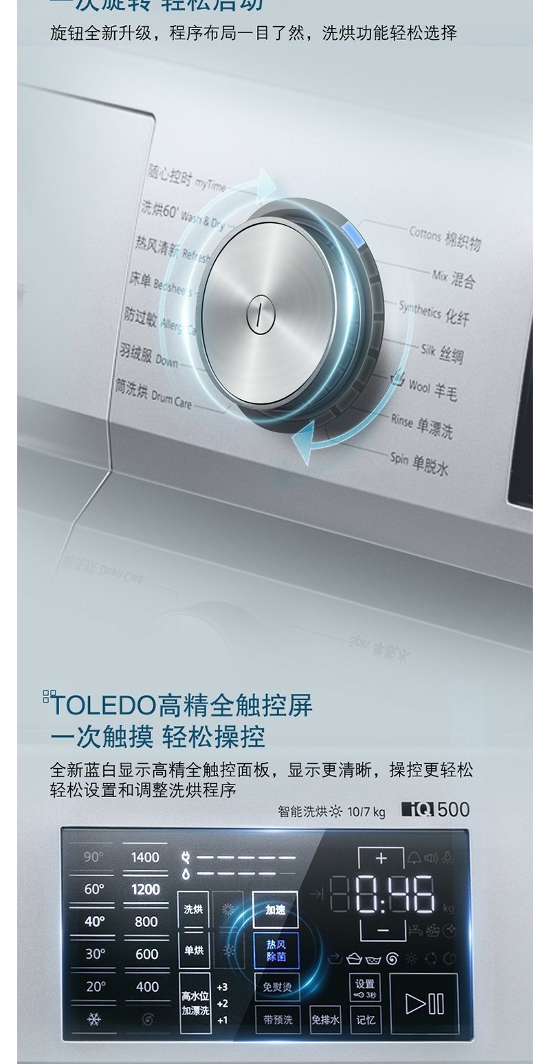 西门子(SIEMENS)10公斤洗7公斤洗烘一体机滚筒洗衣机全自动变频 热风 银色WJ45UQ080W
