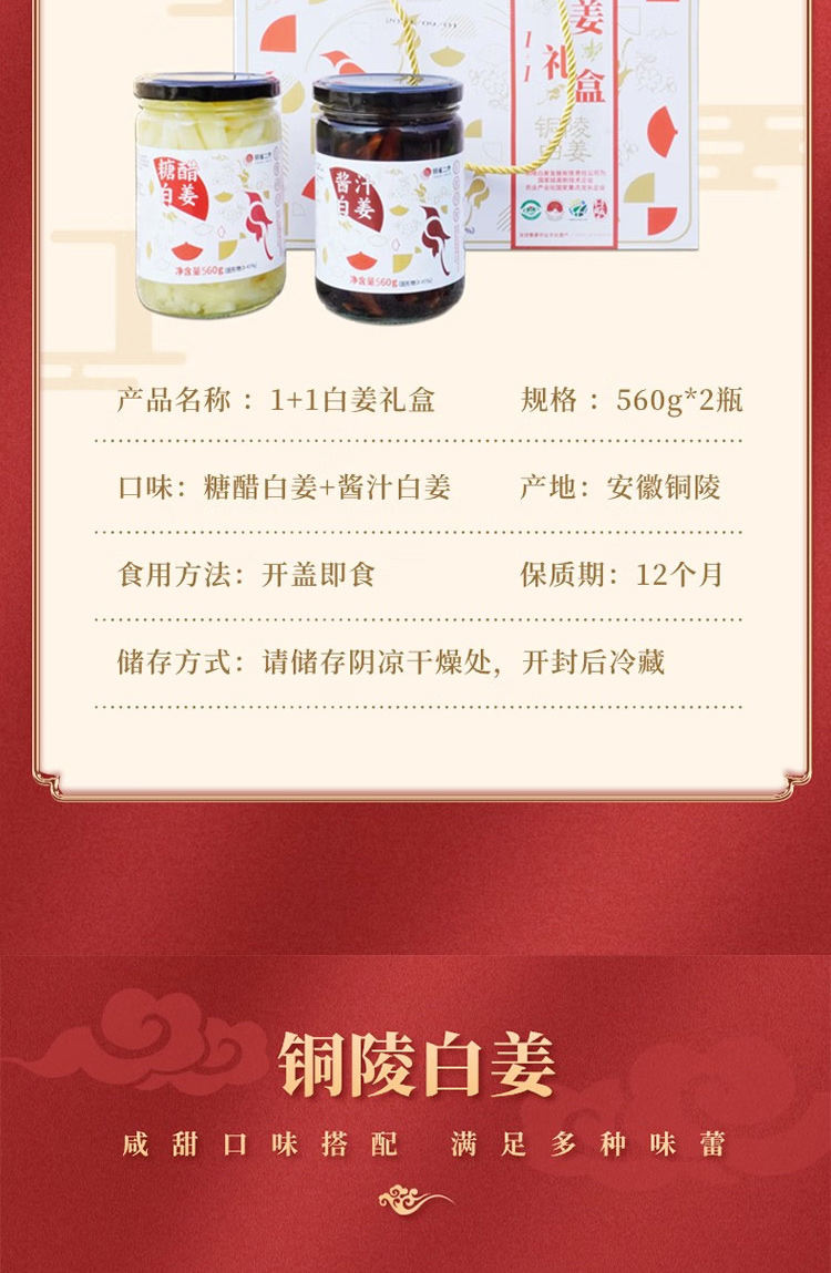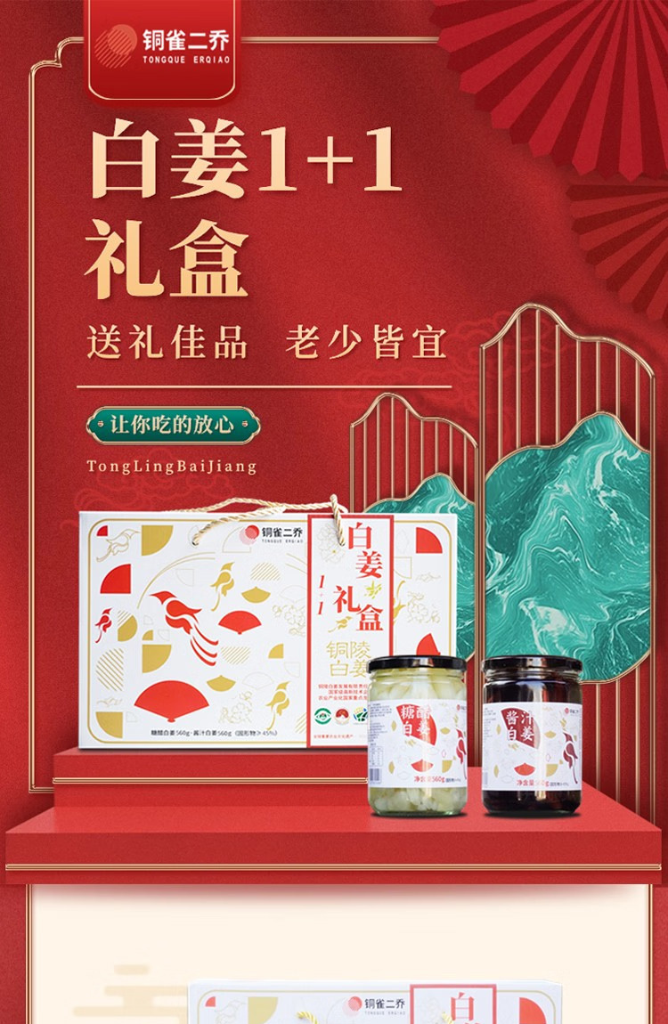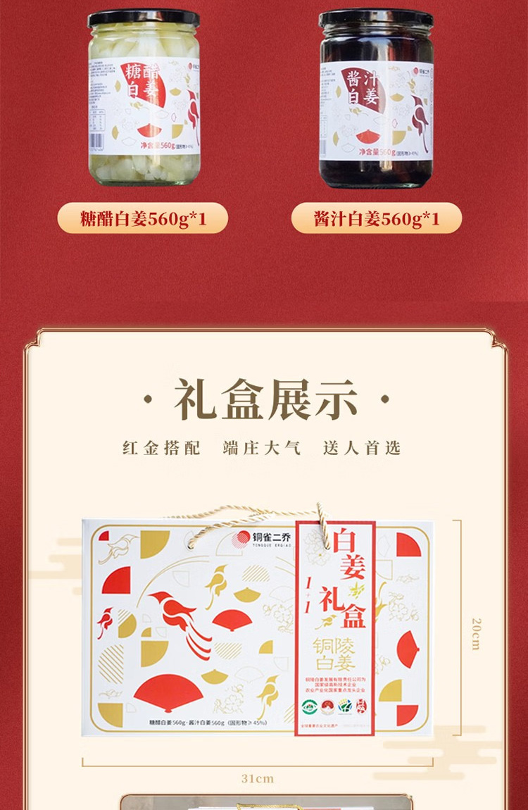 铜雀二乔1+1白姜礼盒560g*2瓶(口味:糖醋白姜+酱汁白姜)