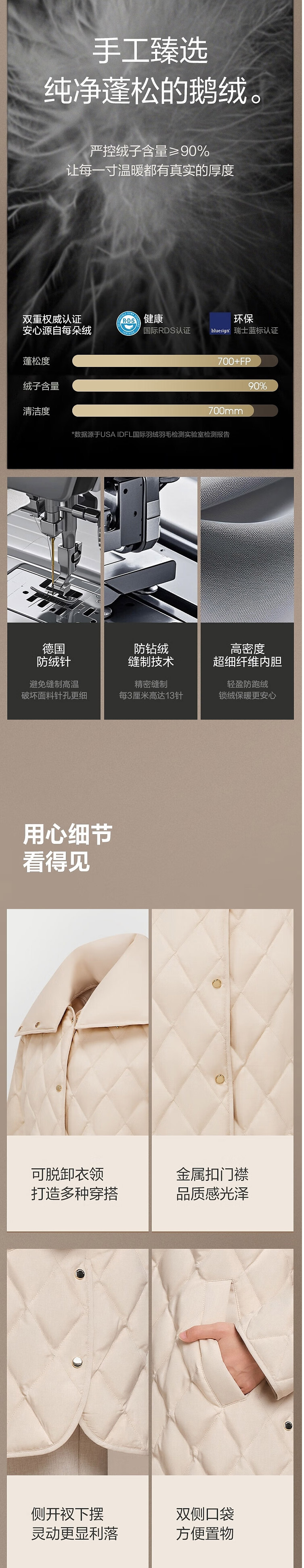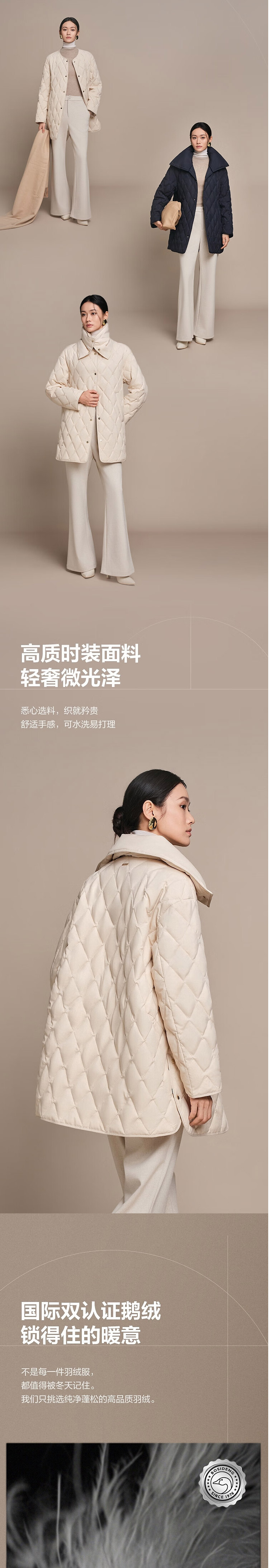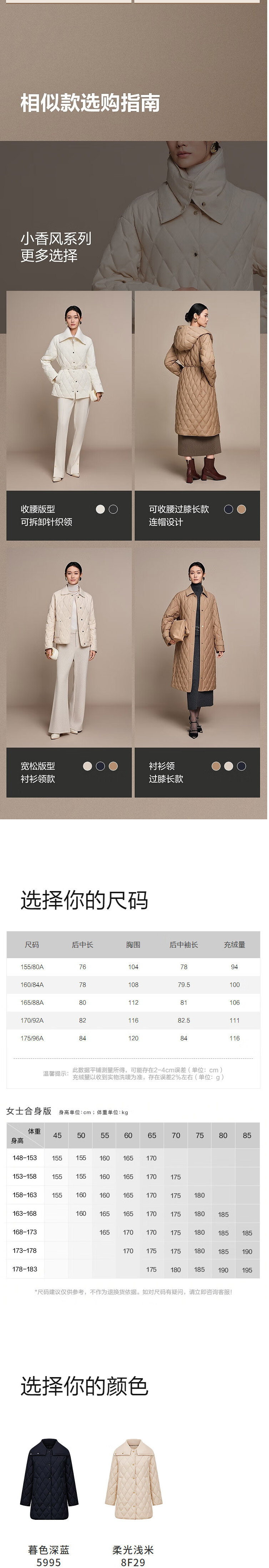 波司登2025秋新款中长款女士鹅绒小香风可拆卸领羽绒服B250134156