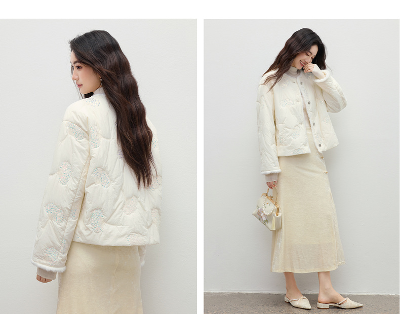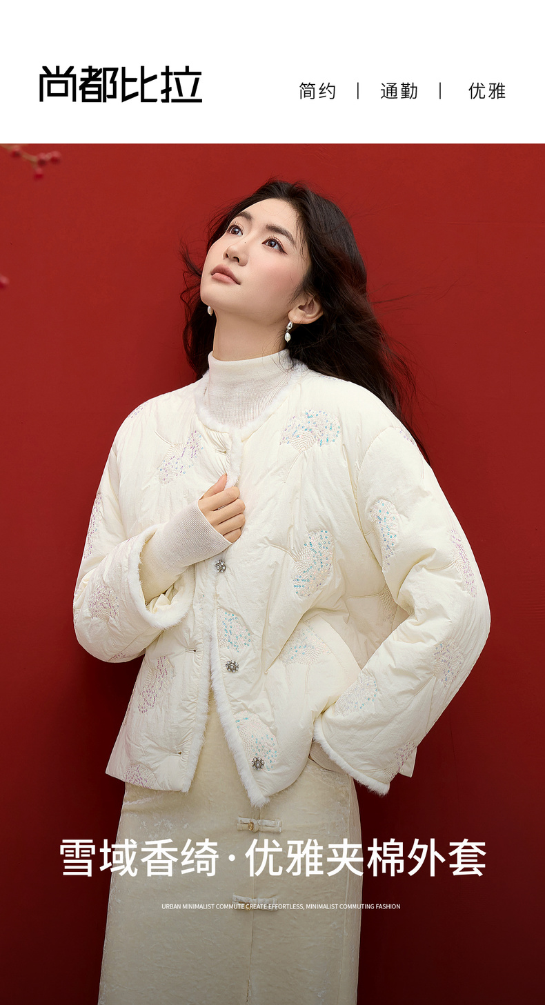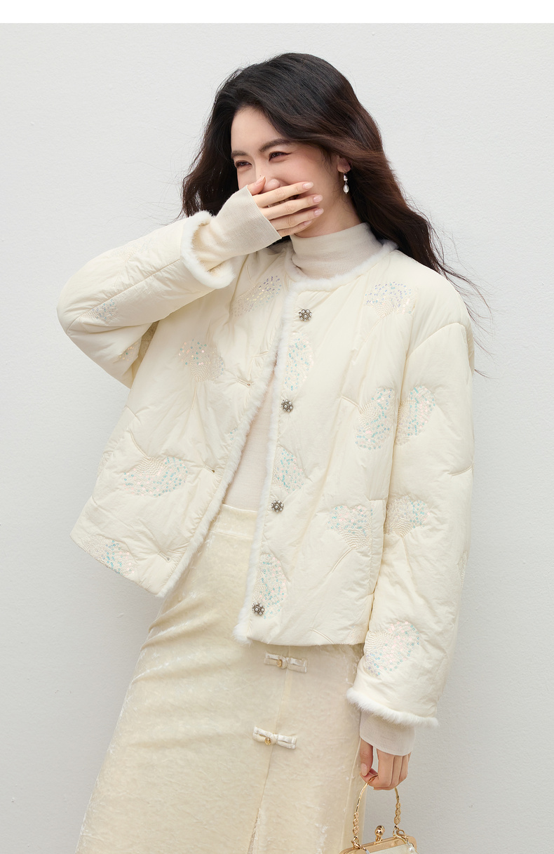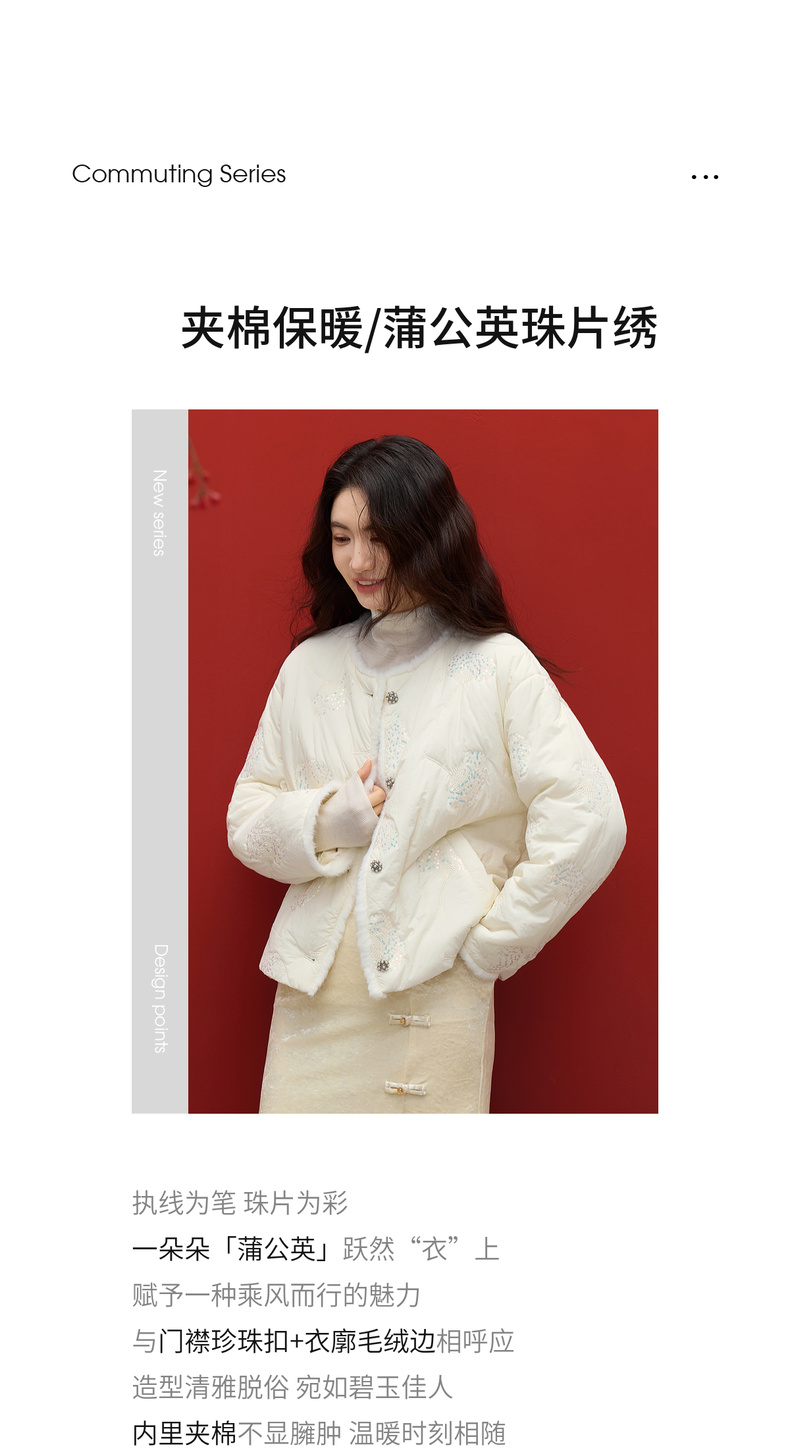【内购】【夹棉保暖】优雅通勤毛绒边圆领珍珠扣宽松落肩显瘦不臃肿棉服-154MI4052