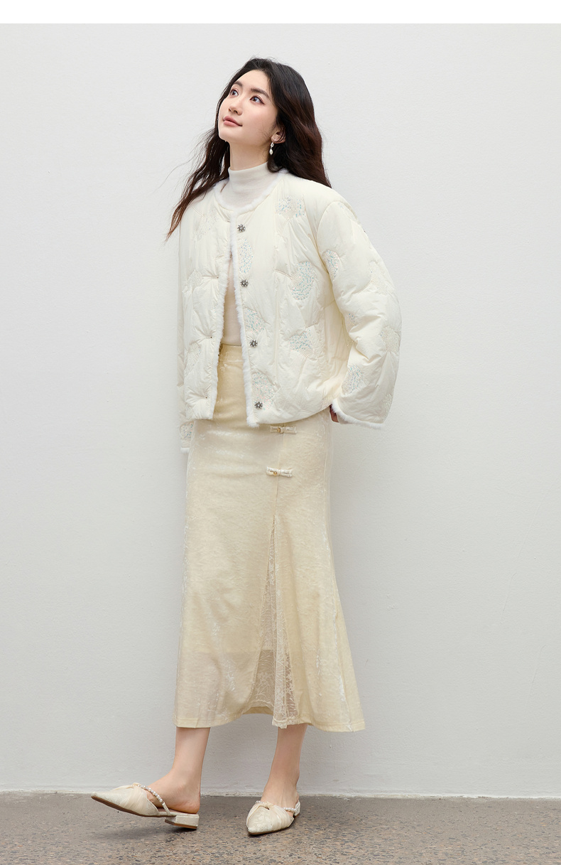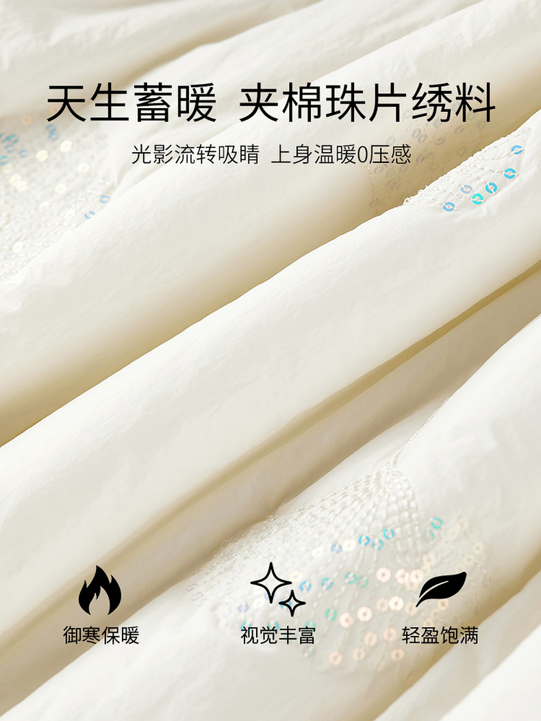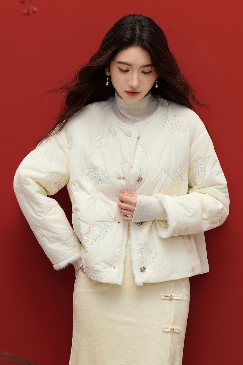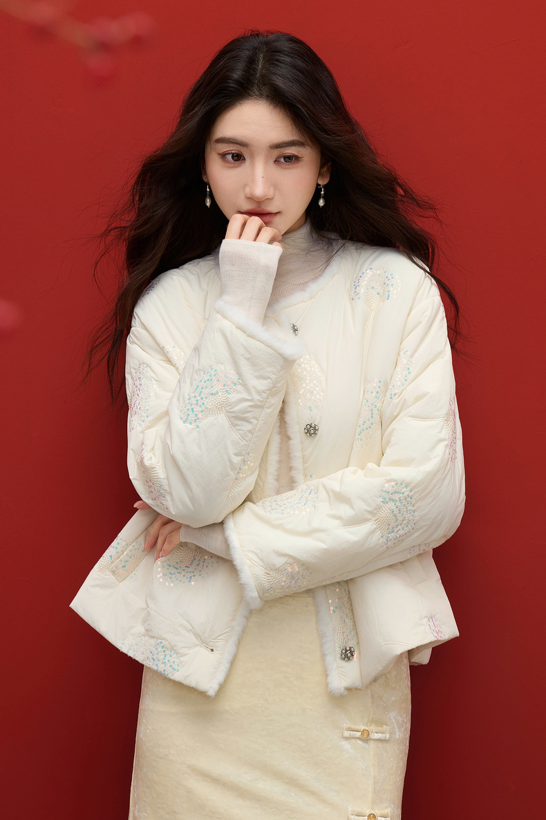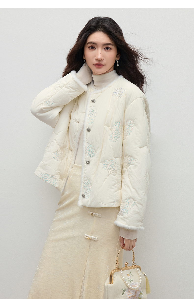 【内购】【夹棉保暖】优雅通勤毛绒边圆领珍珠扣宽松落肩显瘦不臃肿棉服-154MI4052