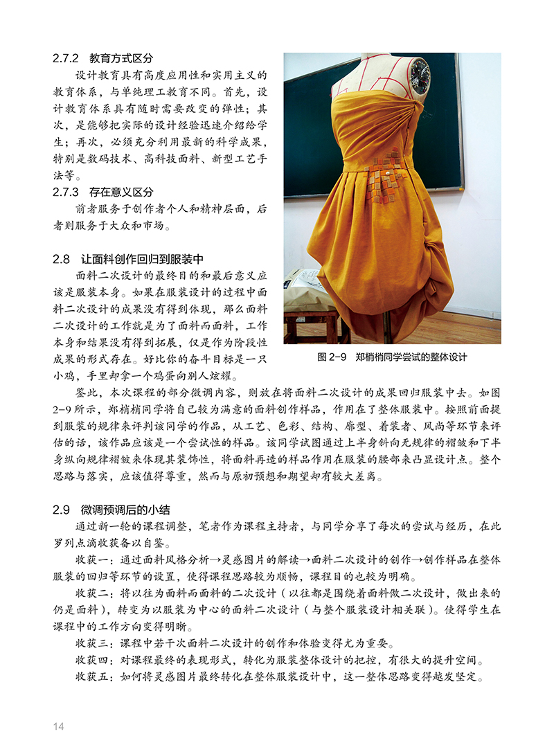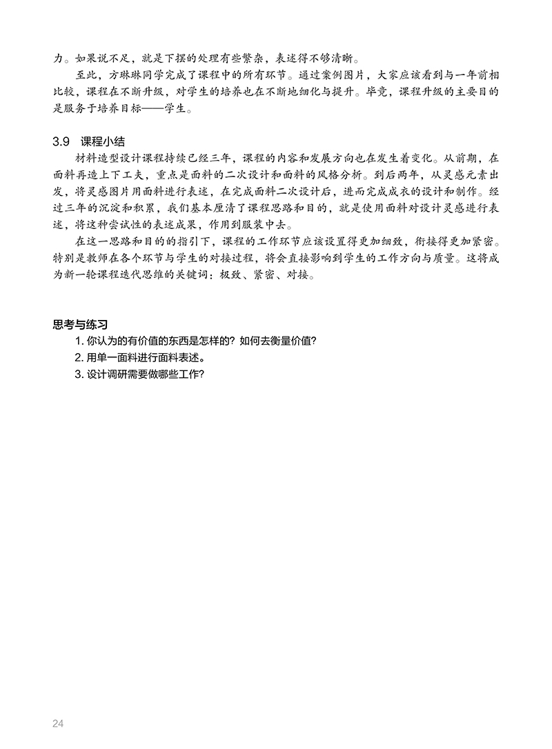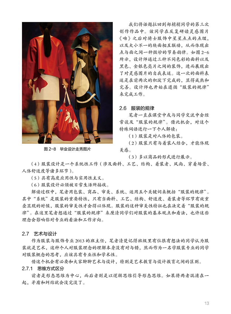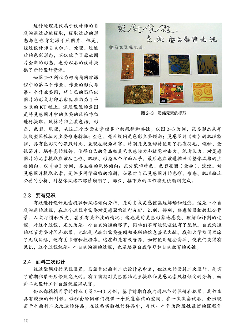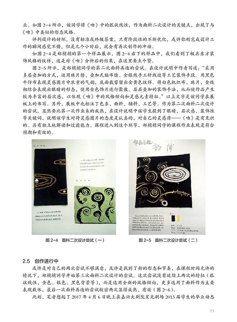 1 从面料二次设计说起 11.2 “不择手段” 11.3.1 前辈的积累 31.4 从灵感元素开始 41.5.1 理顺课程 7思考与练习 72.1 迭代思维 82.3 要有见识 2.5 创作进行中 112.7 艺术与设计 132.7.2 教育方式区分 142.8 让面料创作回归到服装中 14思考与练习 163.1 精细化耕耘 173.3 预想图的显现 183.5 戴着枷锁的舞者 203.7 开始你的调研 223.9 课程小结 244 设计旅程的开启 254.2 扎实迈出步 254.4 从局部开始 284.6 平台的再次搭建 31思考与练习 375.1 观察与思考 385.3 设计的目的 395.3.2 唤醒人们的感觉 395.3.4 行业需要创造性的睿智 405.3.6 视觉规律 415.4.1 培养兴趣 425.5 在路上——面料的表述 435.6.1 面料表述与评判标准 515.6.3 文本排版为设计而生 525.7 在路上——设计调研 565.8.1 案例分析 595br5.9 在路上——成衣 55.9.2 经历是一种收获 55.9.4 成衣落实后的思考 6后记 8
