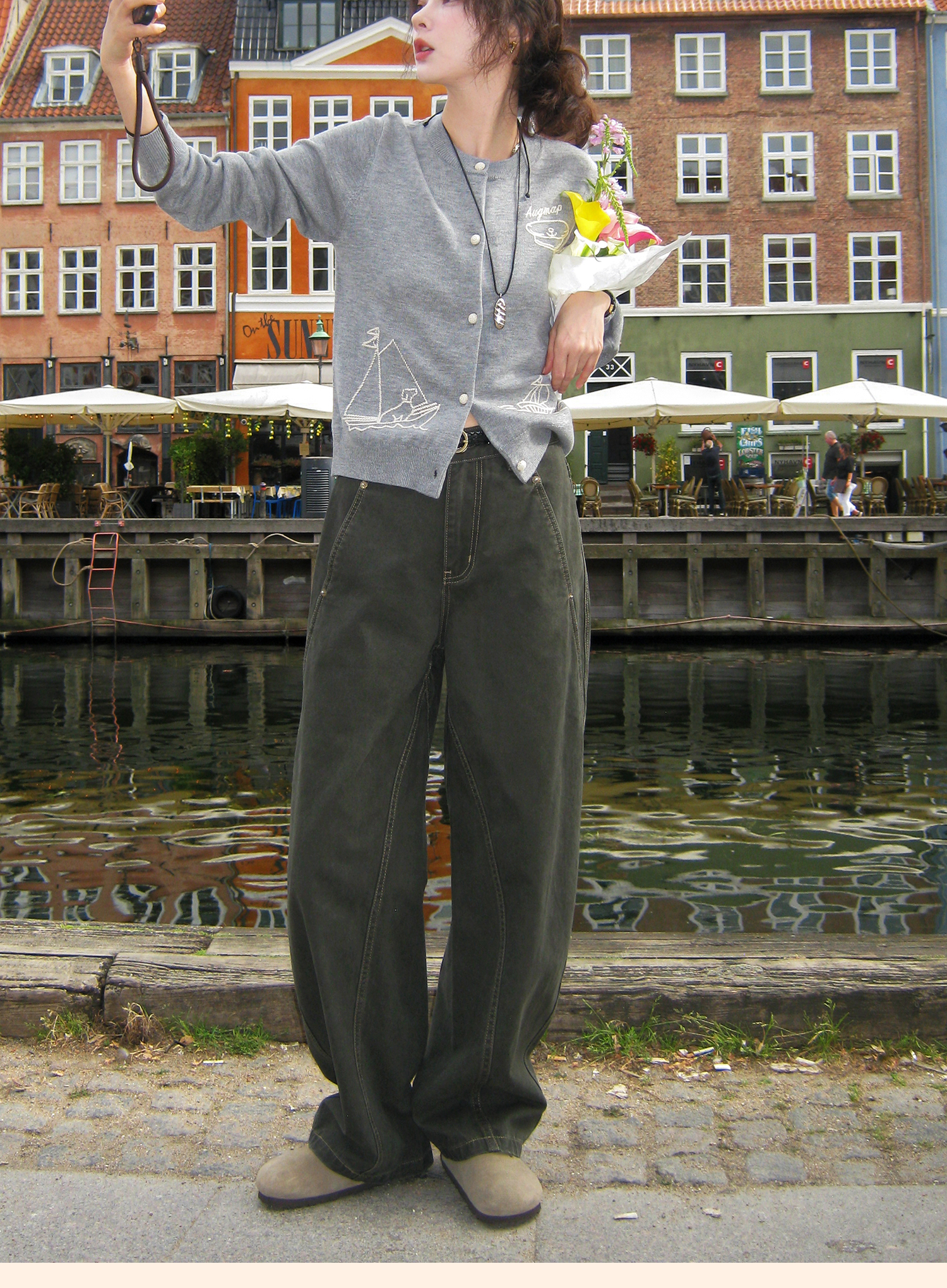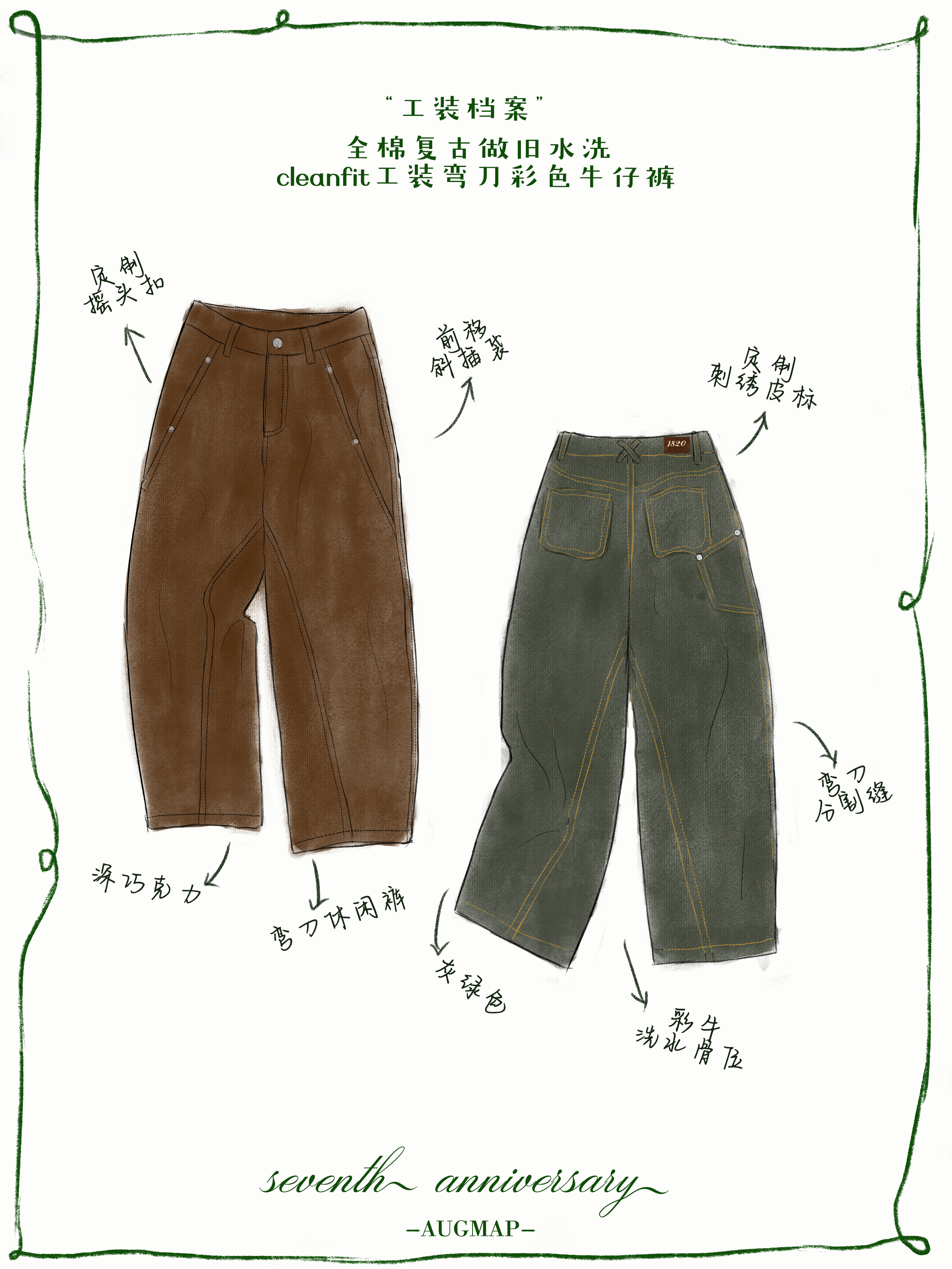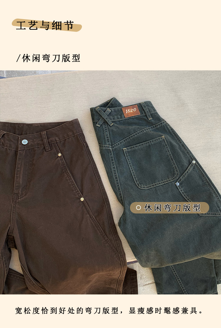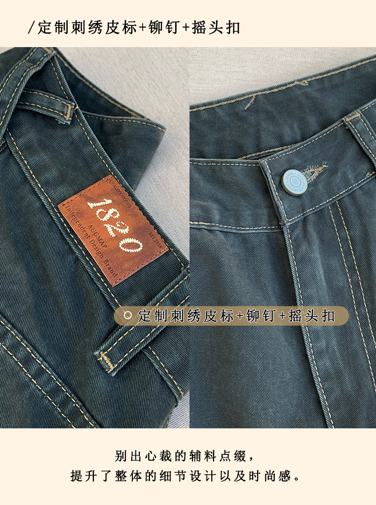 浮生八记/25C112/复古做旧弯刀彩色牛仔裤