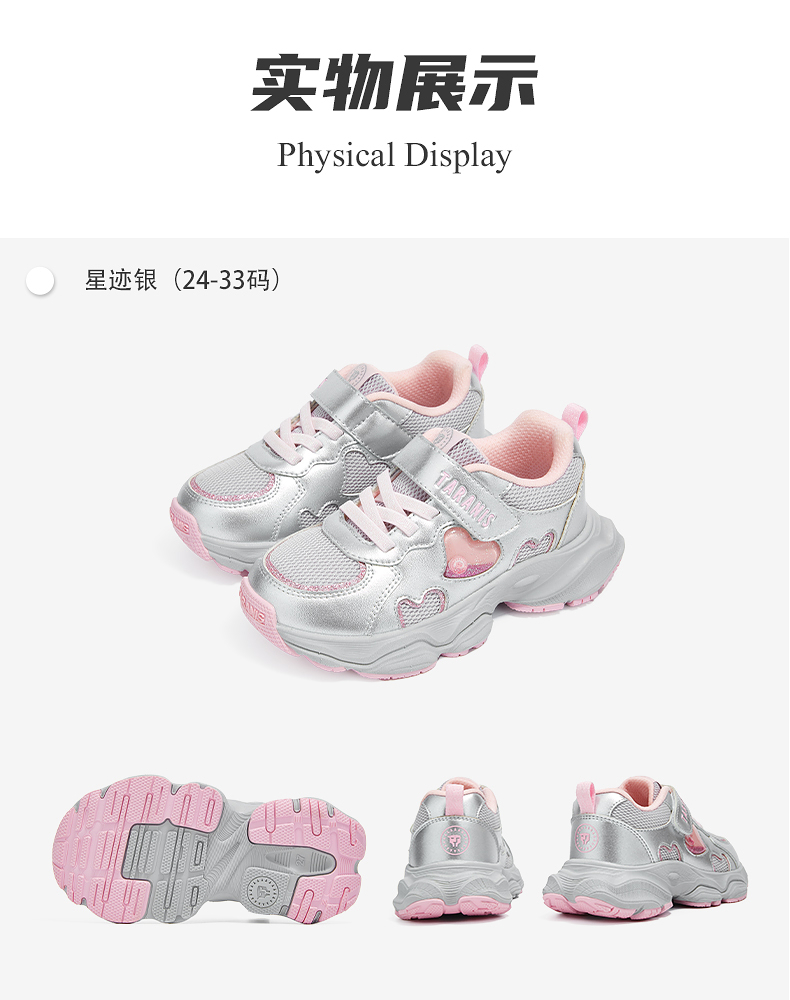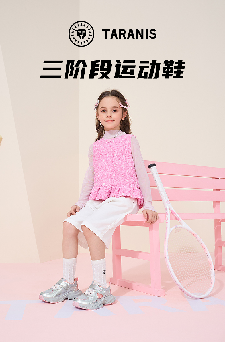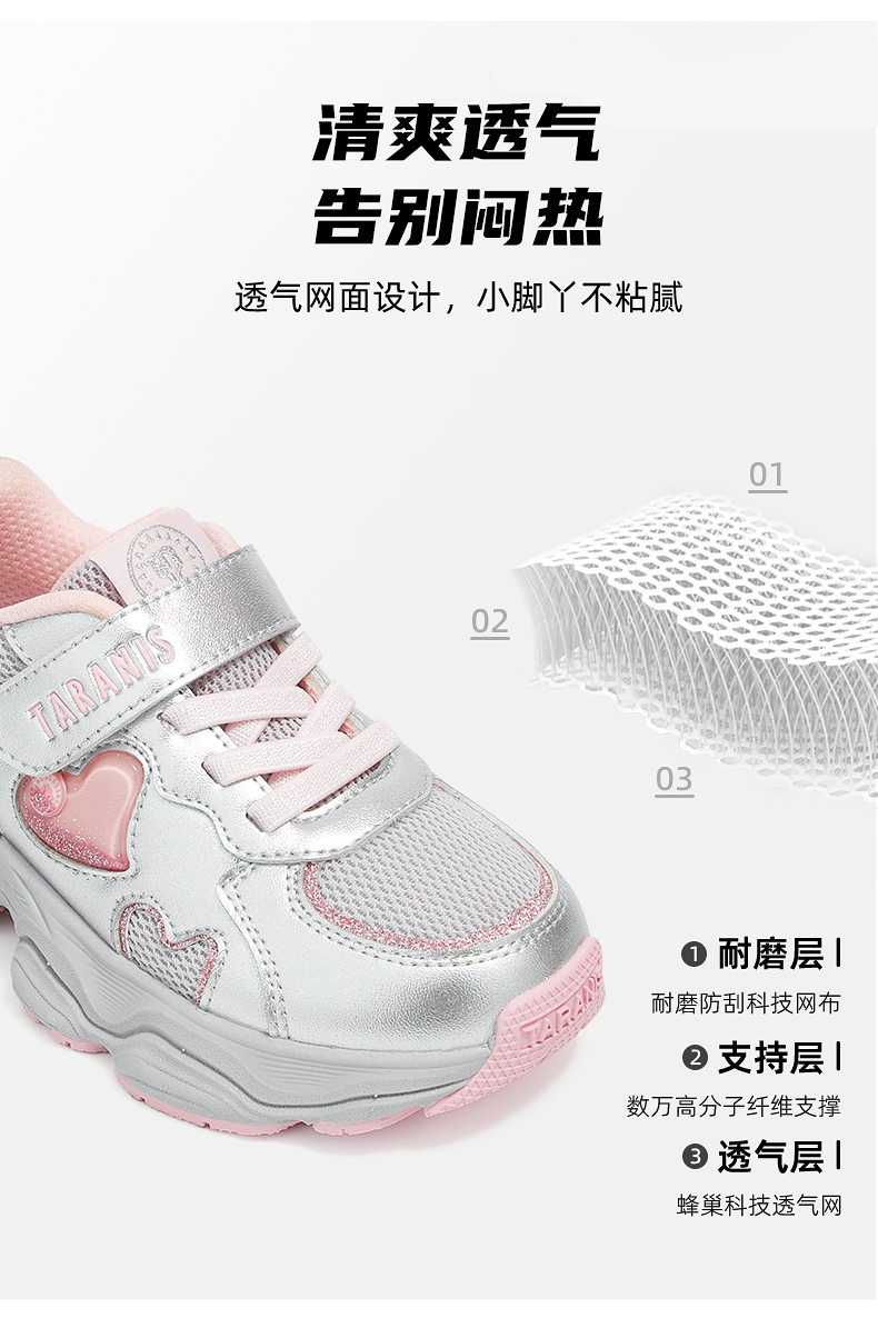 泰兰尼斯儿童运动鞋秋季新款女童运动鞋透气舒适跑步鞋女童老爹鞋 T01X5C7398